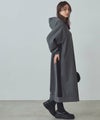 身体のラインをひろいにくいオーバーサイズです。顔周りのボリュームフードで小顔効果も◎