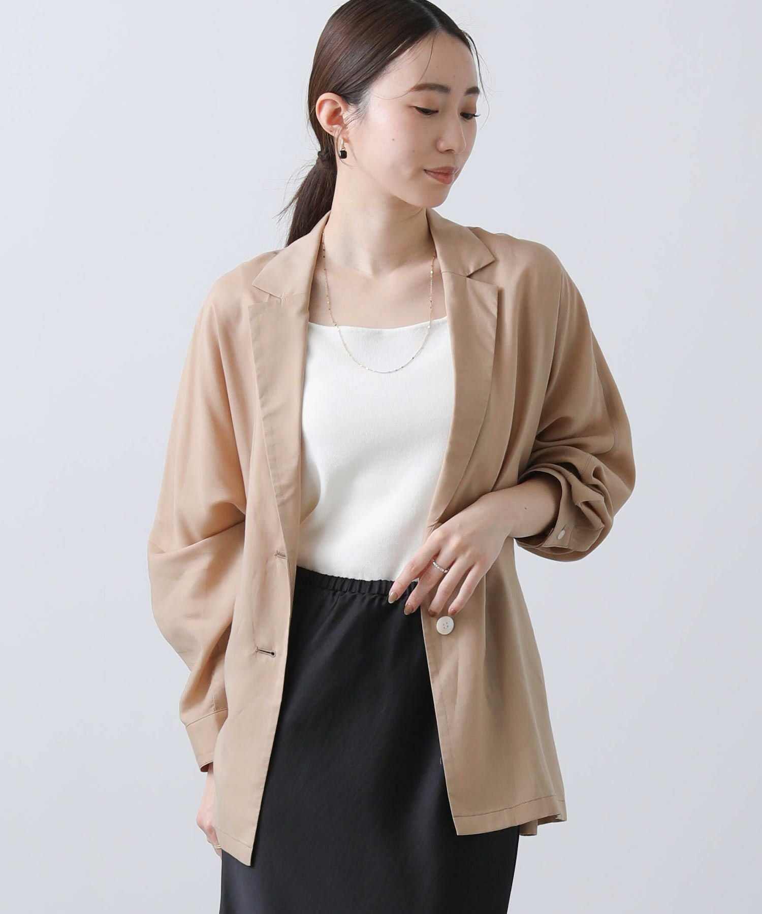 着こなしの幅が広がるとろみジャケット。