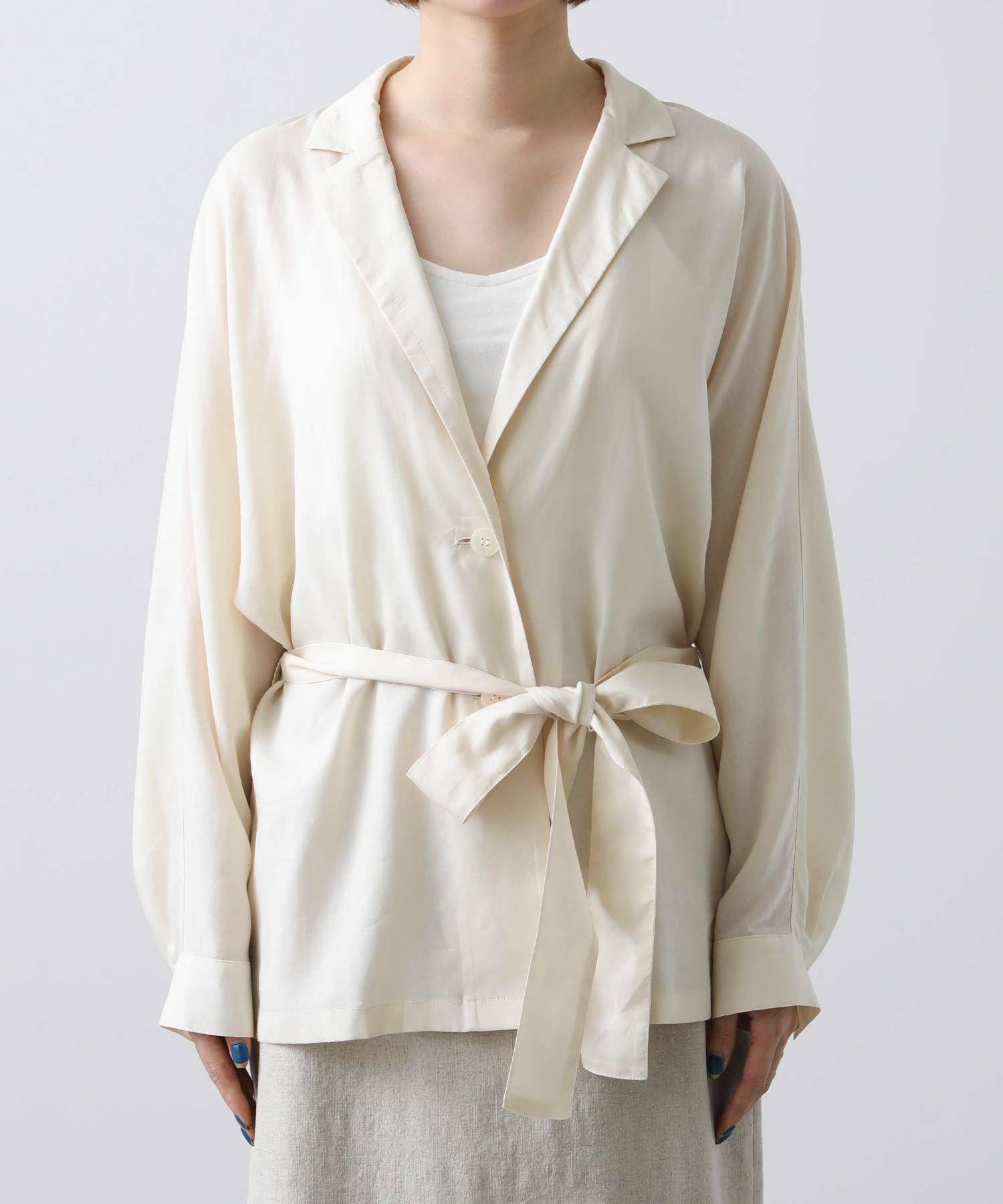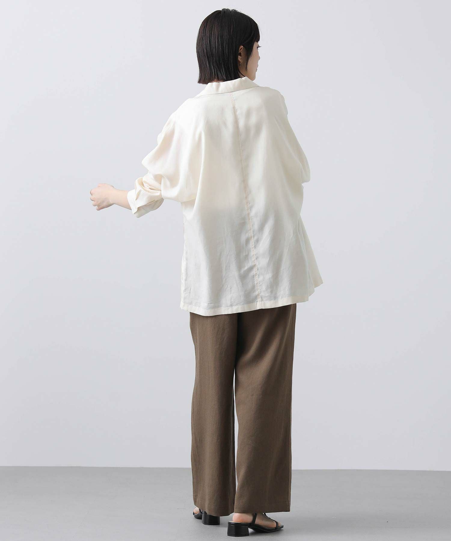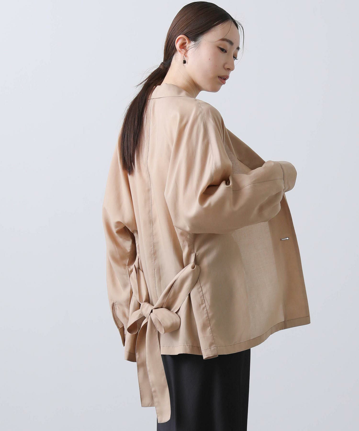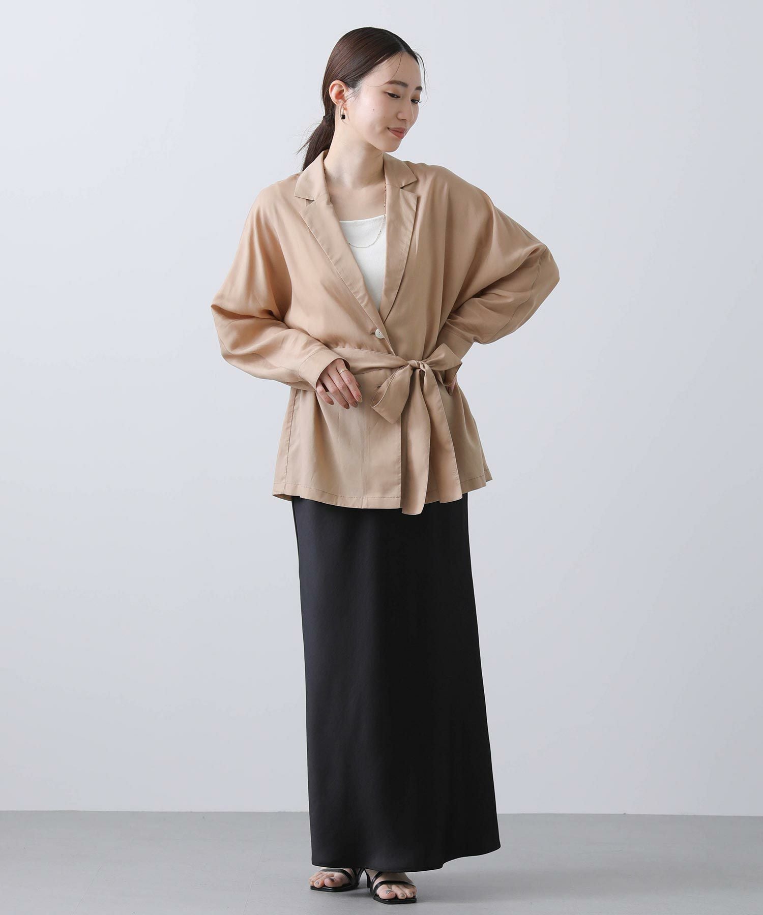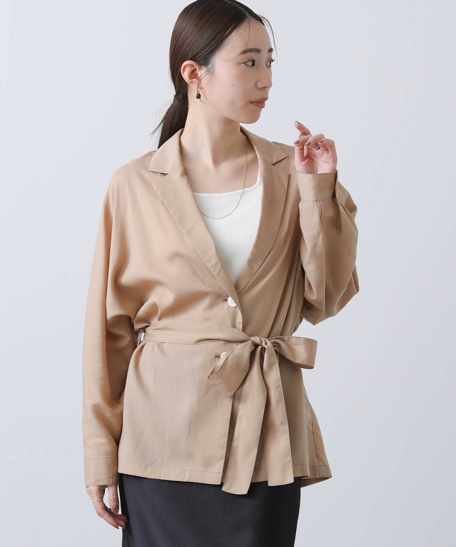 羽織としてはもちろん、今季はボトムインしてブラウスのような着こなしもおすすめです。