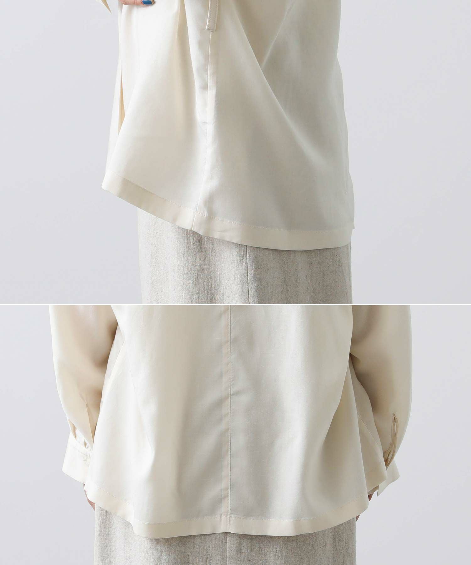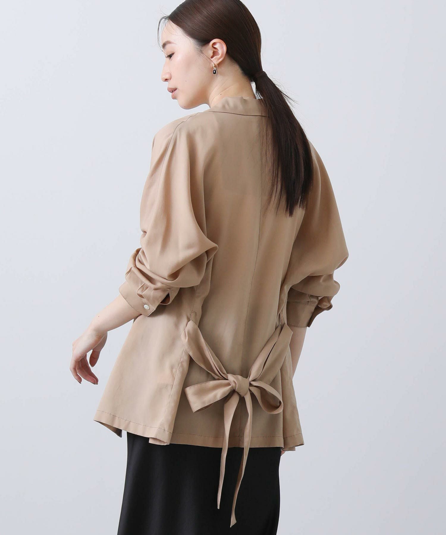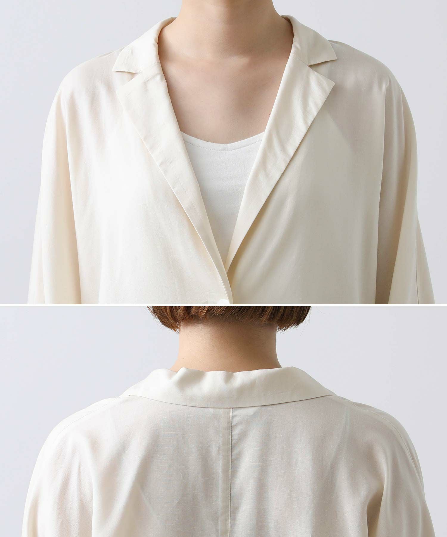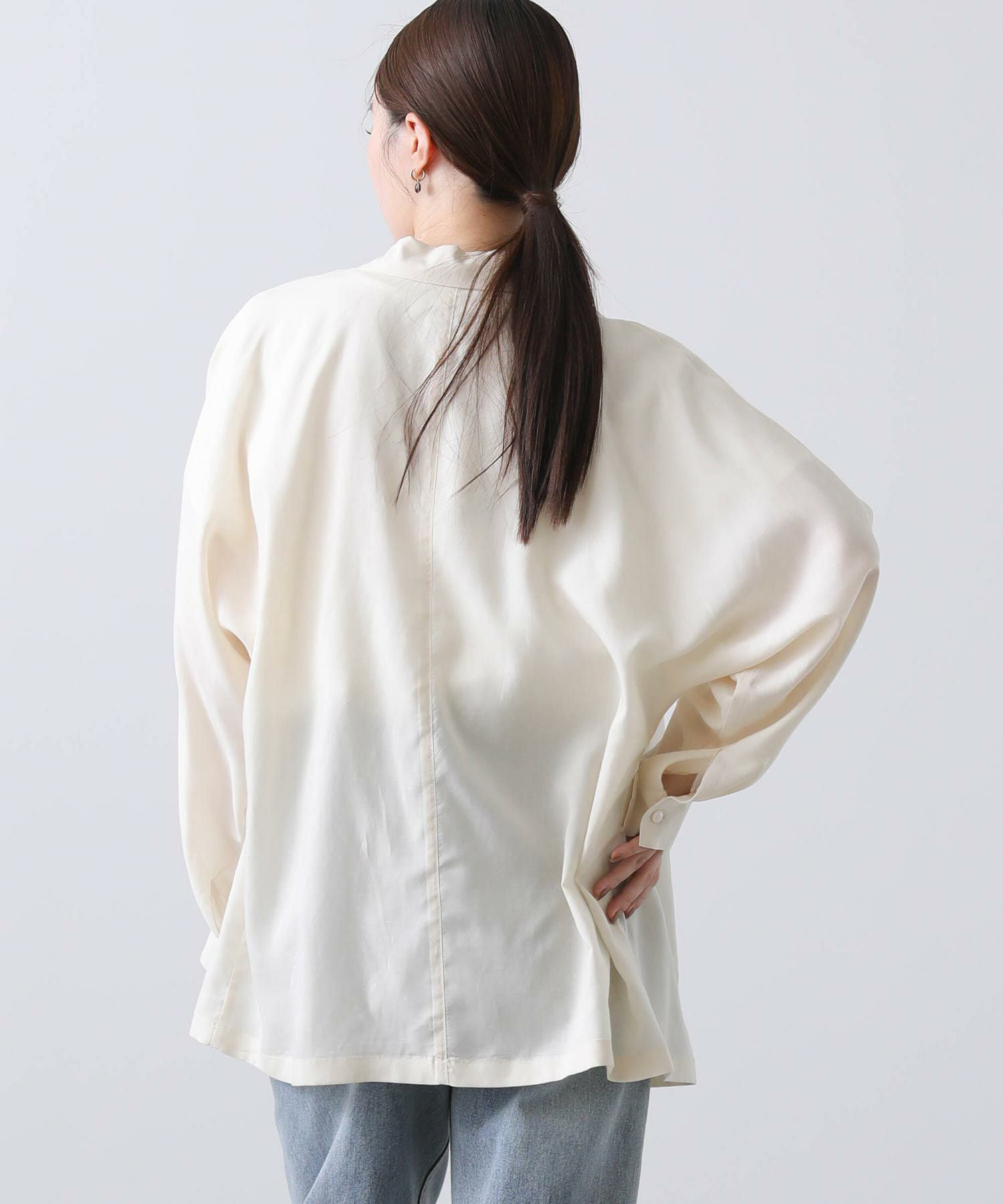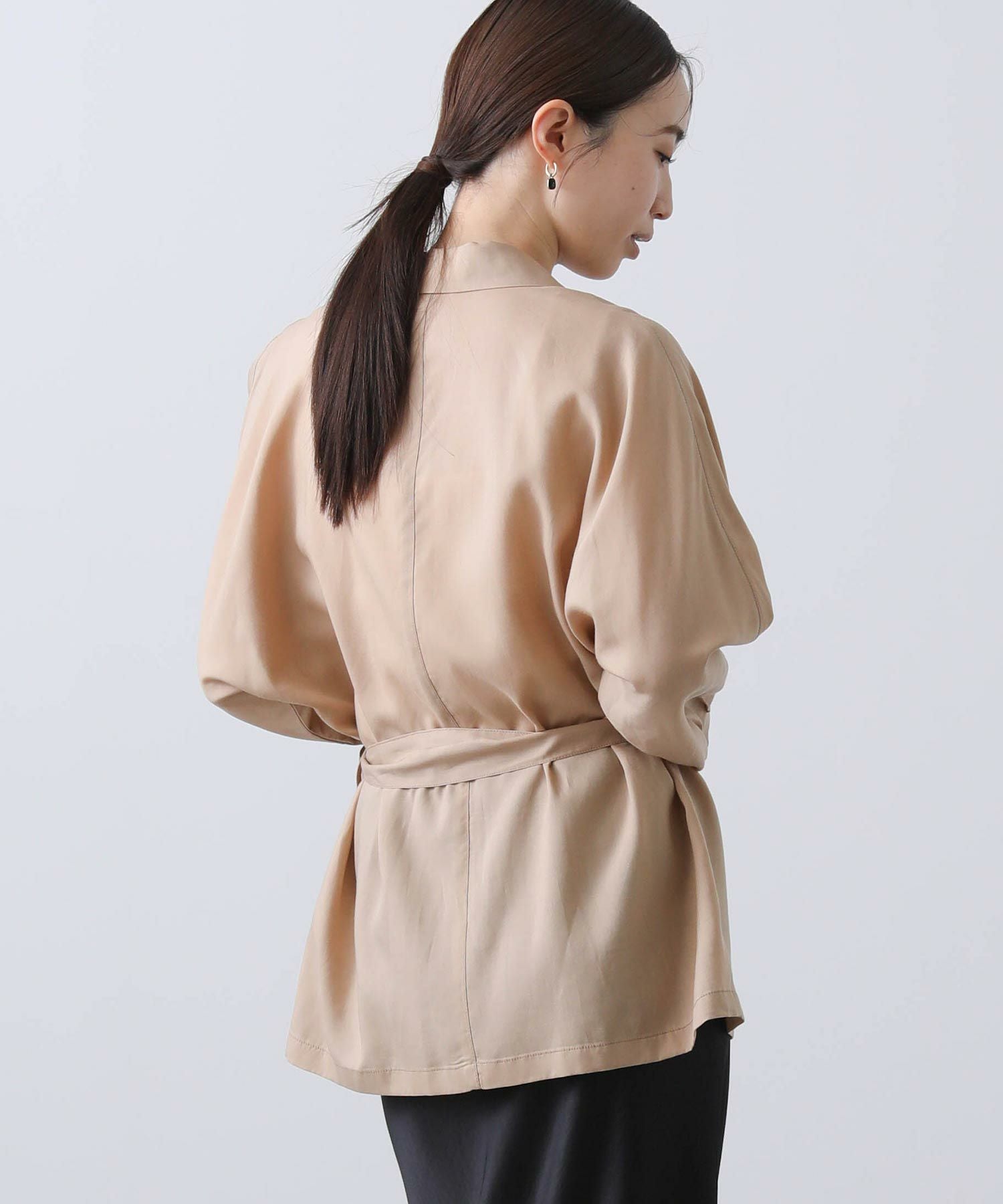 羽織としてはもちろん、今季はボトムインしてブラウスのような着こなしもおすすめです。