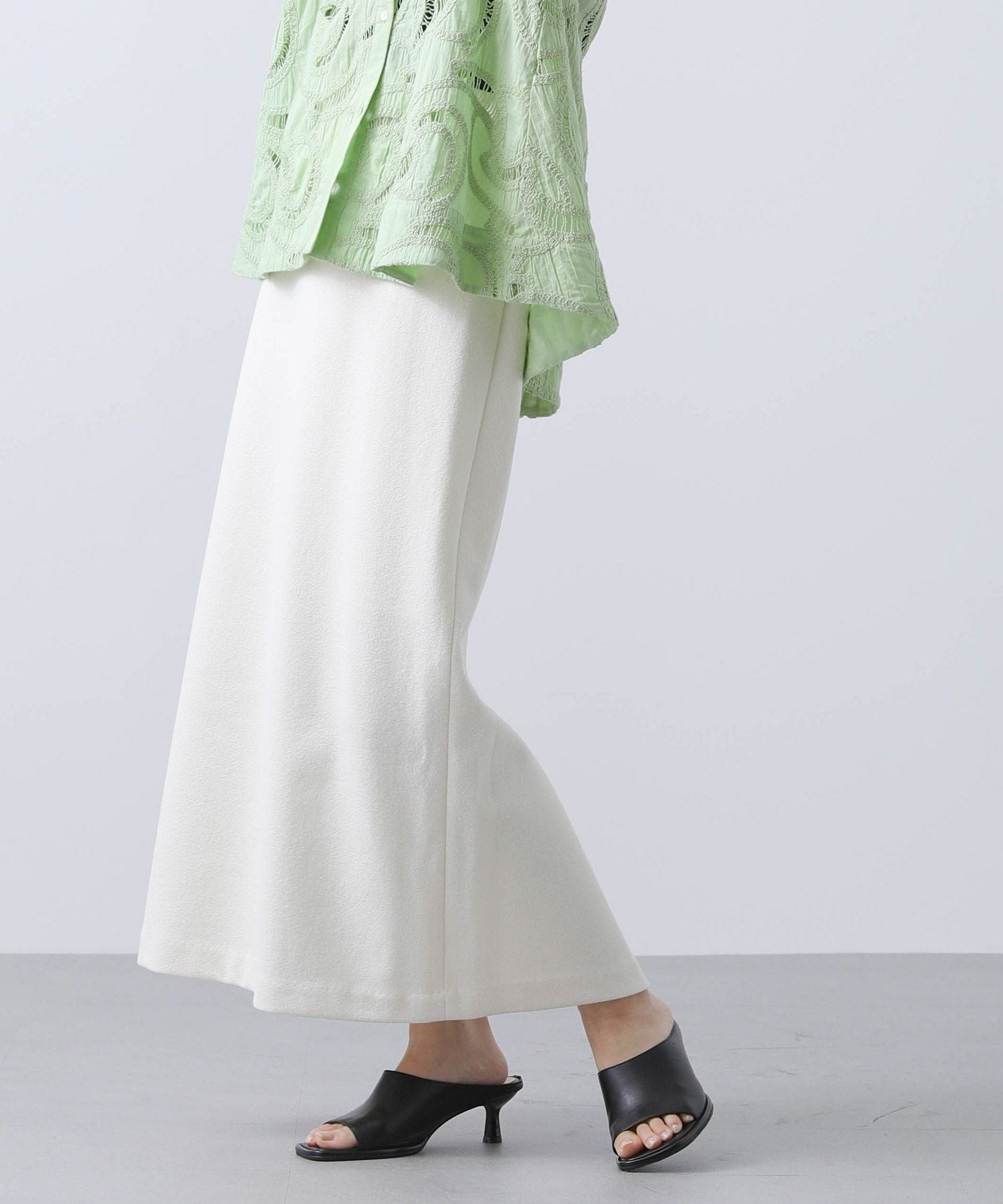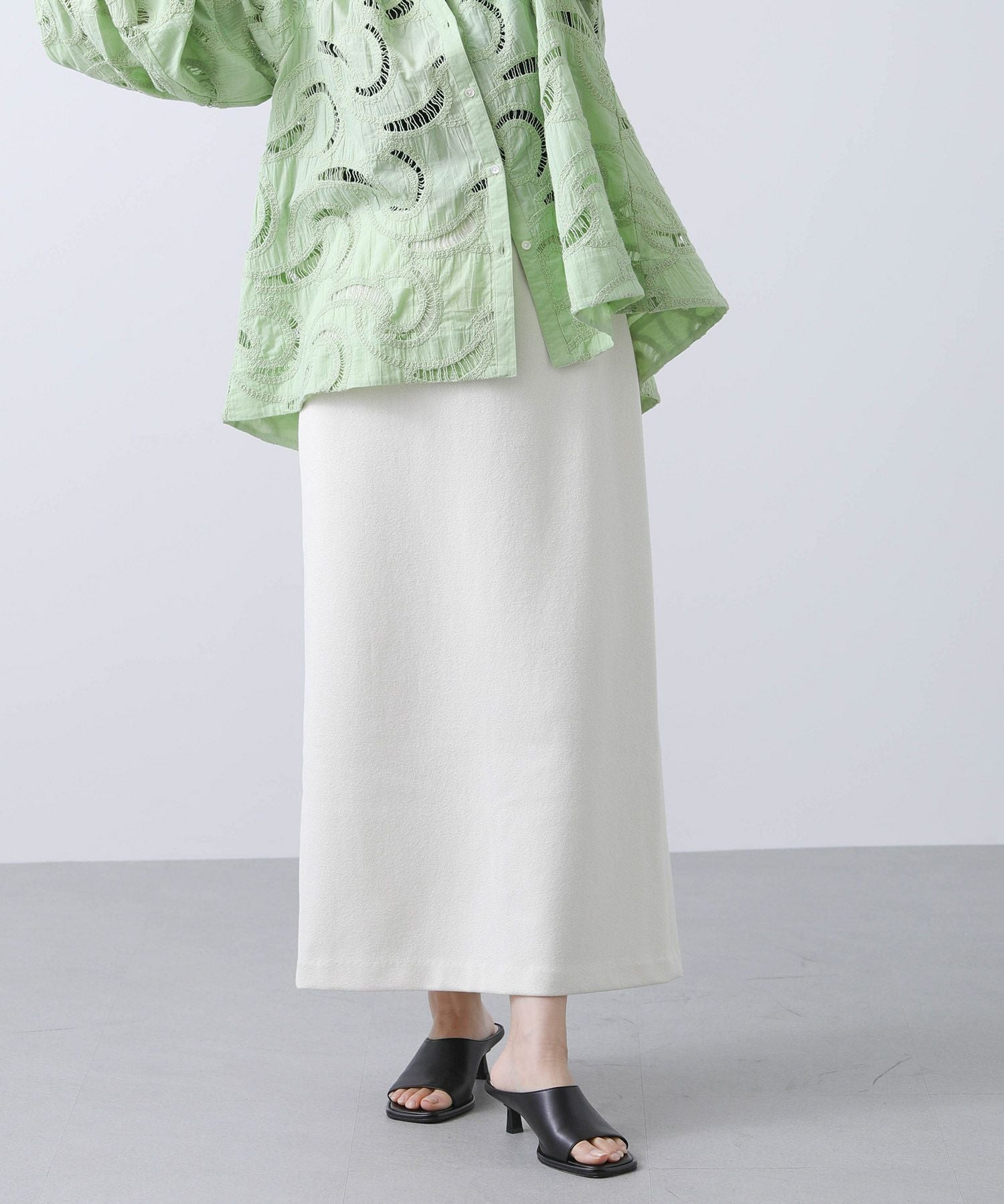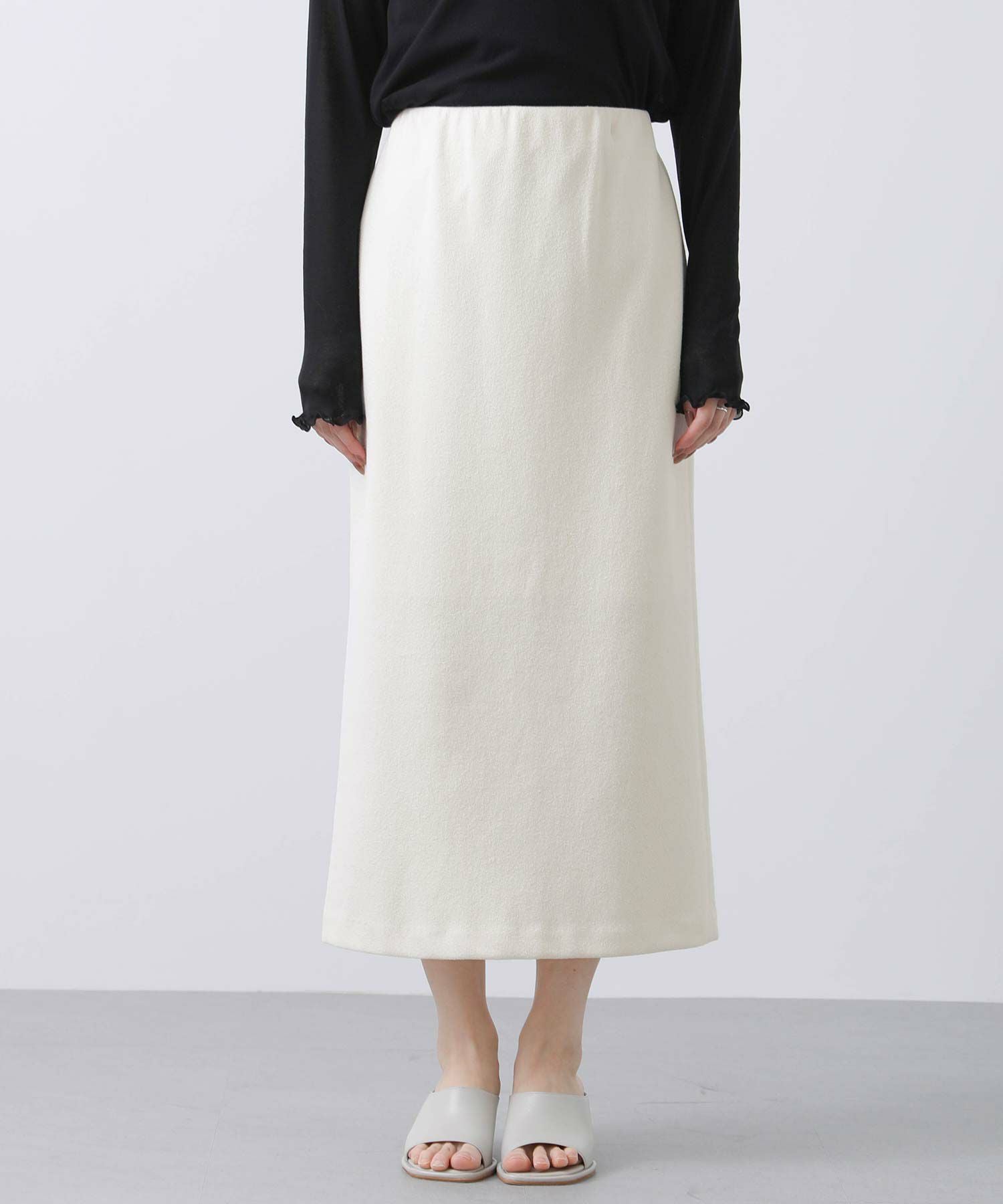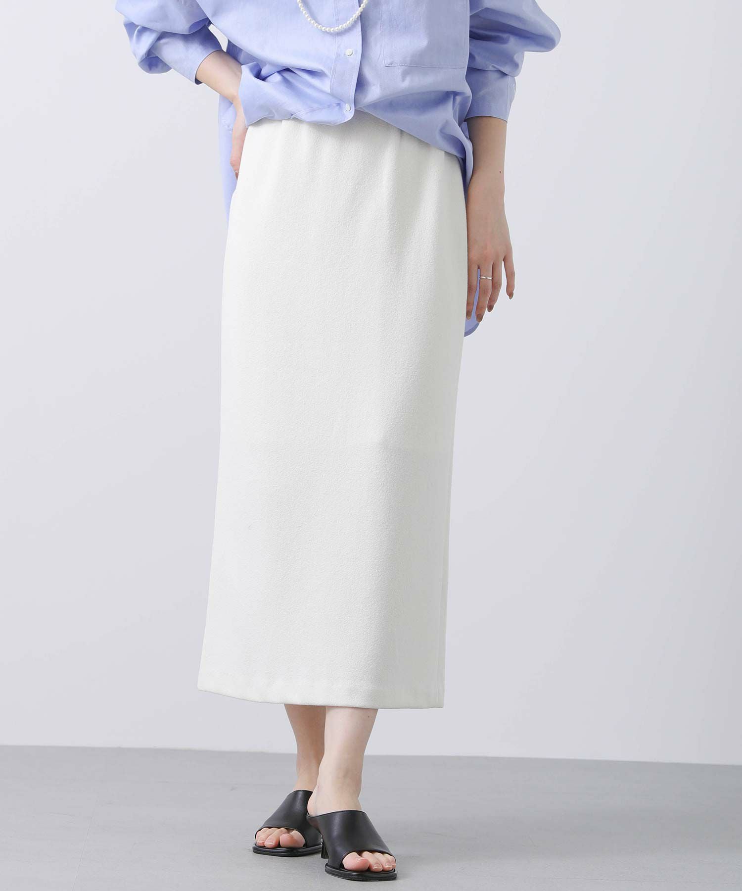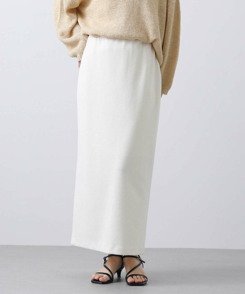 ブークレらしい凹凸感のある表面のタイトスカート。