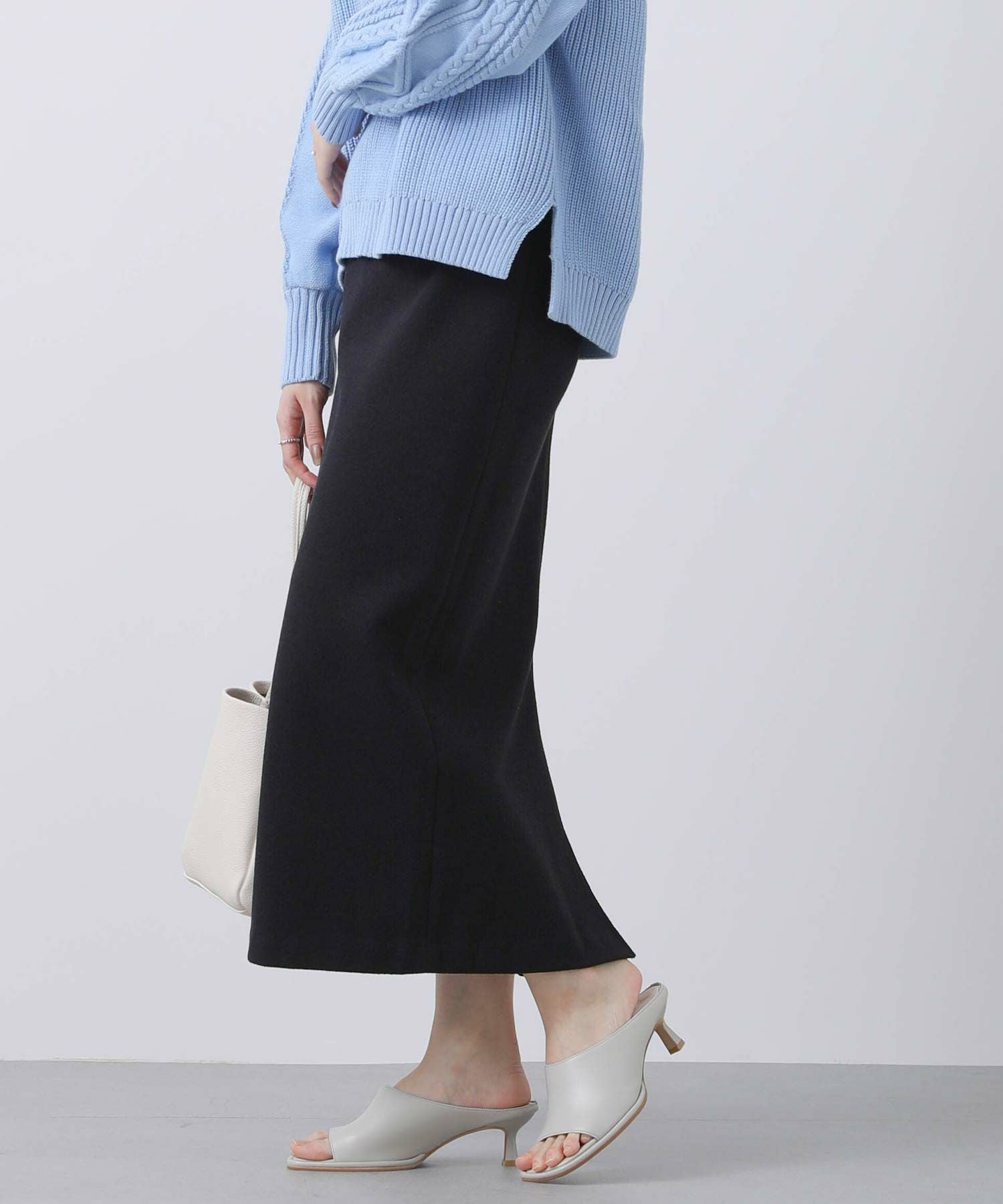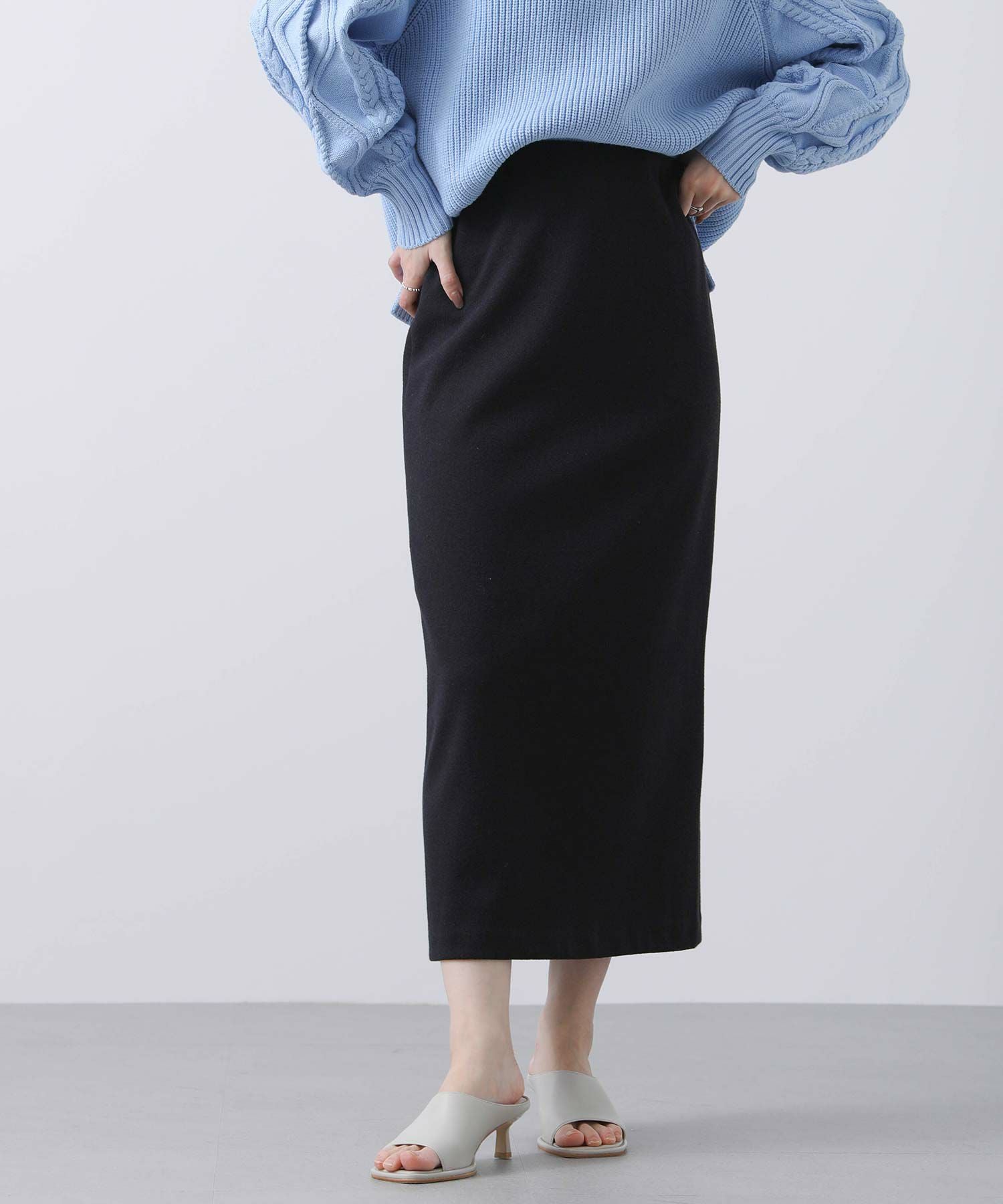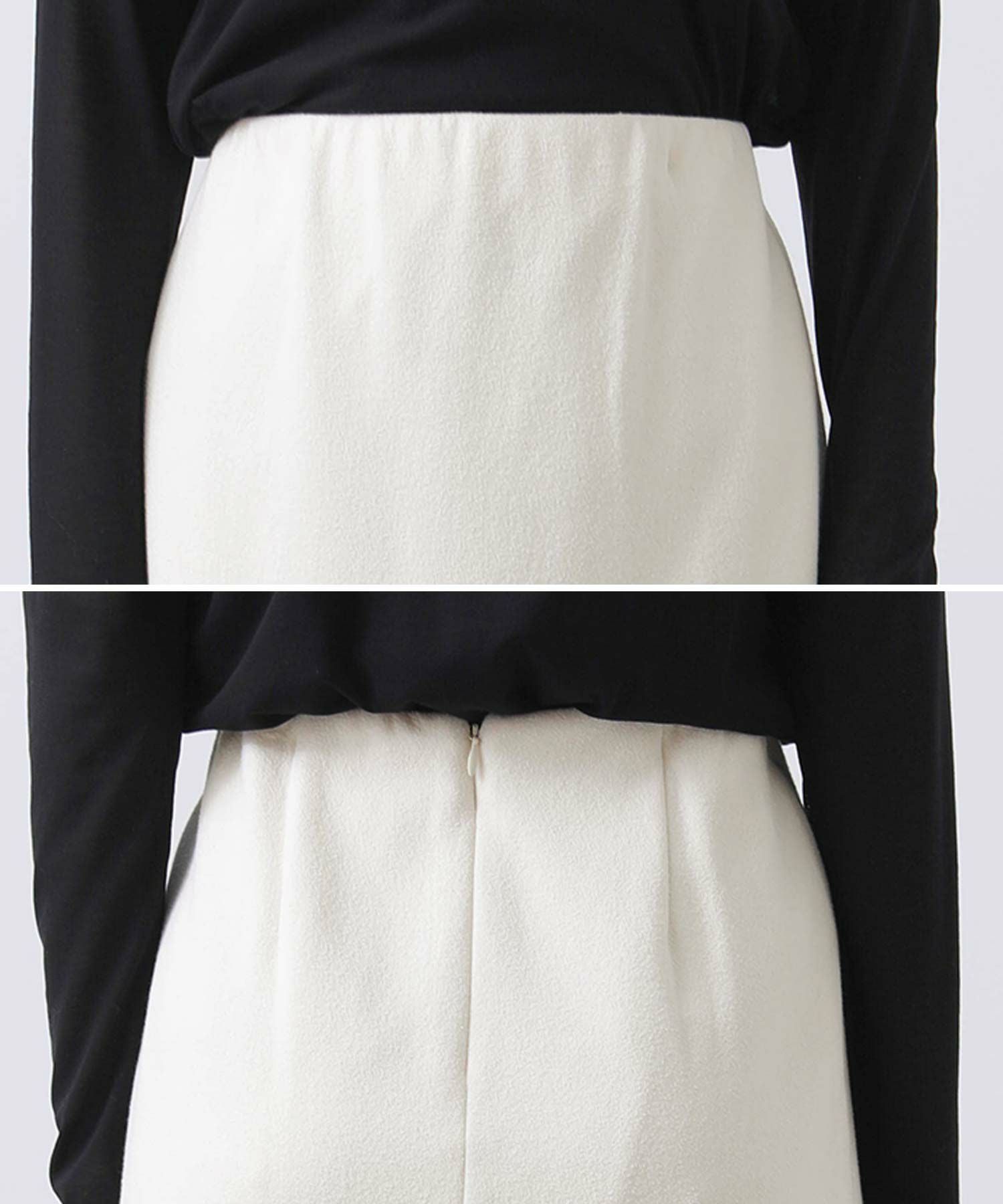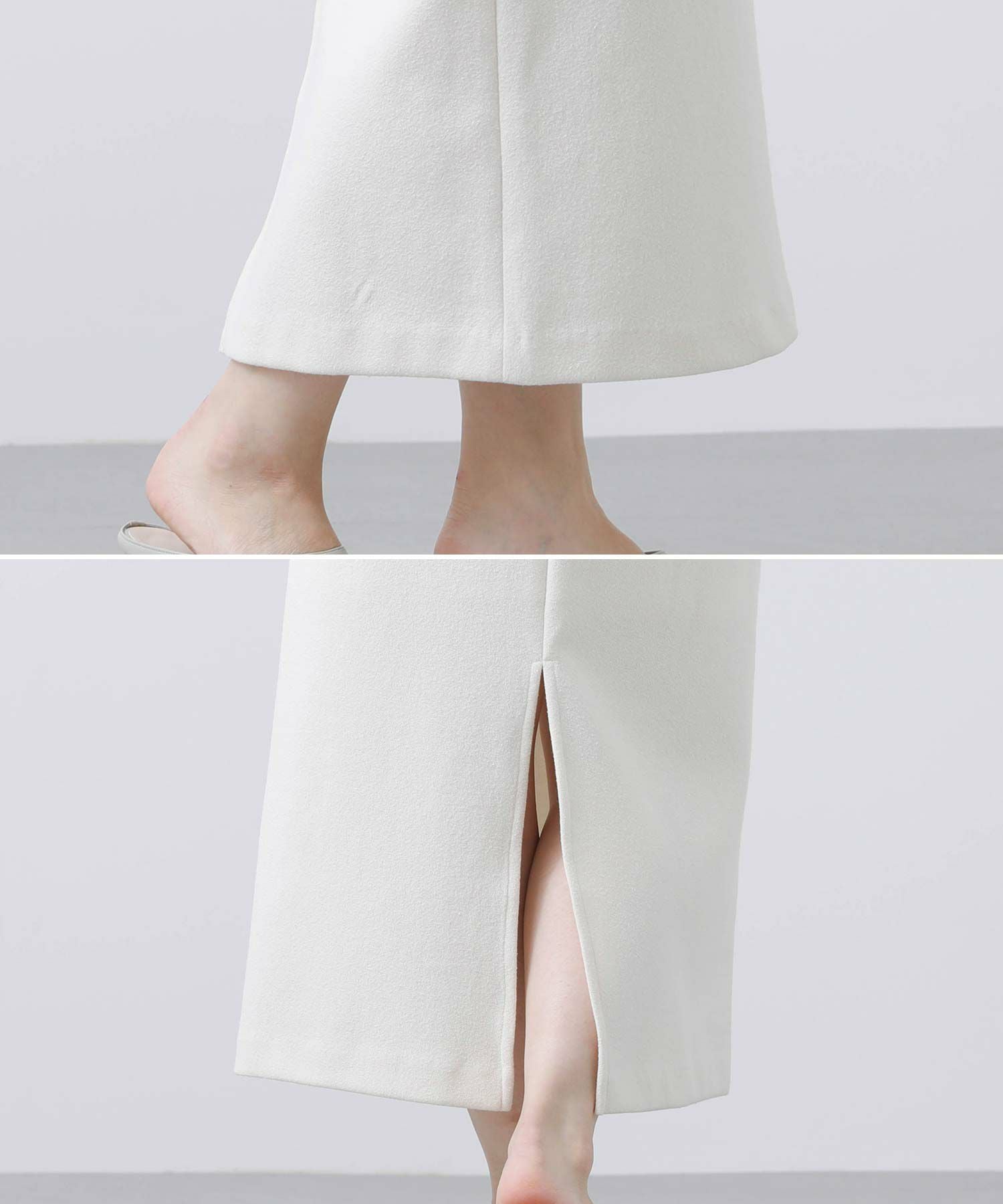 ブークレらしい凹凸感のある表面のタイトスカート。