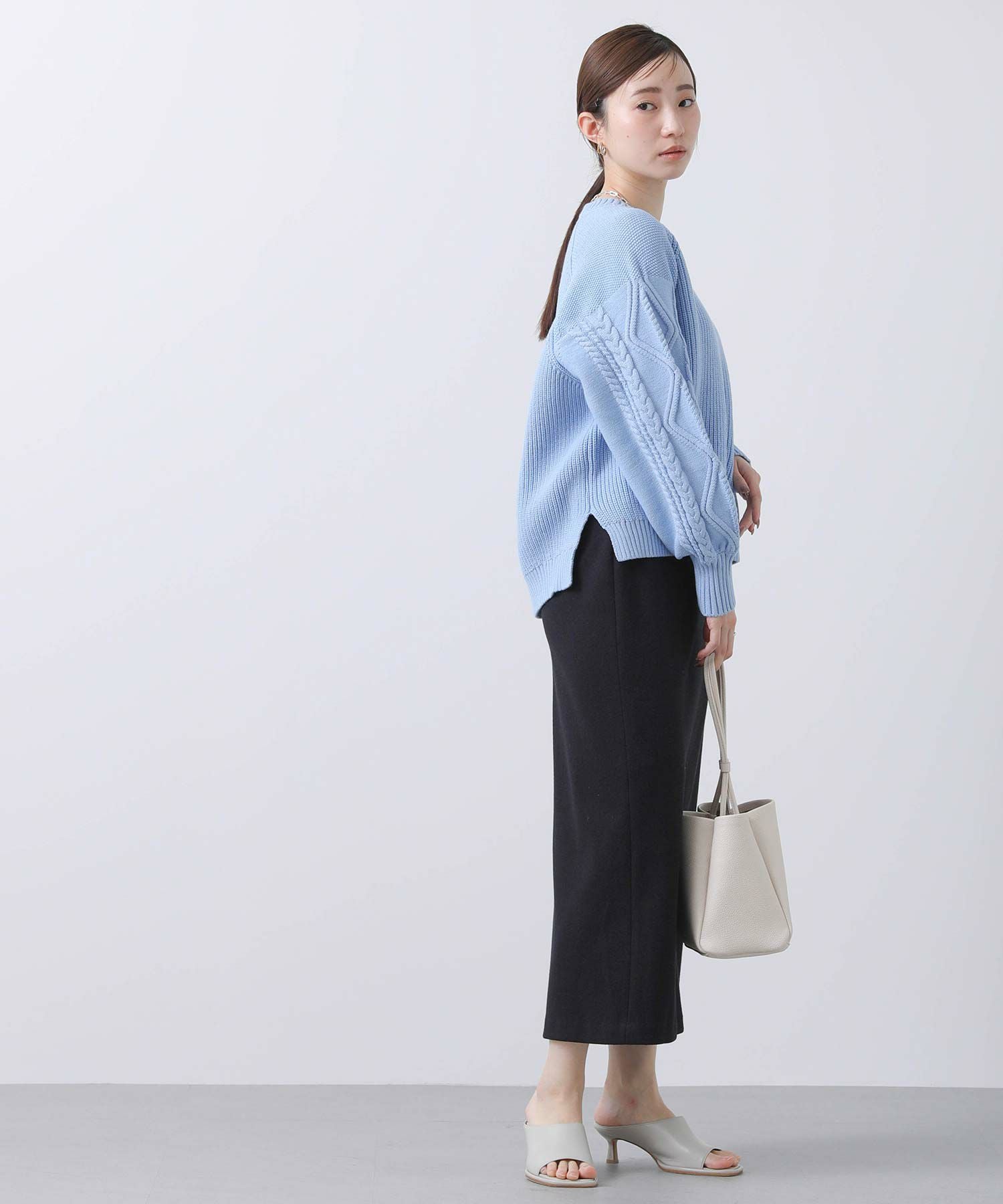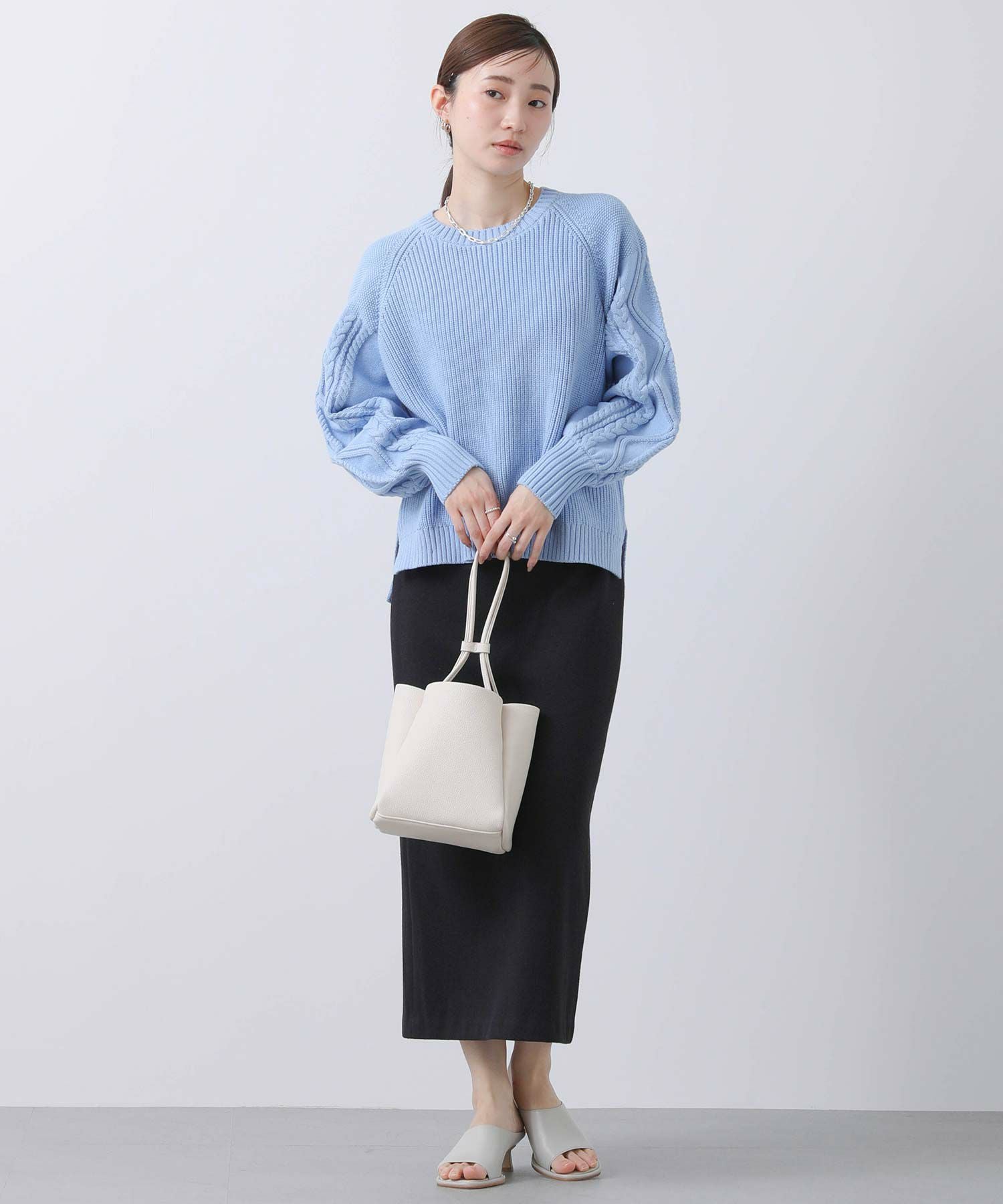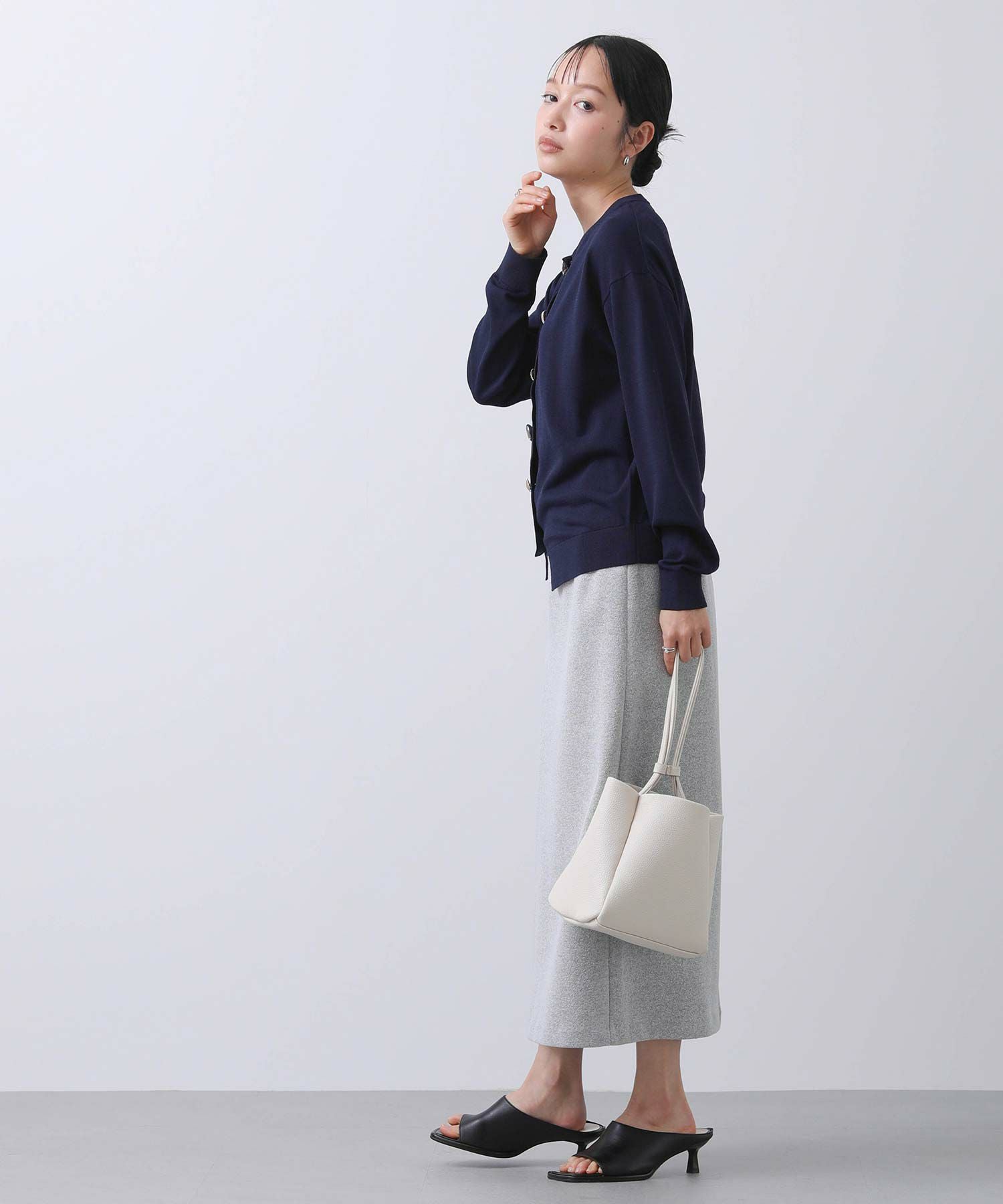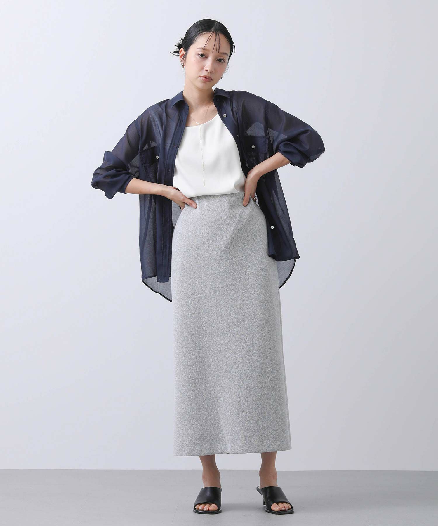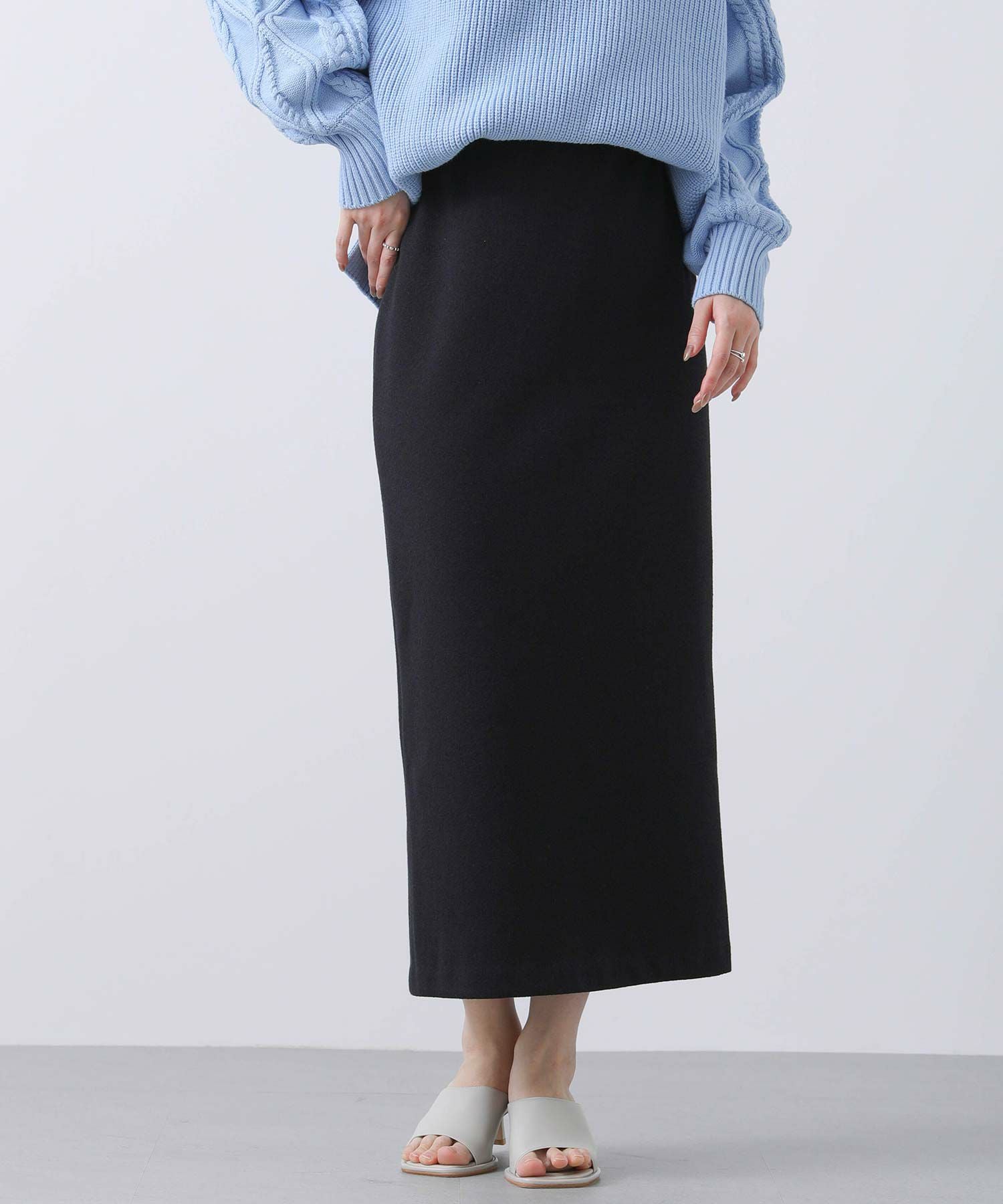 ブークレらしい凹凸感のある表面のタイトスカート。
