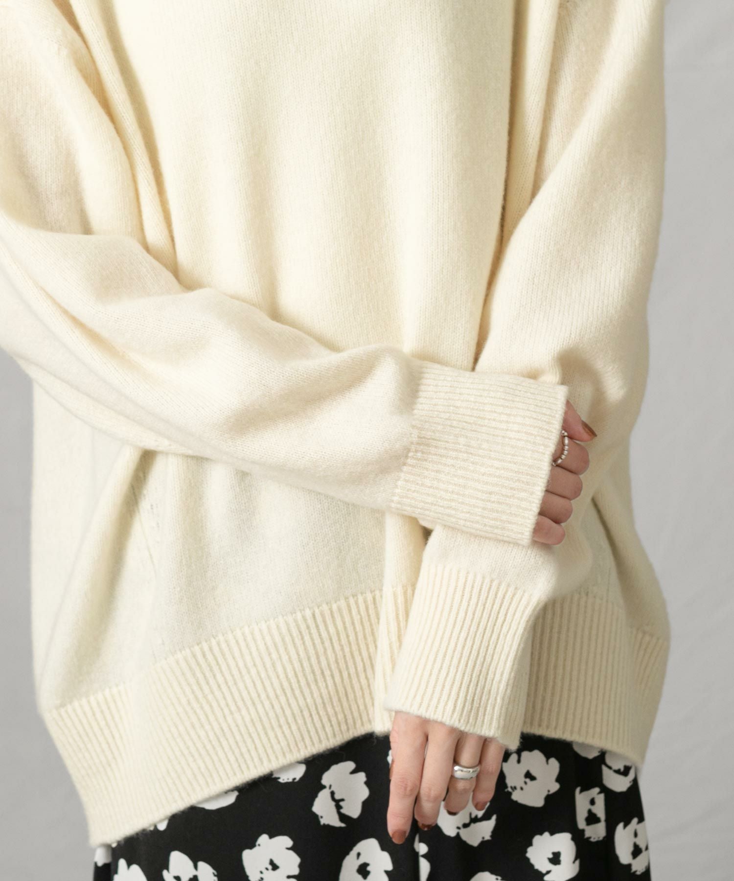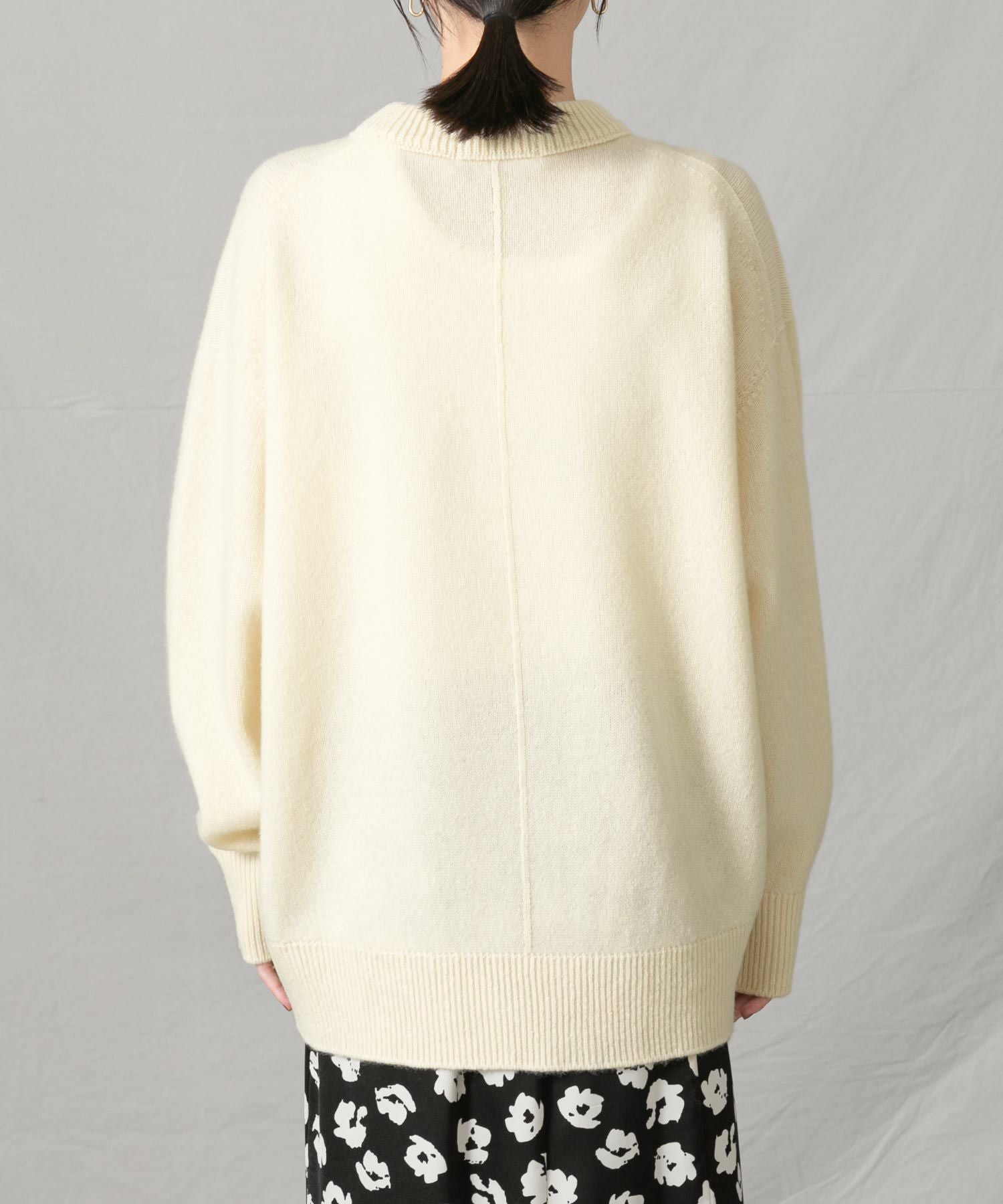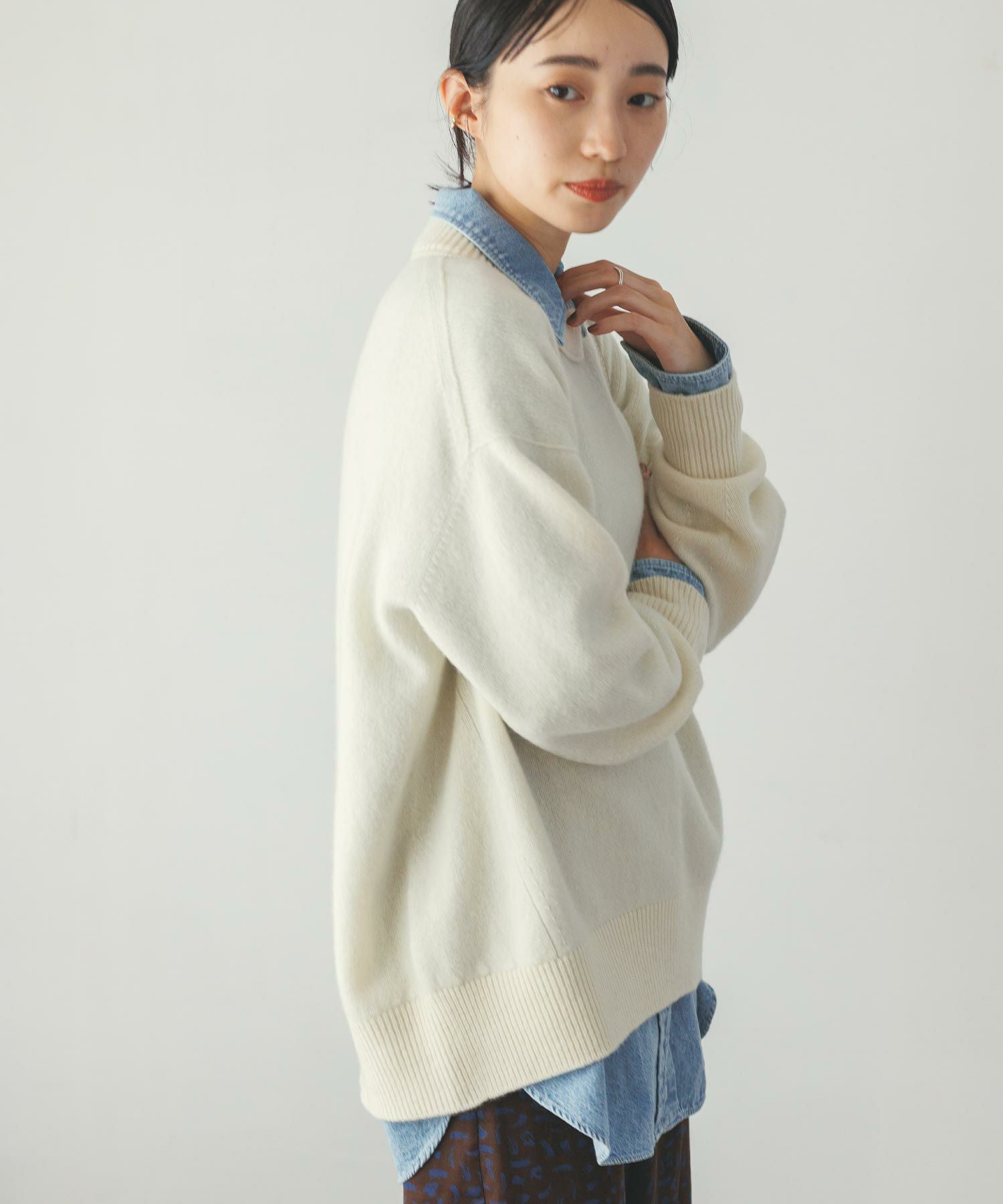 ホールガーメントニットは縫い目が無いので着心地が良く、膨らみのあるシルエットが魅力です。ベーシックなデザインですが、立体感のあるクルーネックのリブがポイントに。