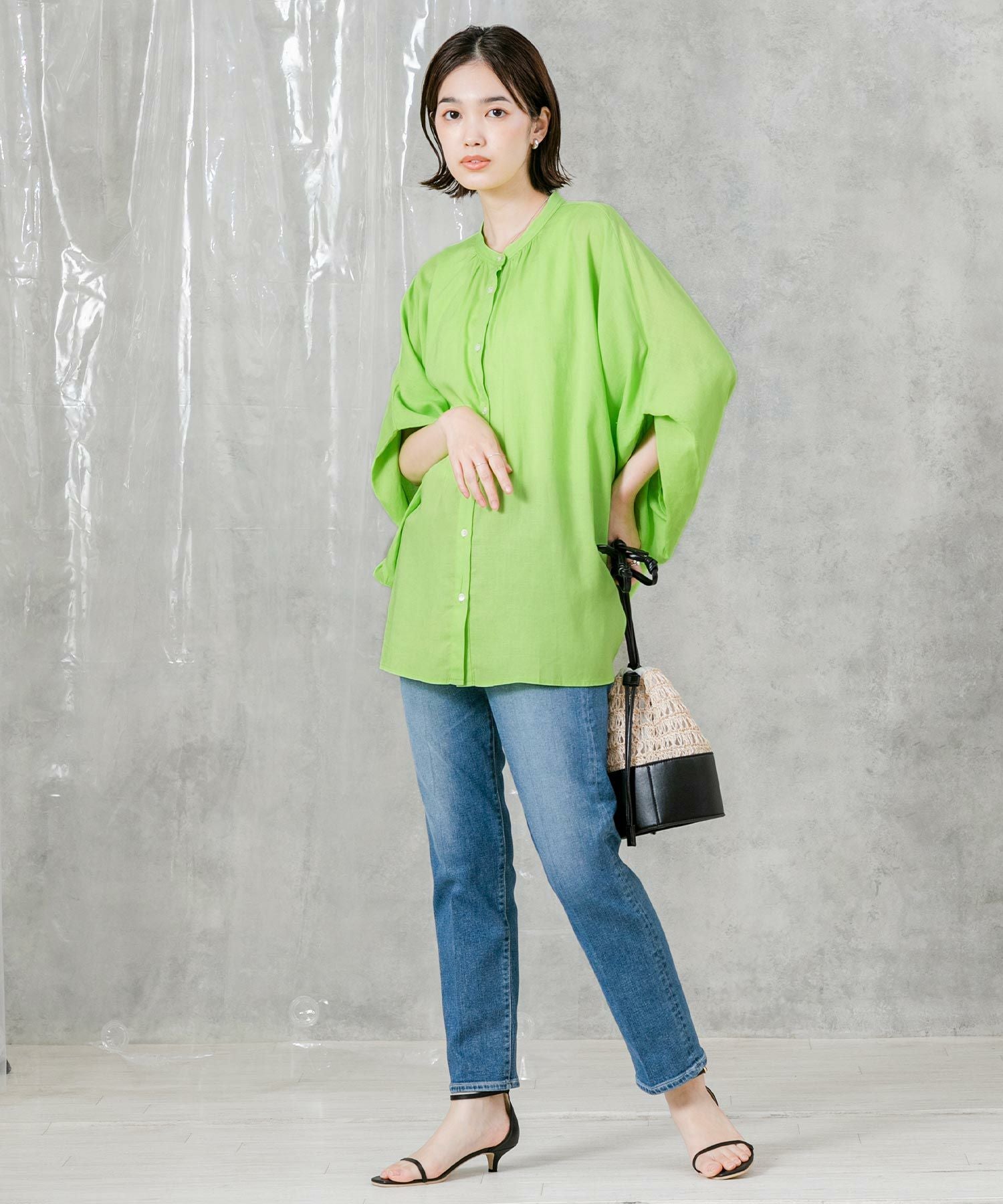 袖はタックを折り返した立体的なデザインで動きを出しました。腰回りをさりげなくカバーする着丈も嬉しいポイント。