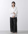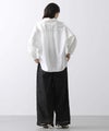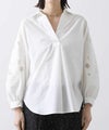 程よくハリがあり、しなやかな質感のきれいめなシャツ生地をチョイス。スキッパーの衿開きで顔回りをすっきりさせて、ドルマンスリーブの抜け感が大人の余裕を感じさせる仕上がりです。