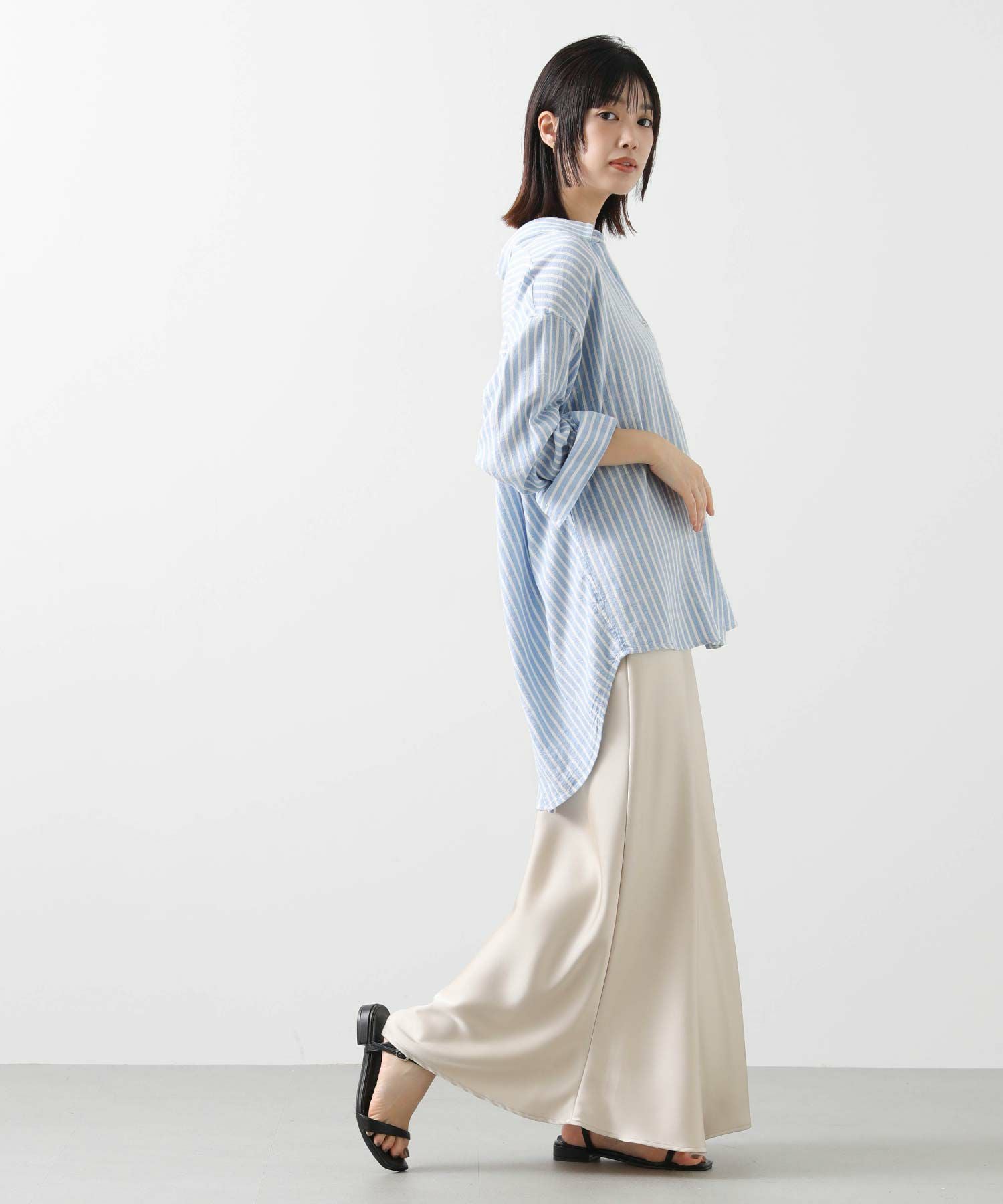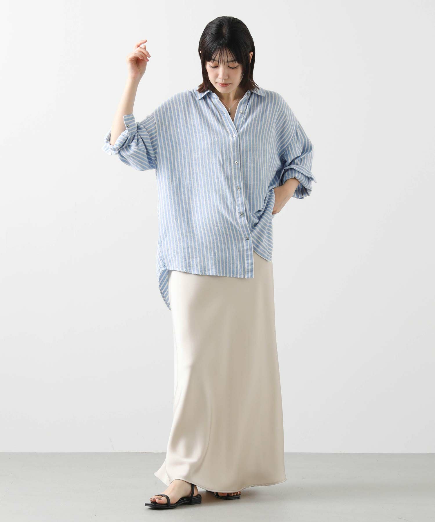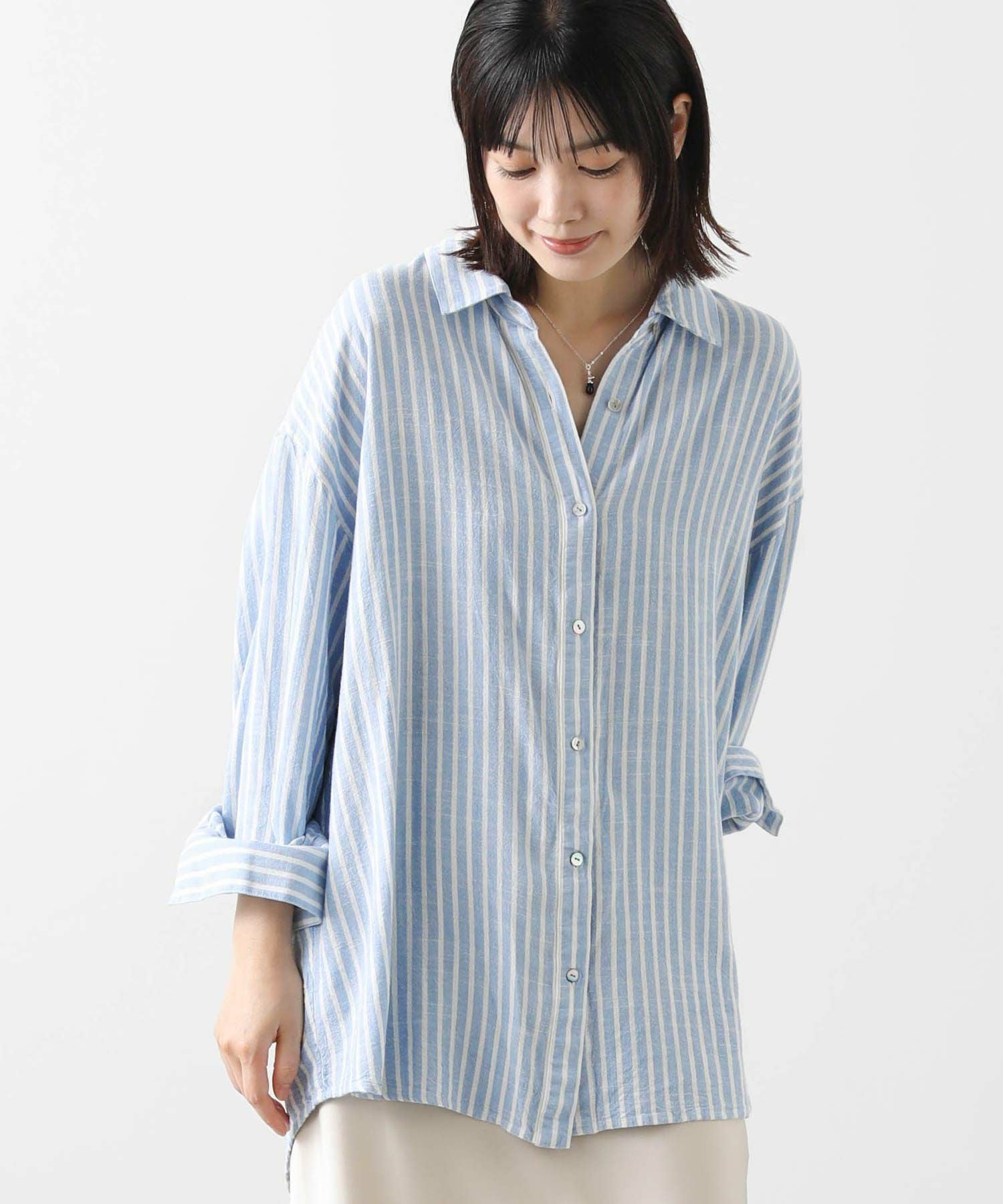 LU麻ストライプシャツ