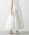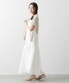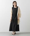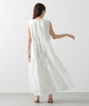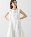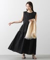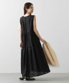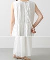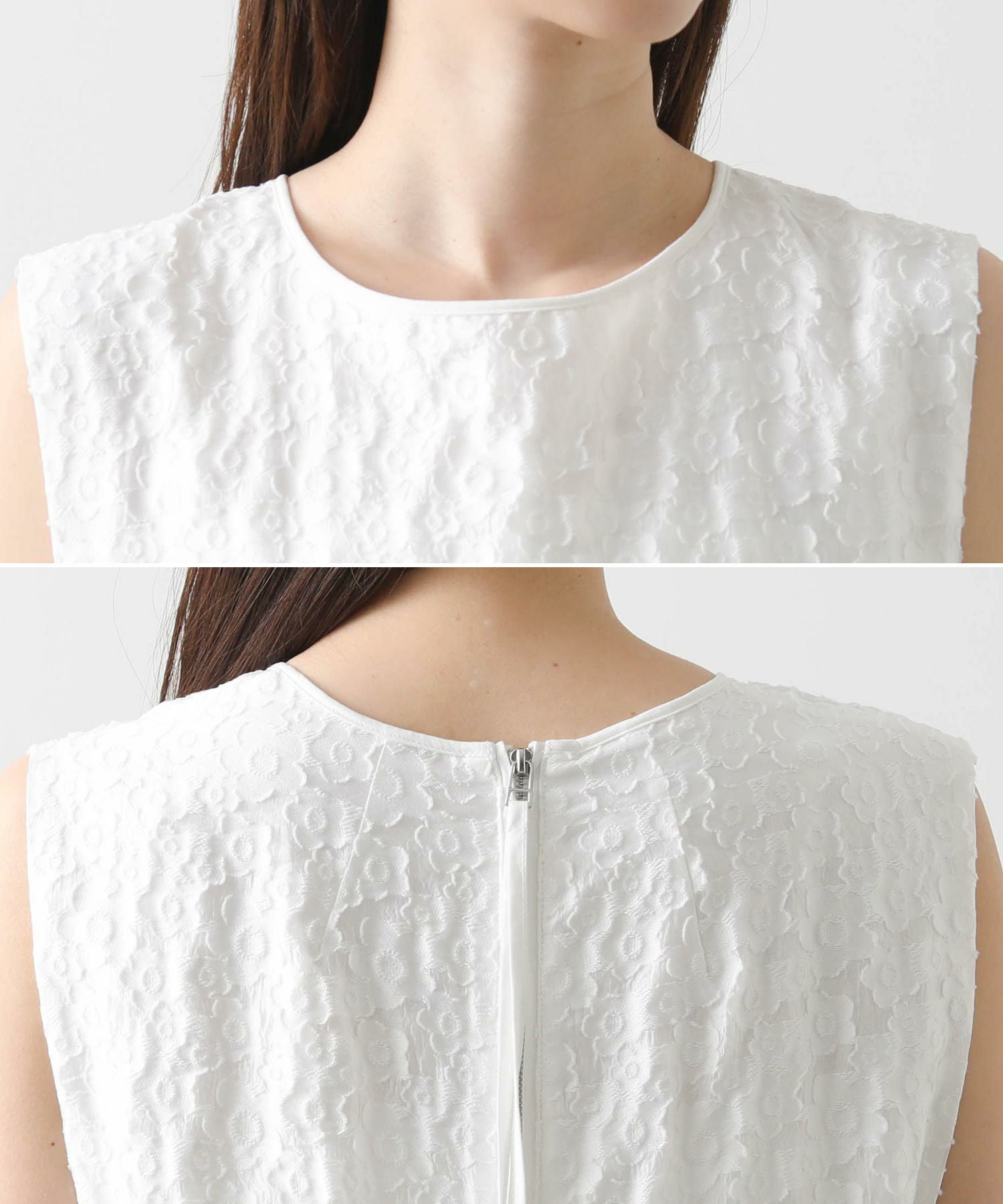 表面感があり1枚で着映えが叶います。ノースリーブながらも、やや肩と背中にかかる構築的なデザインで身体のラインを拾わずスッキリとした印象です。後ろファスナーにグログランテープが施されており、バックスタイルのポイントに。