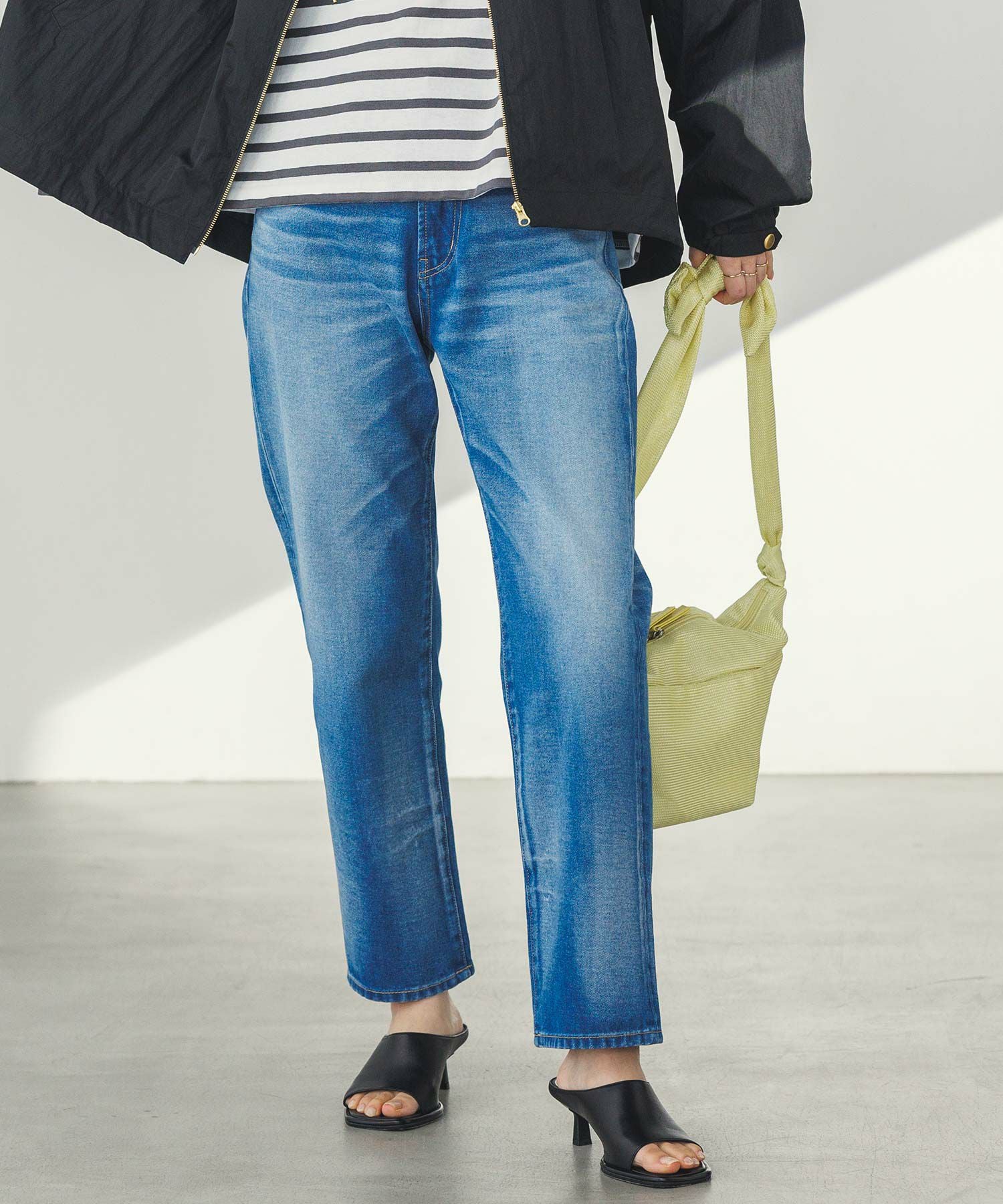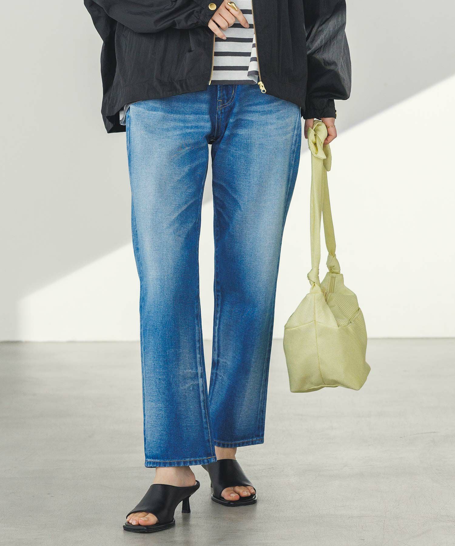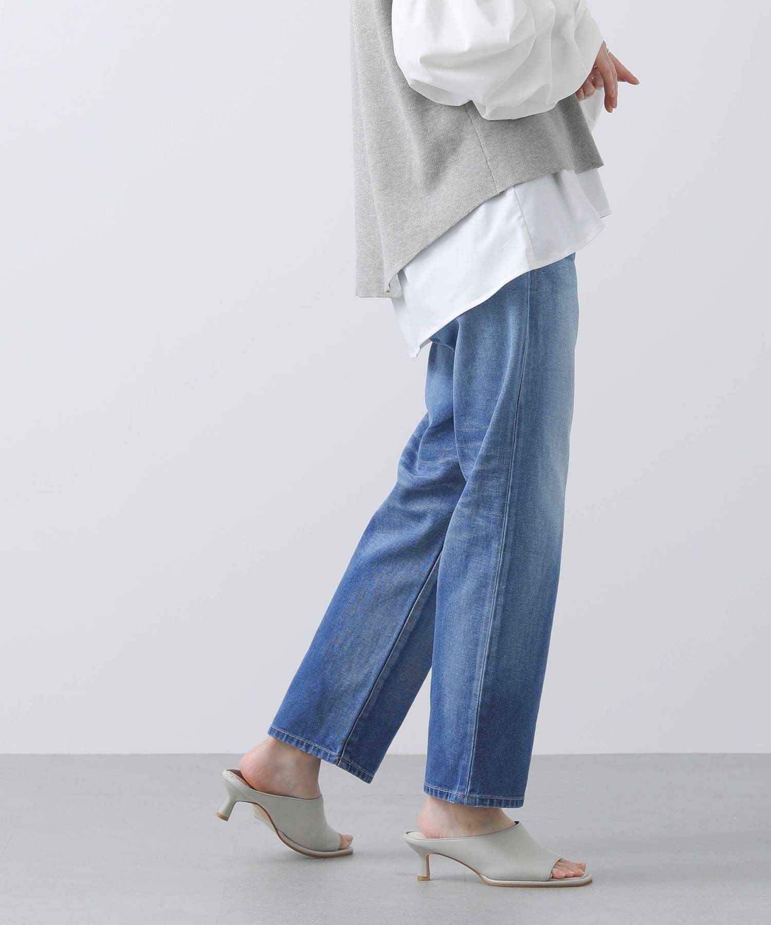全体的に程よくゆとりがあり、脚が真っ直ぐに見えるシルエットが特徴。