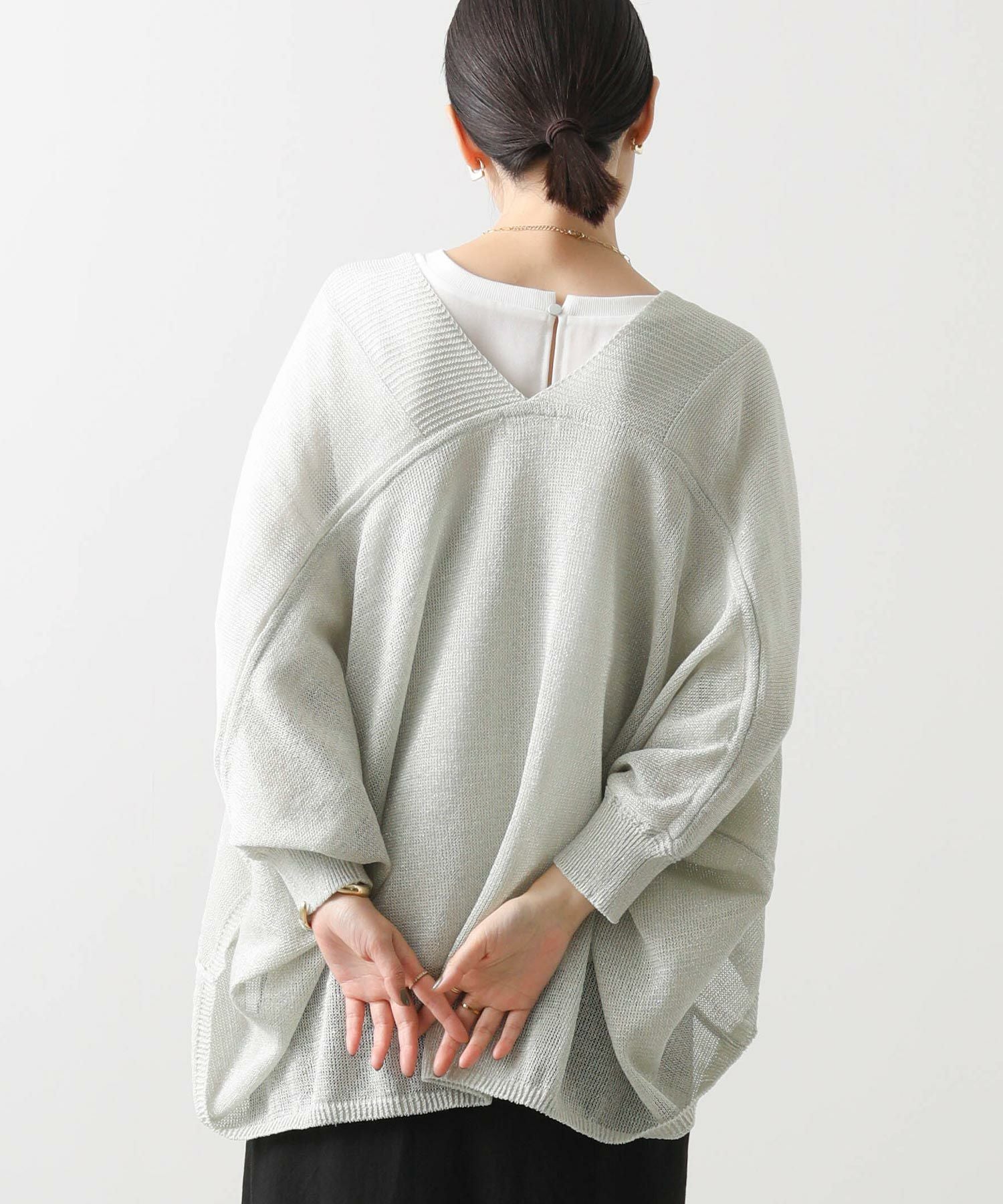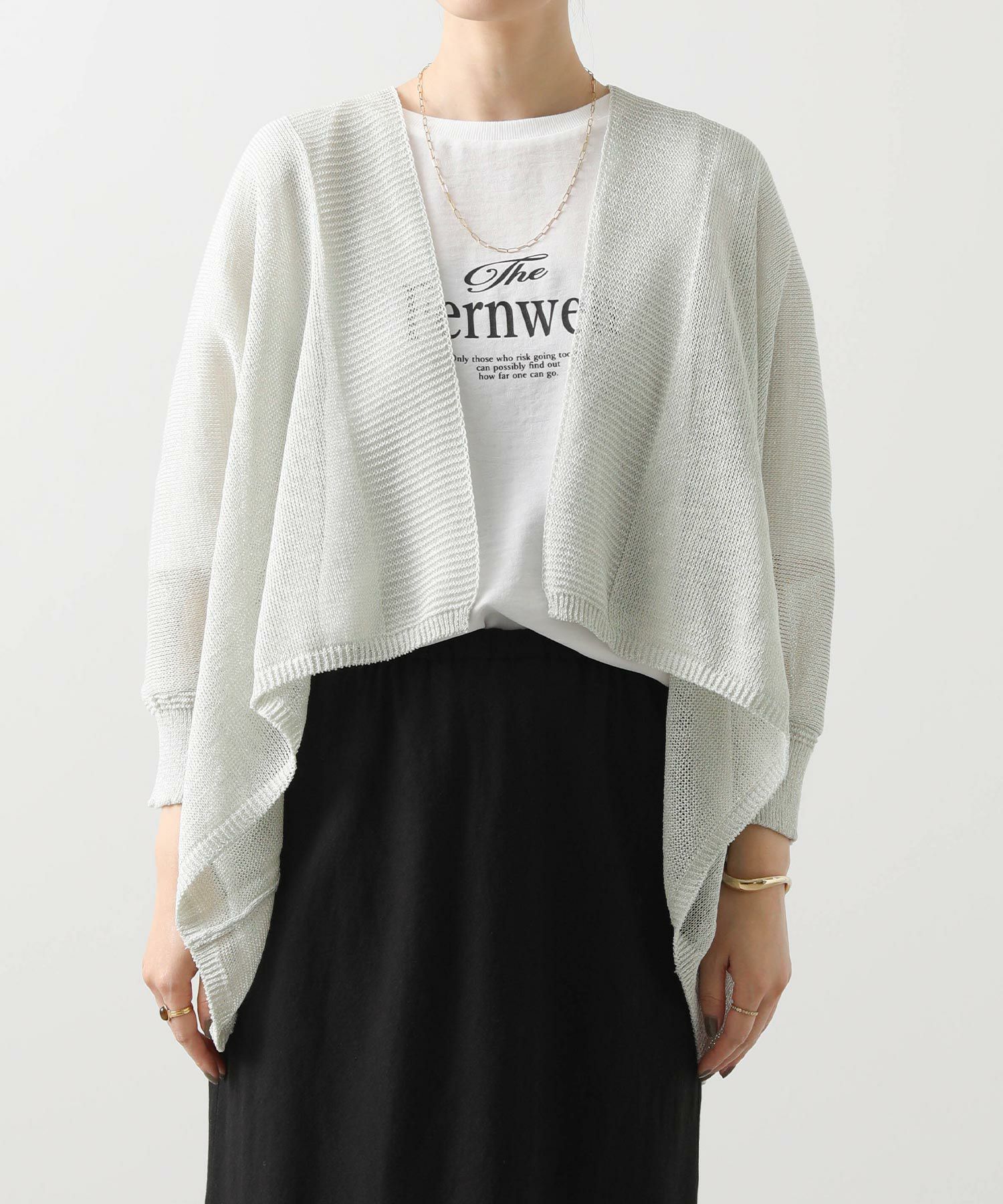 ストローヤーンの糸をざっくりとした甘い編み地で仕上げたニットトッパー。