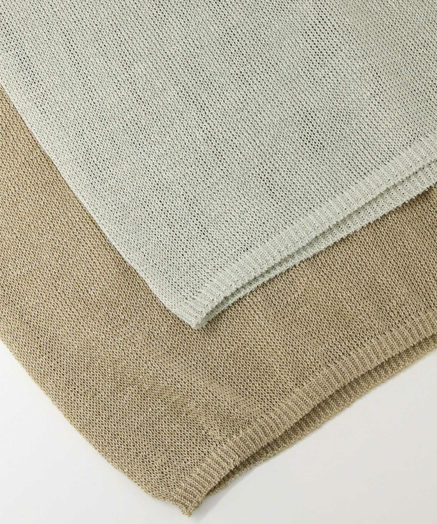 〈ストローヤーン〉=コンニャクを原料とした特殊な溶剤で綿糸を擬麻(ギマ)加工し、麻の様なさらりとした爽やかな風合いを表現した素材。