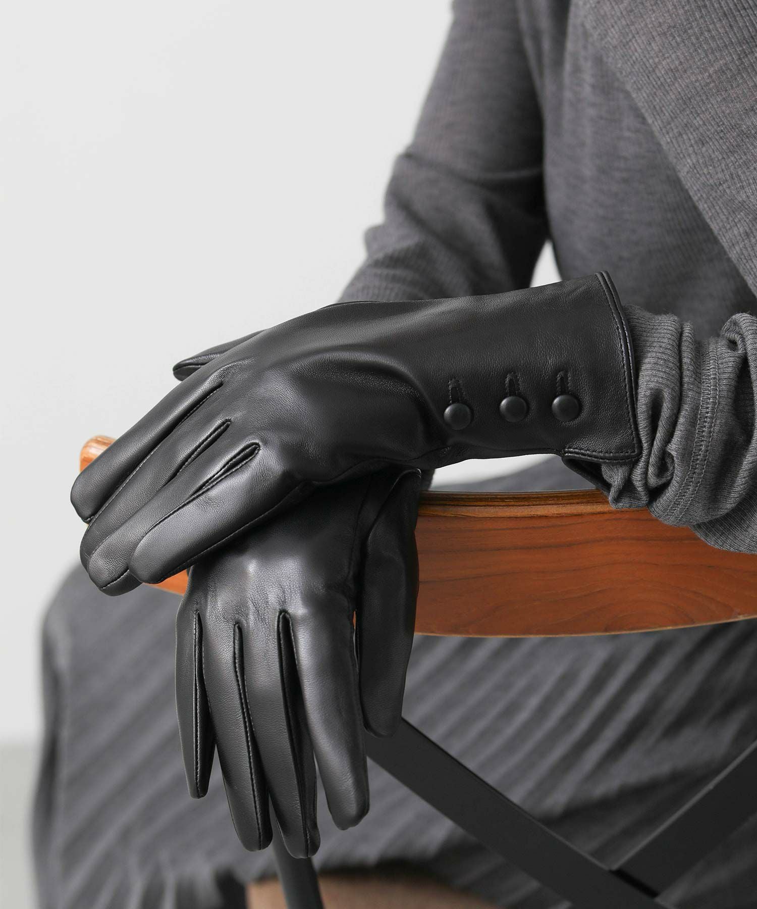 AULENTTI(オーレンティ)よりレザーグローブをセレクト。配色のベージュとブラックの2色展開です。
