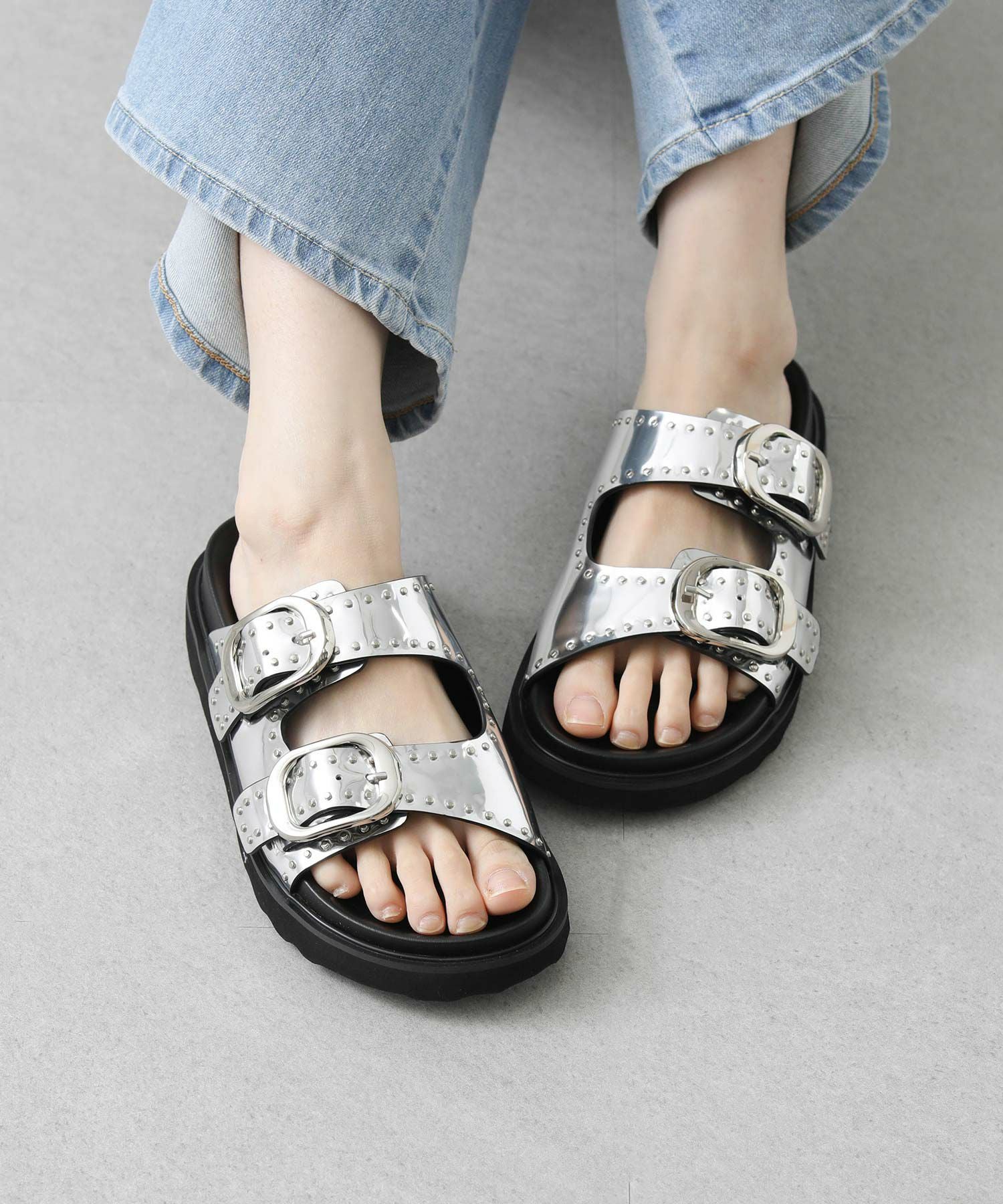 小さめのスタッズがポイントのサンダル。
