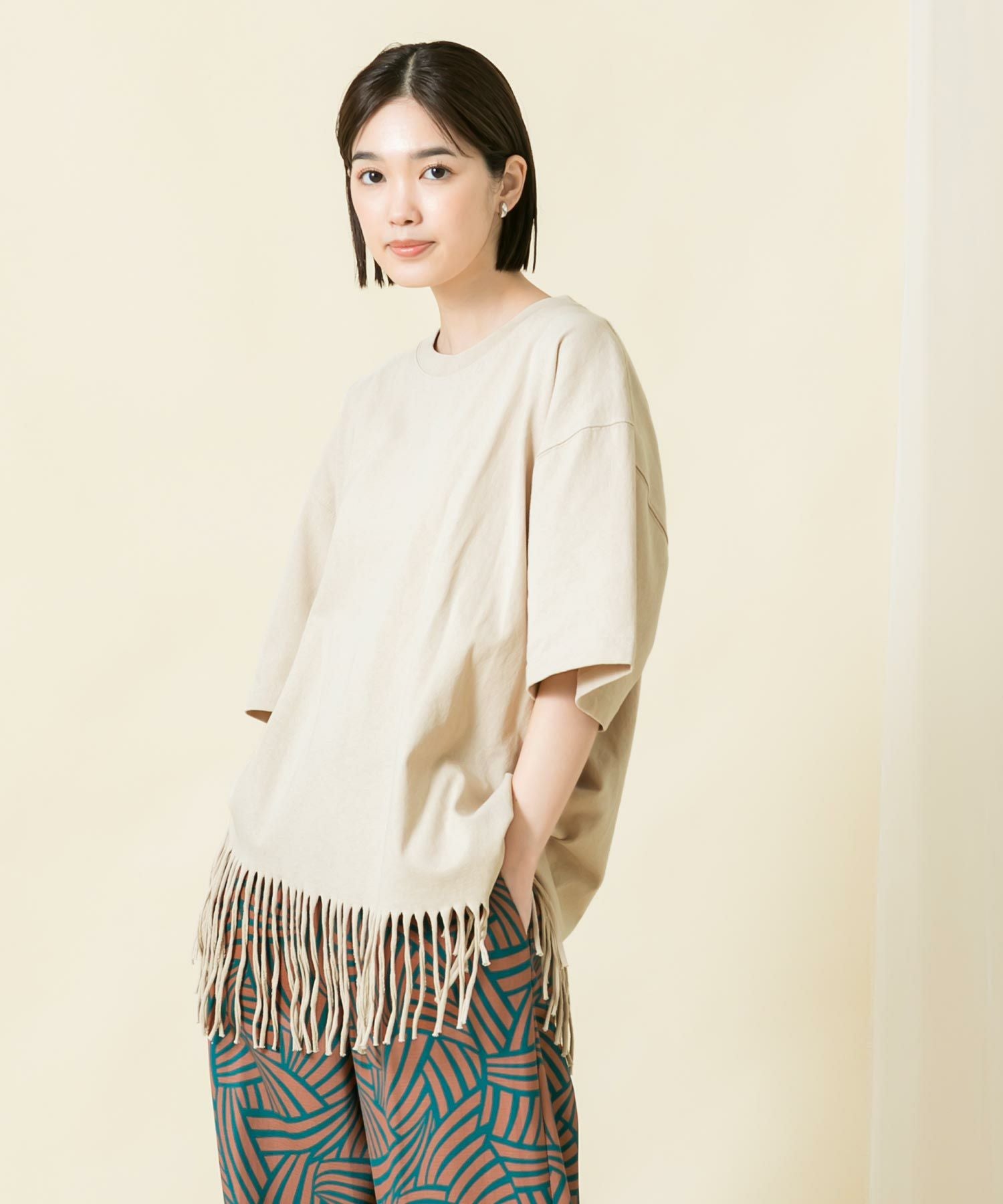 CフリンジCH5分袖カットソー