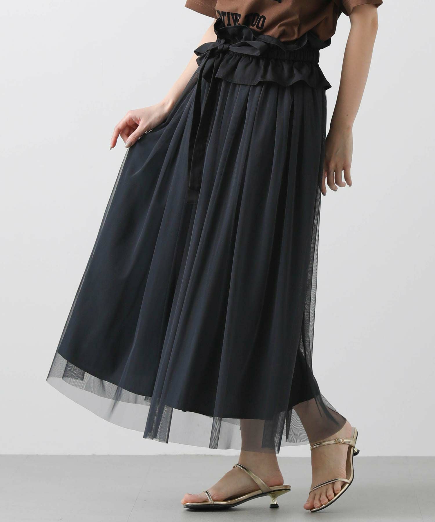 【BoutiqueOrdinary(ブティークオーディナリー)】から、ペプラムベルト付きのチュールスカートをセレクト。