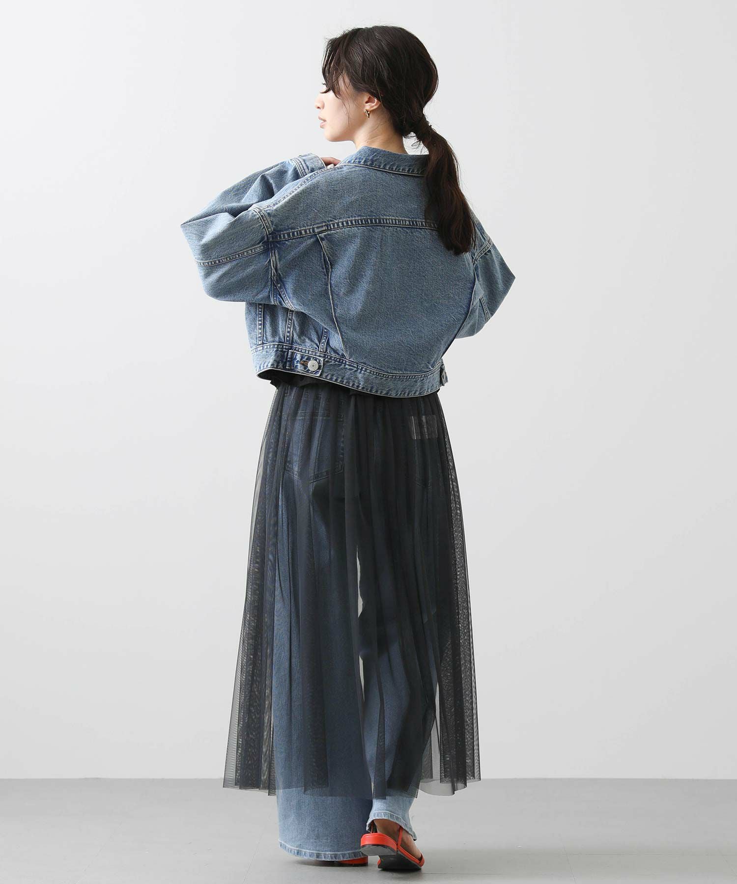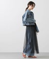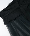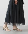 ウエスト部分にはハリのある上品なTCギャバジン素材を、スカート部分には柔らかくてしなやかなチュールメッシュ地を使用。ペチコートには繊細なシワとドレープ感が特徴的なヴィンテージデシンを使用しています。