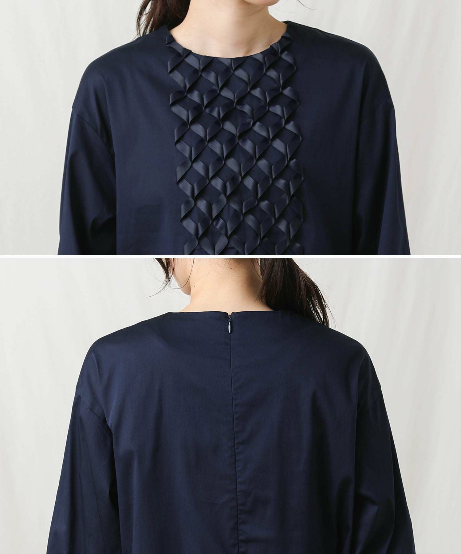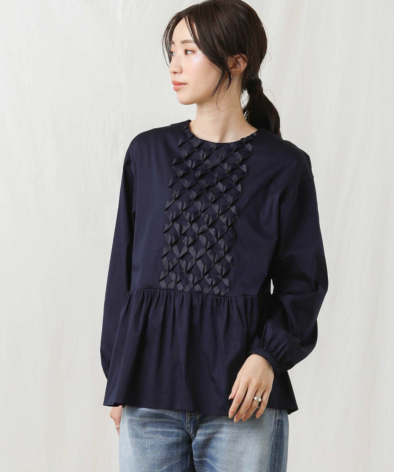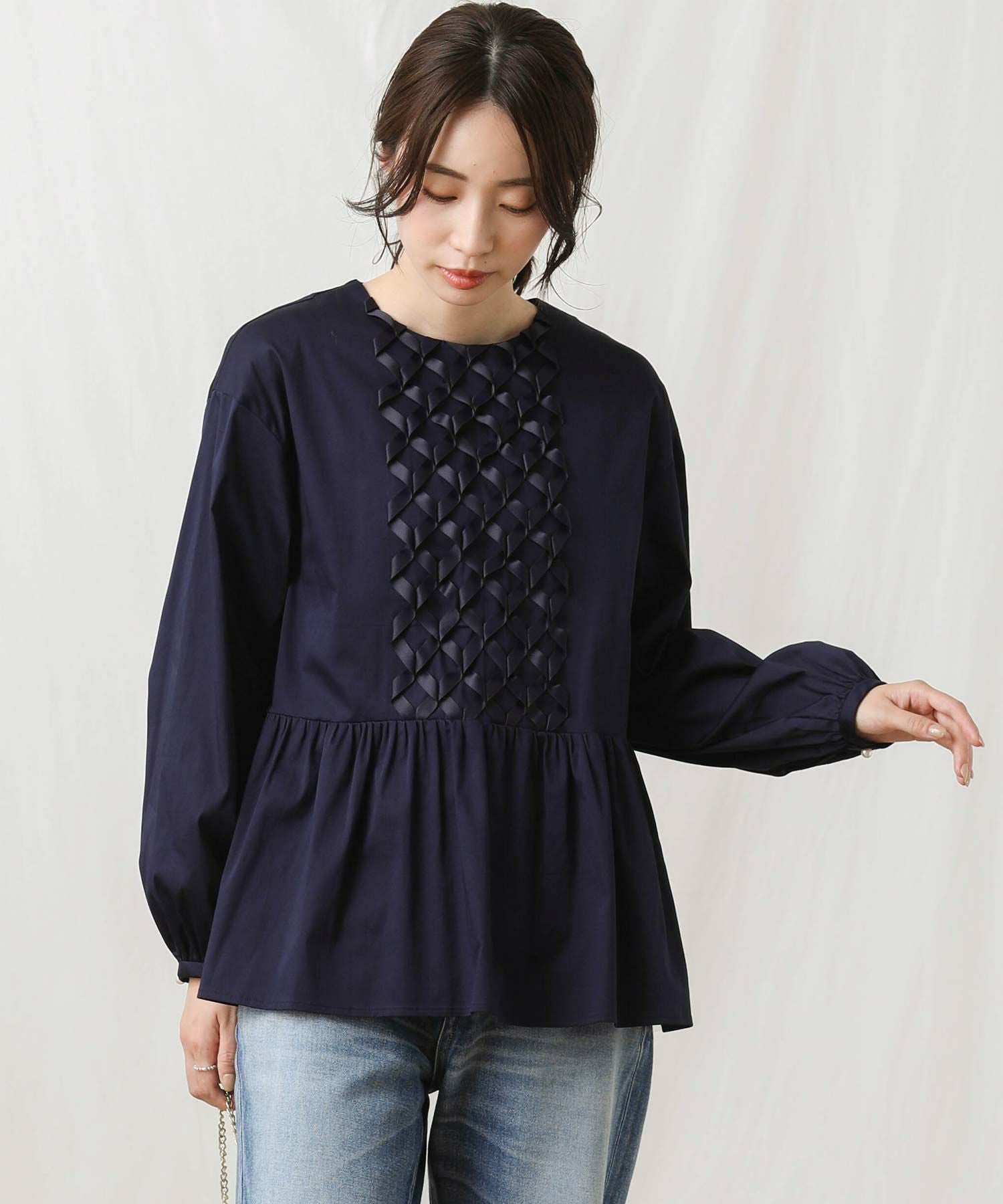 【SONO(ソーノ】から、前身頃中心のリボンモチーフが印象的なアイコンブラウスをセレクト。