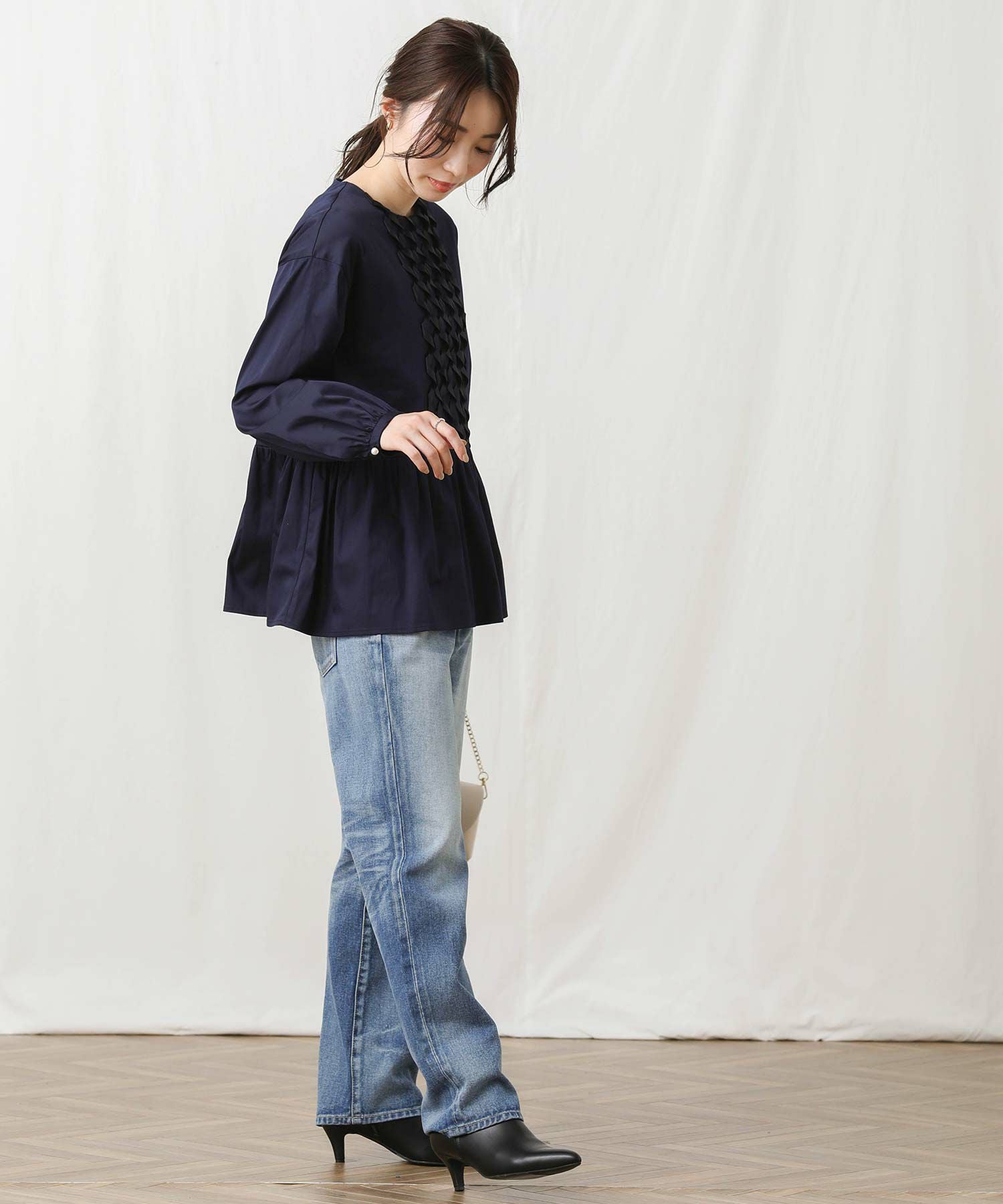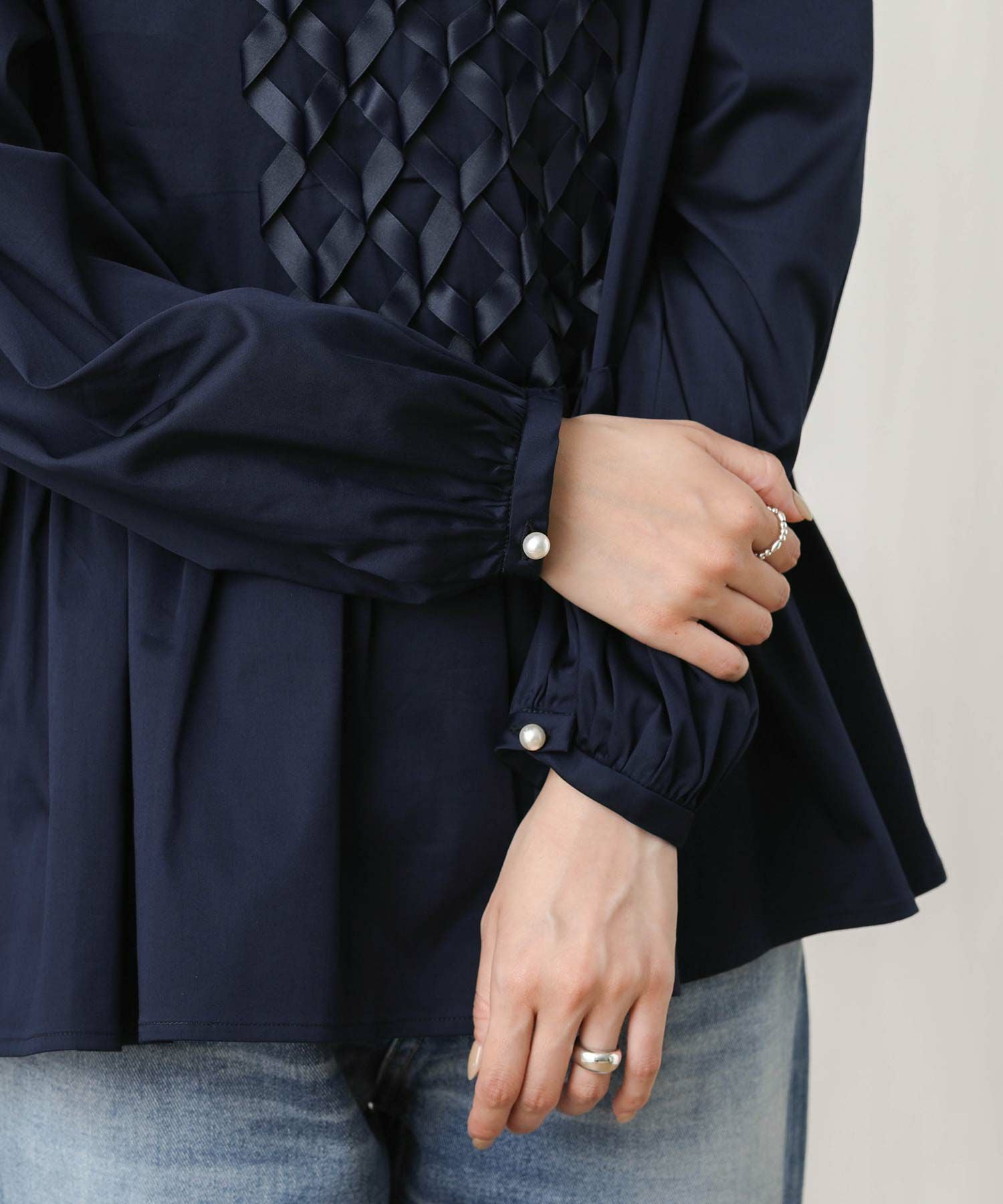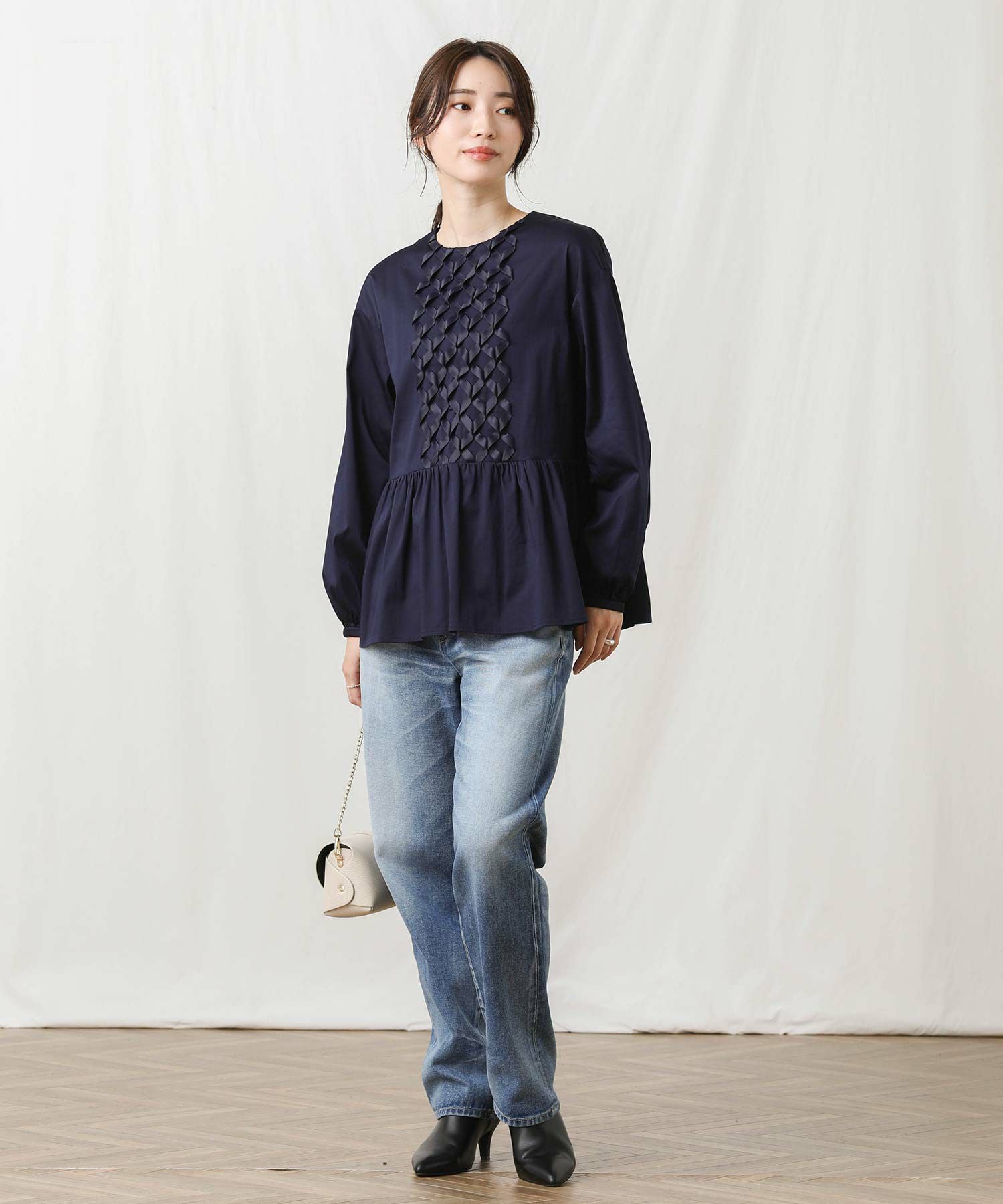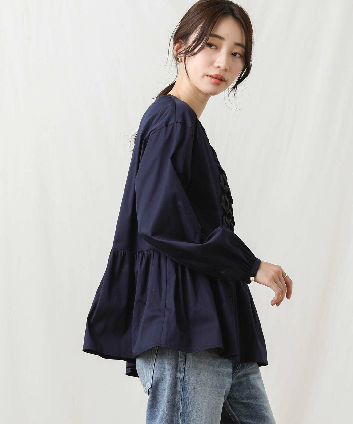 【SONO(ソーノ】から、前身頃中心のリボンモチーフが印象的なアイコンブラウスをセレクト。