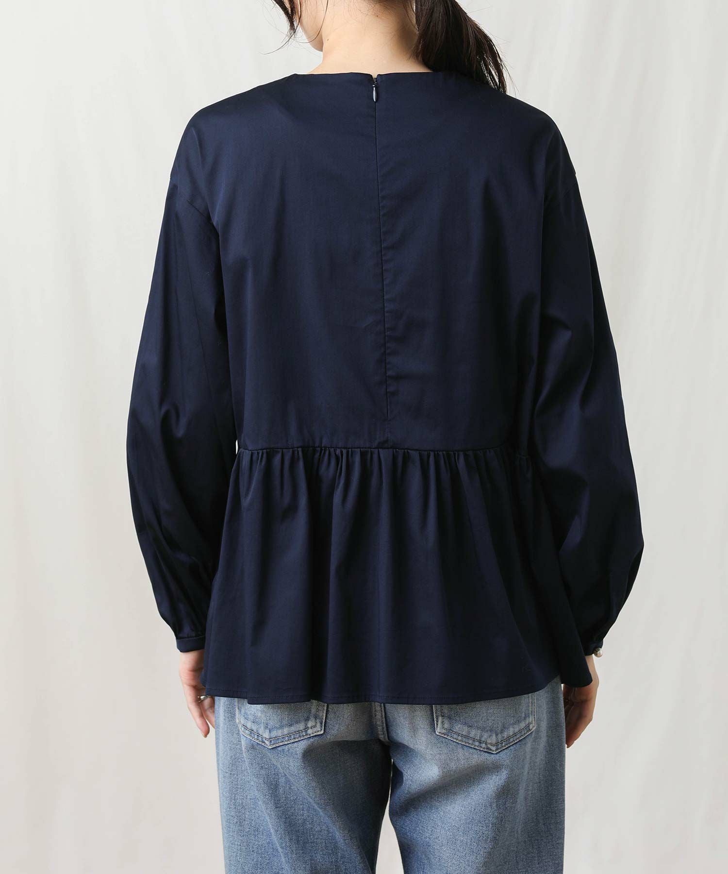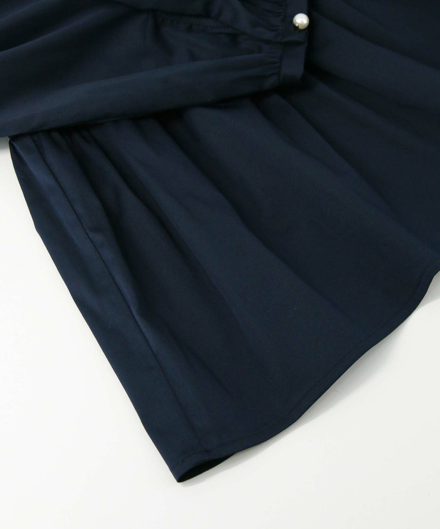 上品な光沢で適度なハリとストレッチ性のあるサテンを使用しているので、きちんと感のある大人ブラウスに仕上がっています。