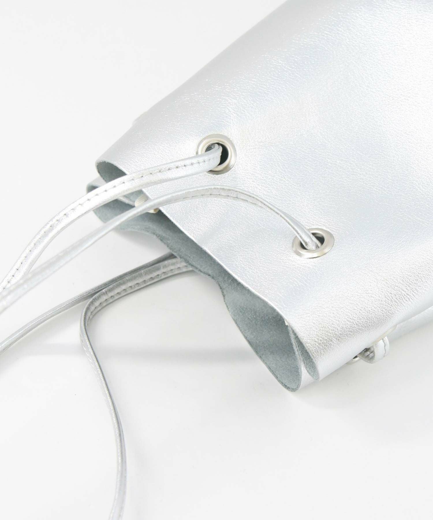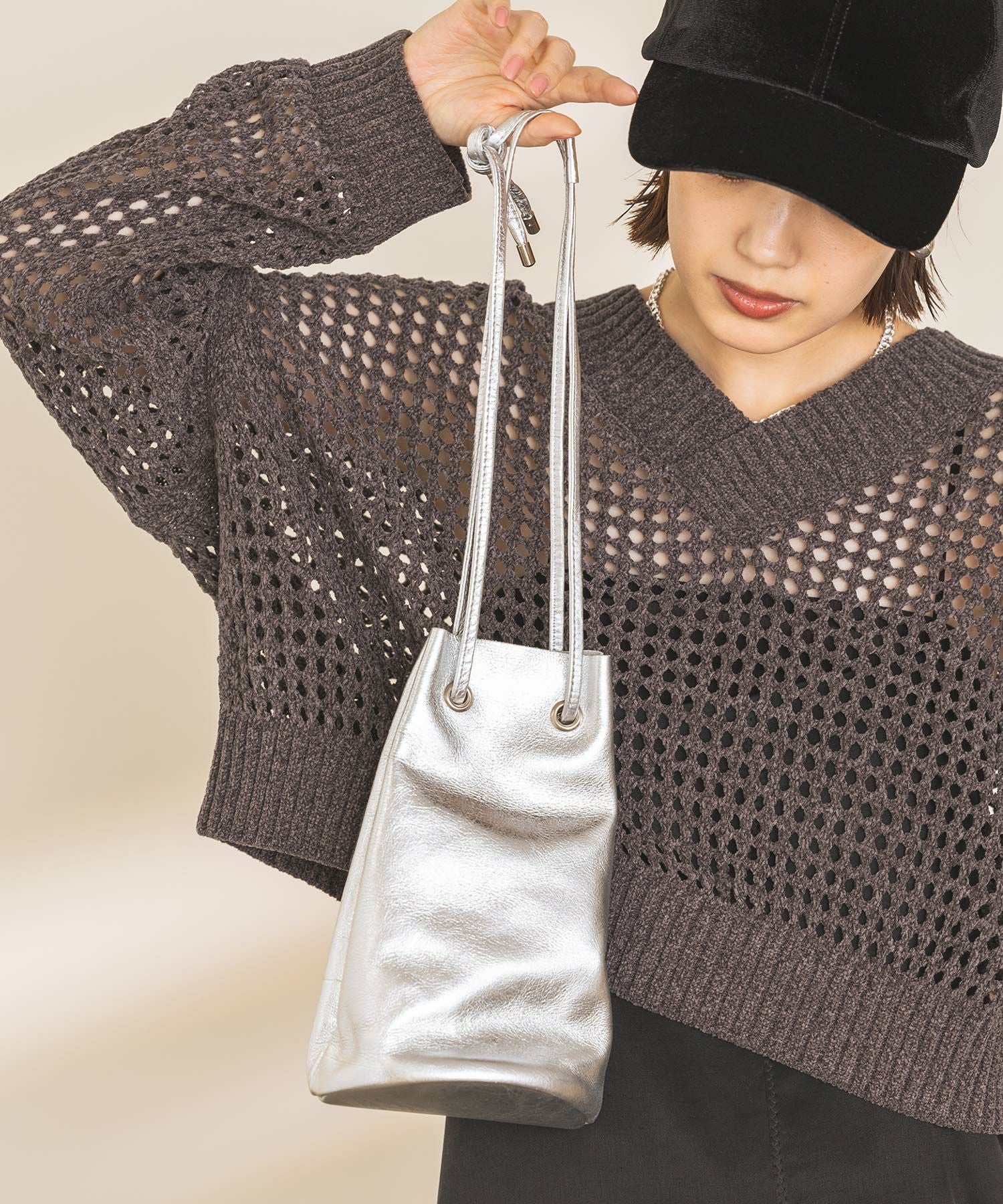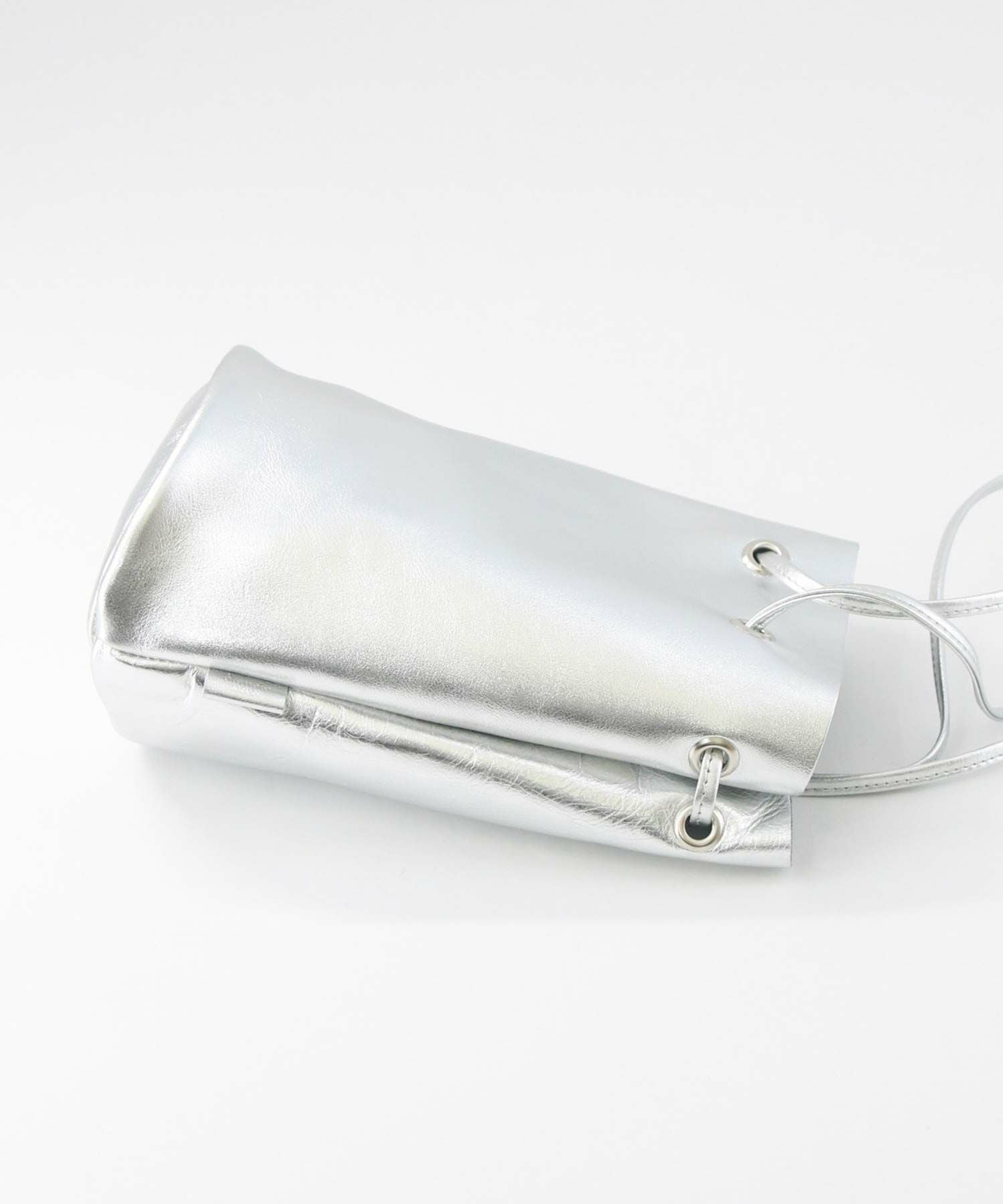 メタリックレザーの華やかさとコロンとしたチューブ型が可愛らしいバッグ。