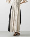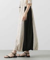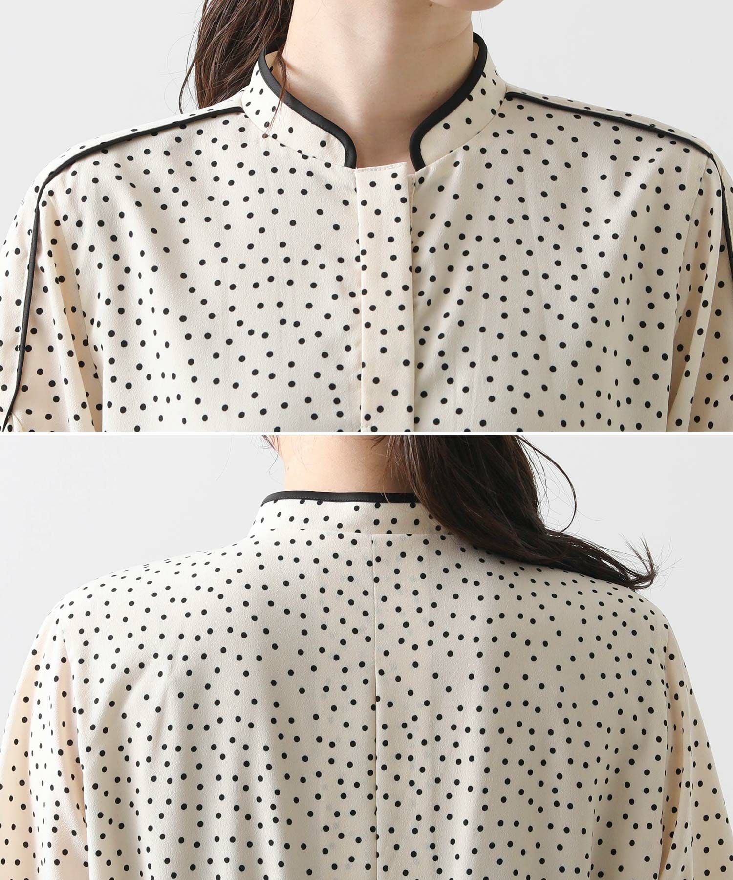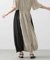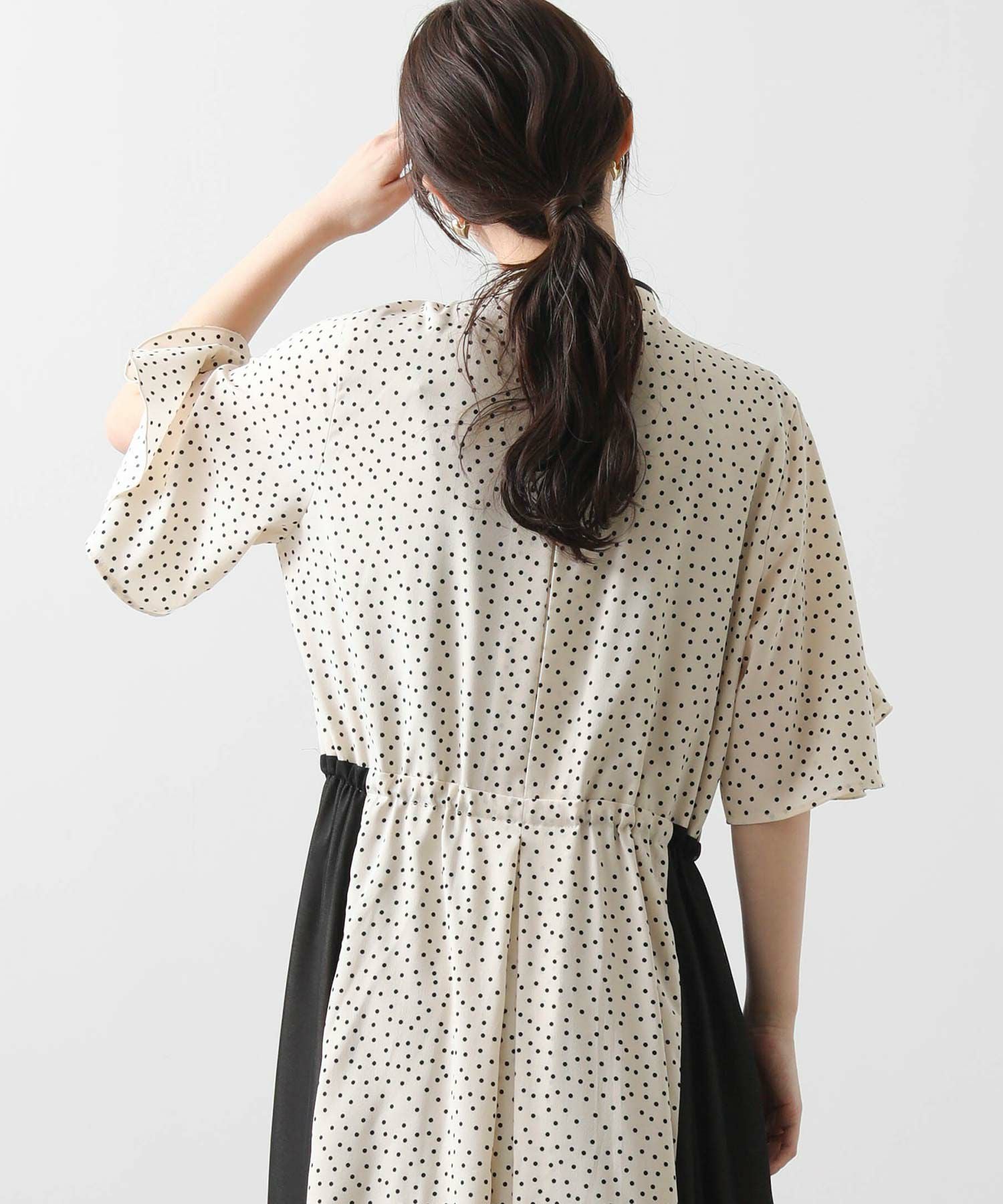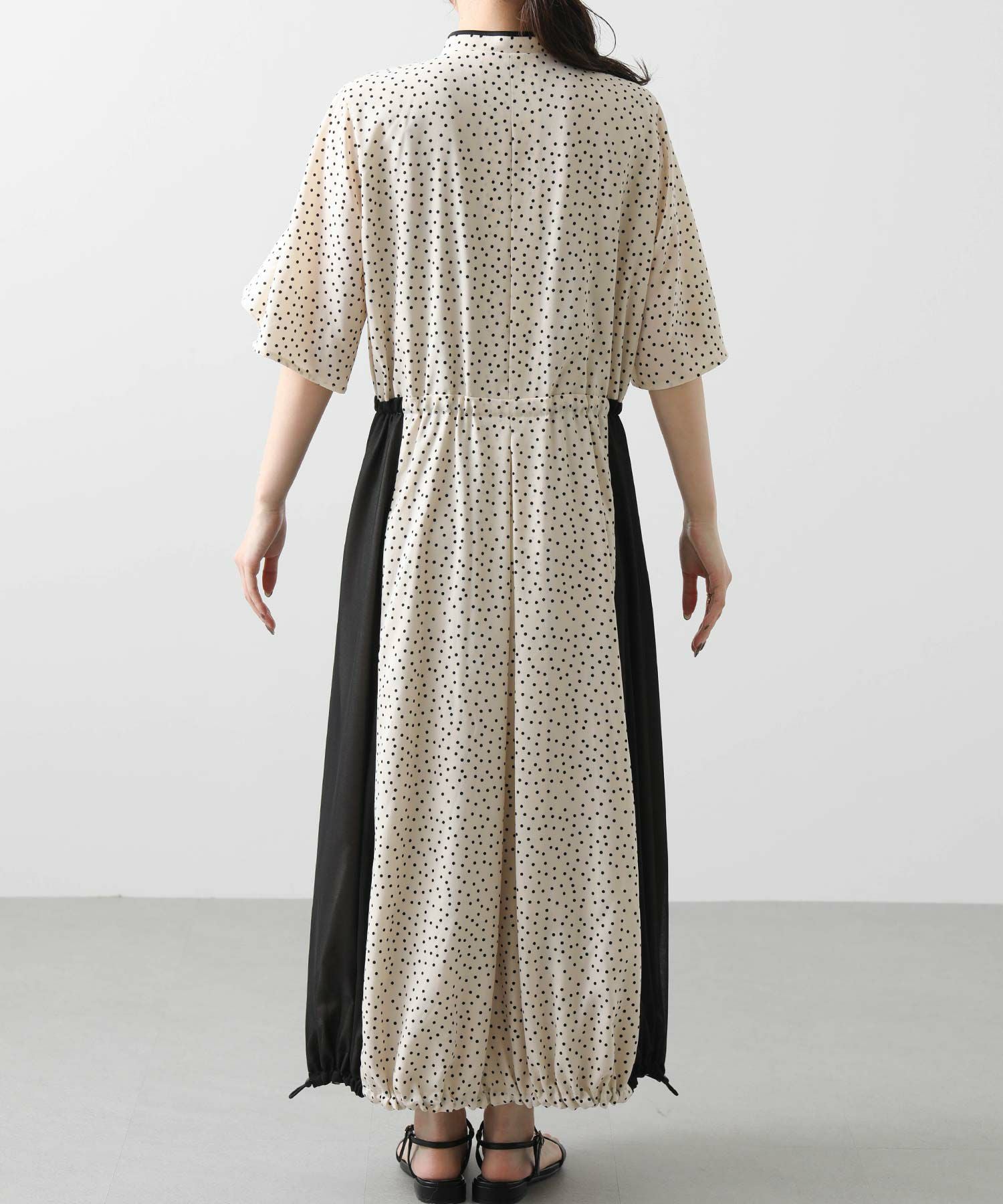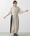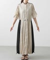 スカート部分の両脇をシフォンで切り替えることで、メリハリをつけ動きのあるデザインポイントに。前が全部開くので羽織りとしても着用可能で、長いシーズンお使いいただけます。