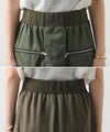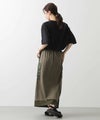 フロントにはスリットが入っており、ロング丈でも足さばきが良く、歩きやすさを確保。ブーツやスニーカーとの相性も良く、オールシーズン活躍する一着です。ウエストはゴム仕様で快適な着用感、ウエスト内側にはコードを通し、若干のサイズ調整が可能です。