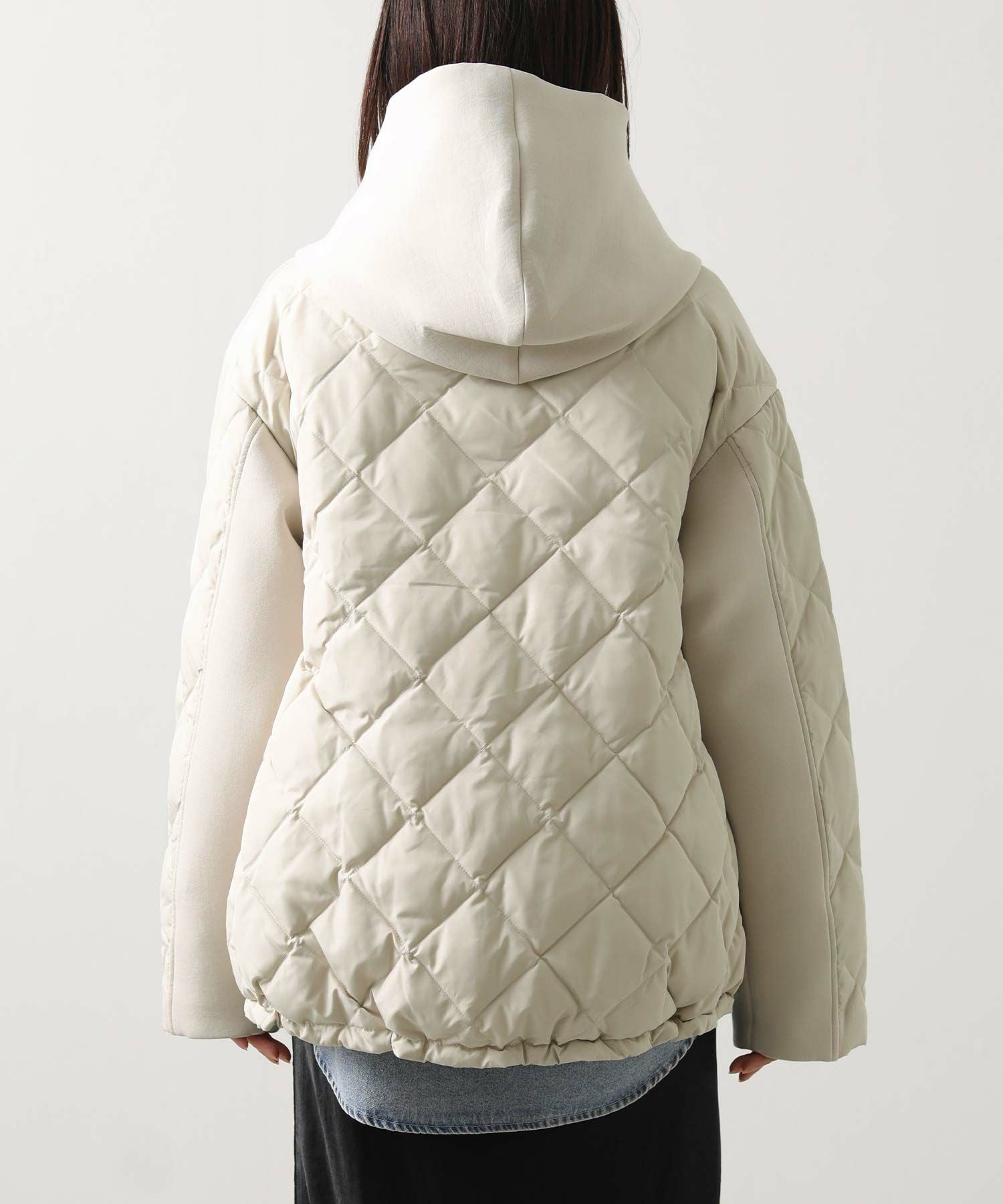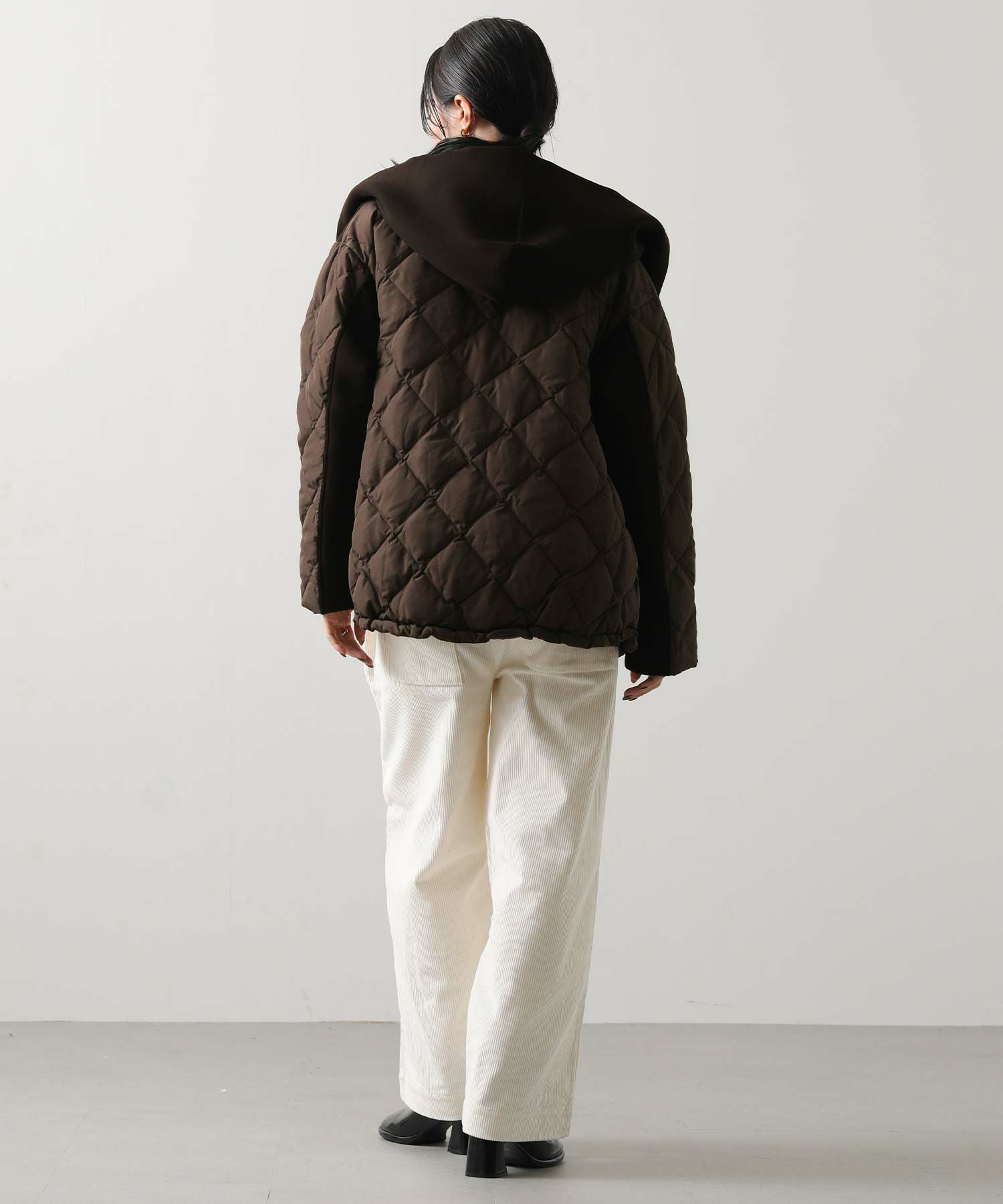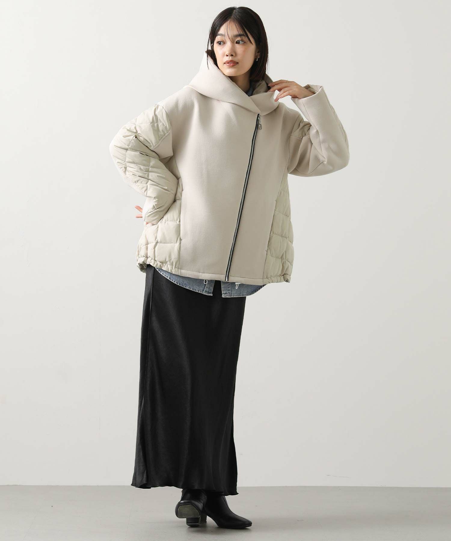 大きめのフード衿は内側がダウン、外側がダンボールニット素材と絶妙なボリューム感。