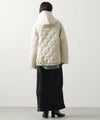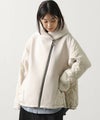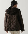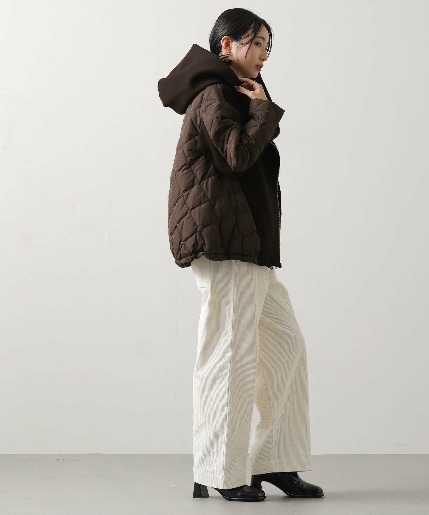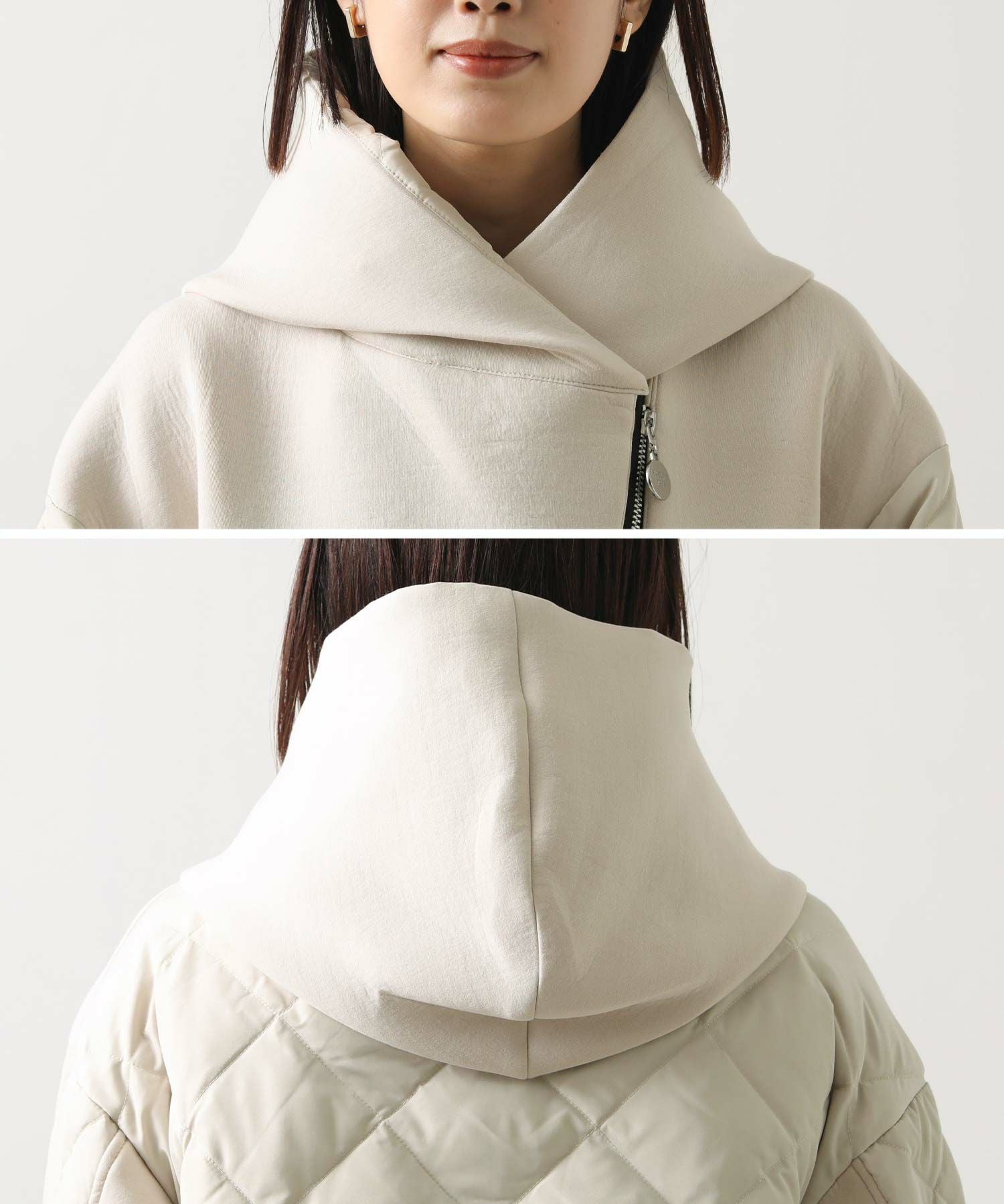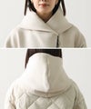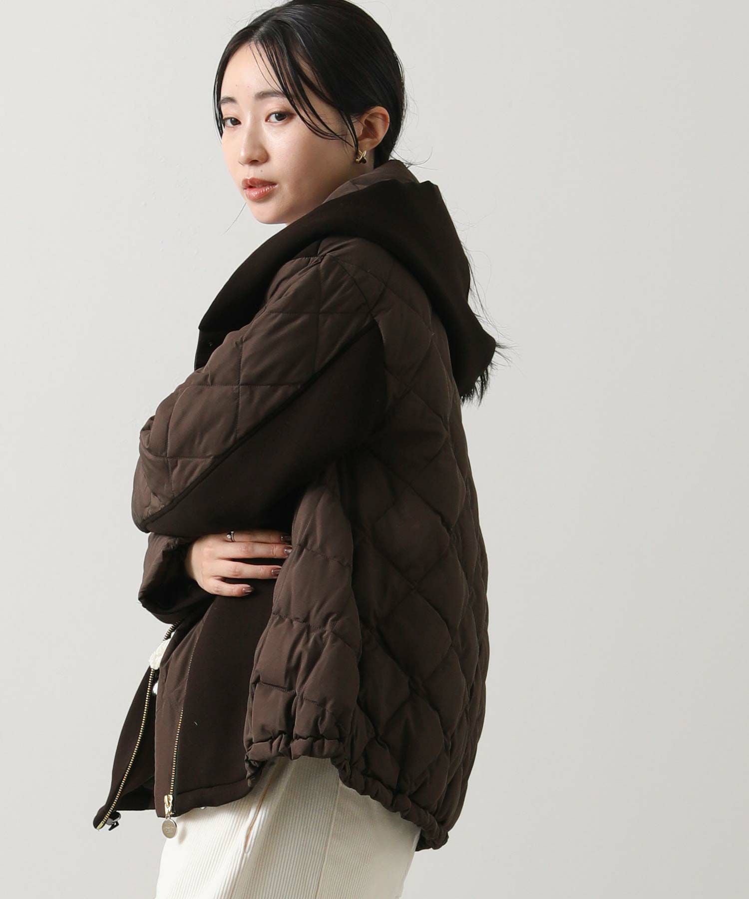 大きめのフード衿は内側がダウン、外側がダンボールニット素材と絶妙なボリューム感。