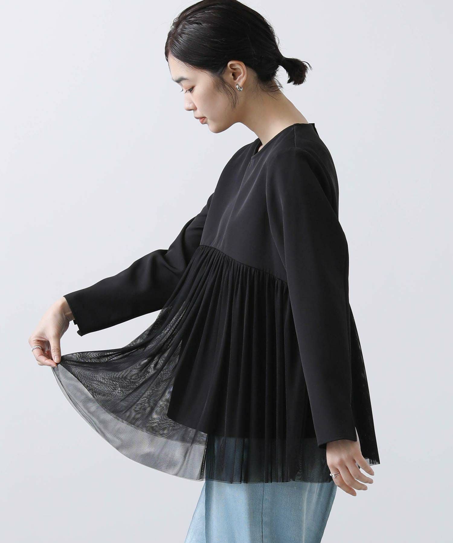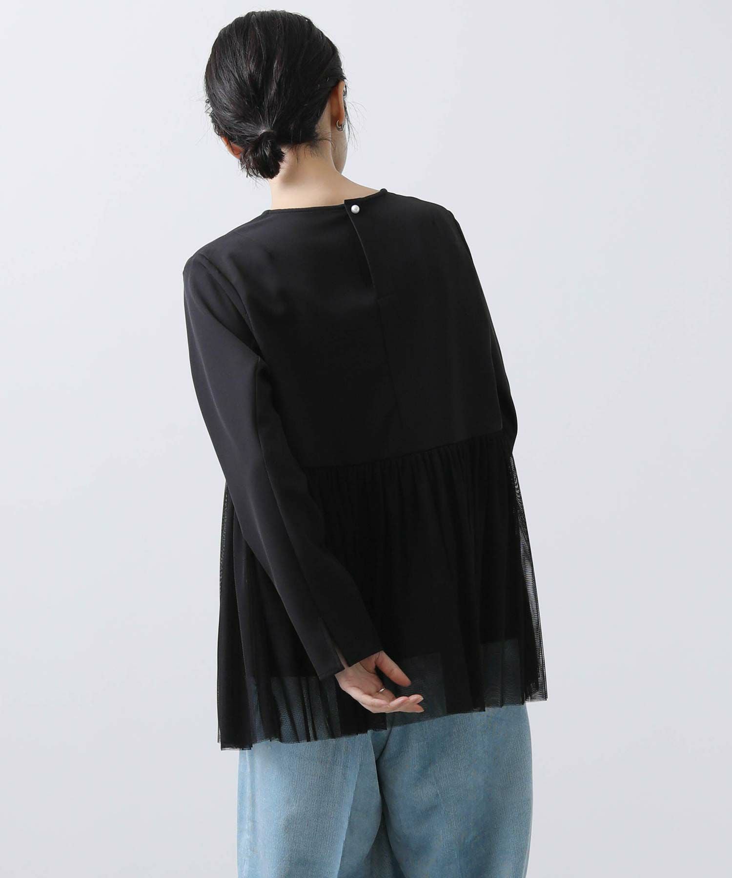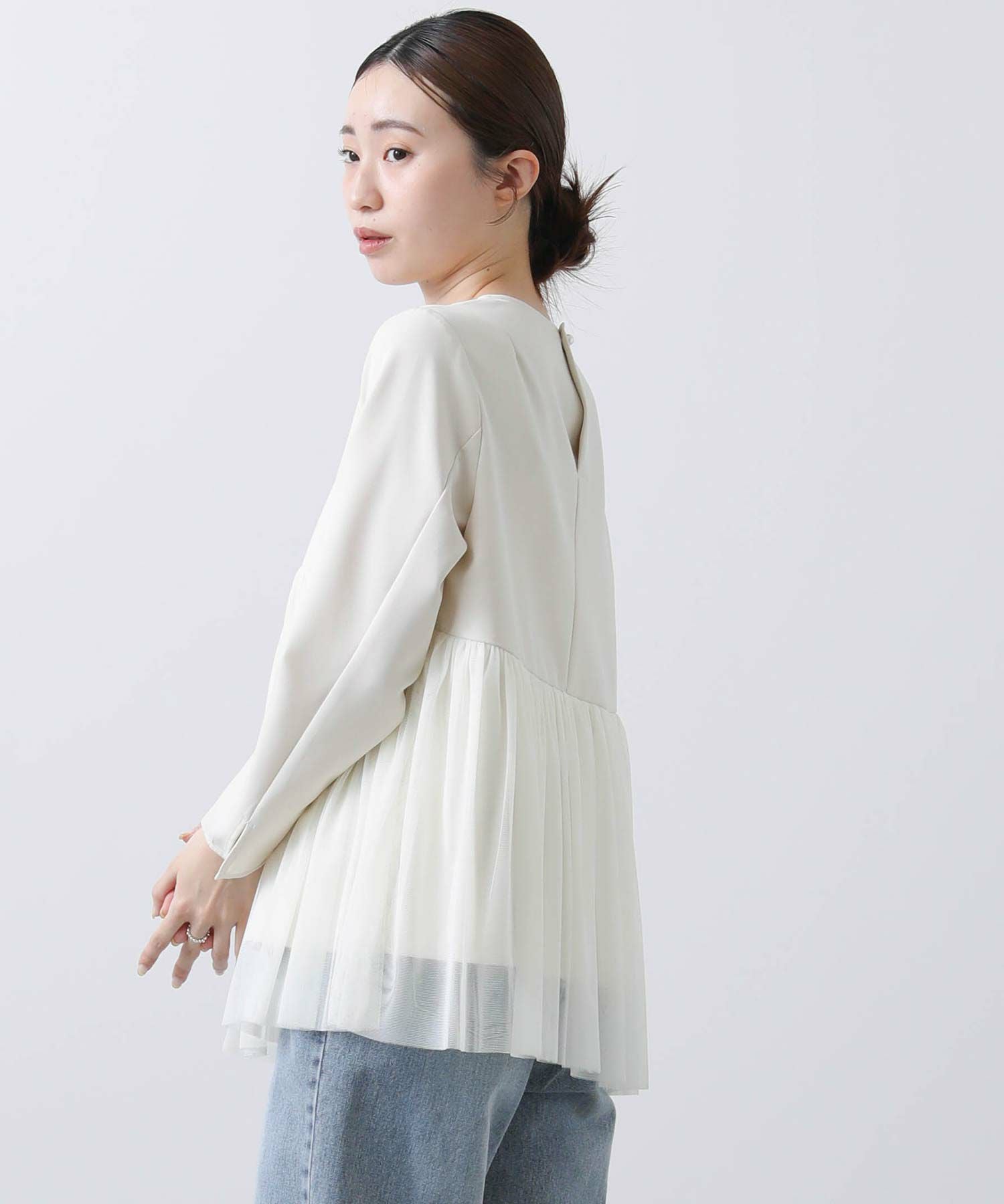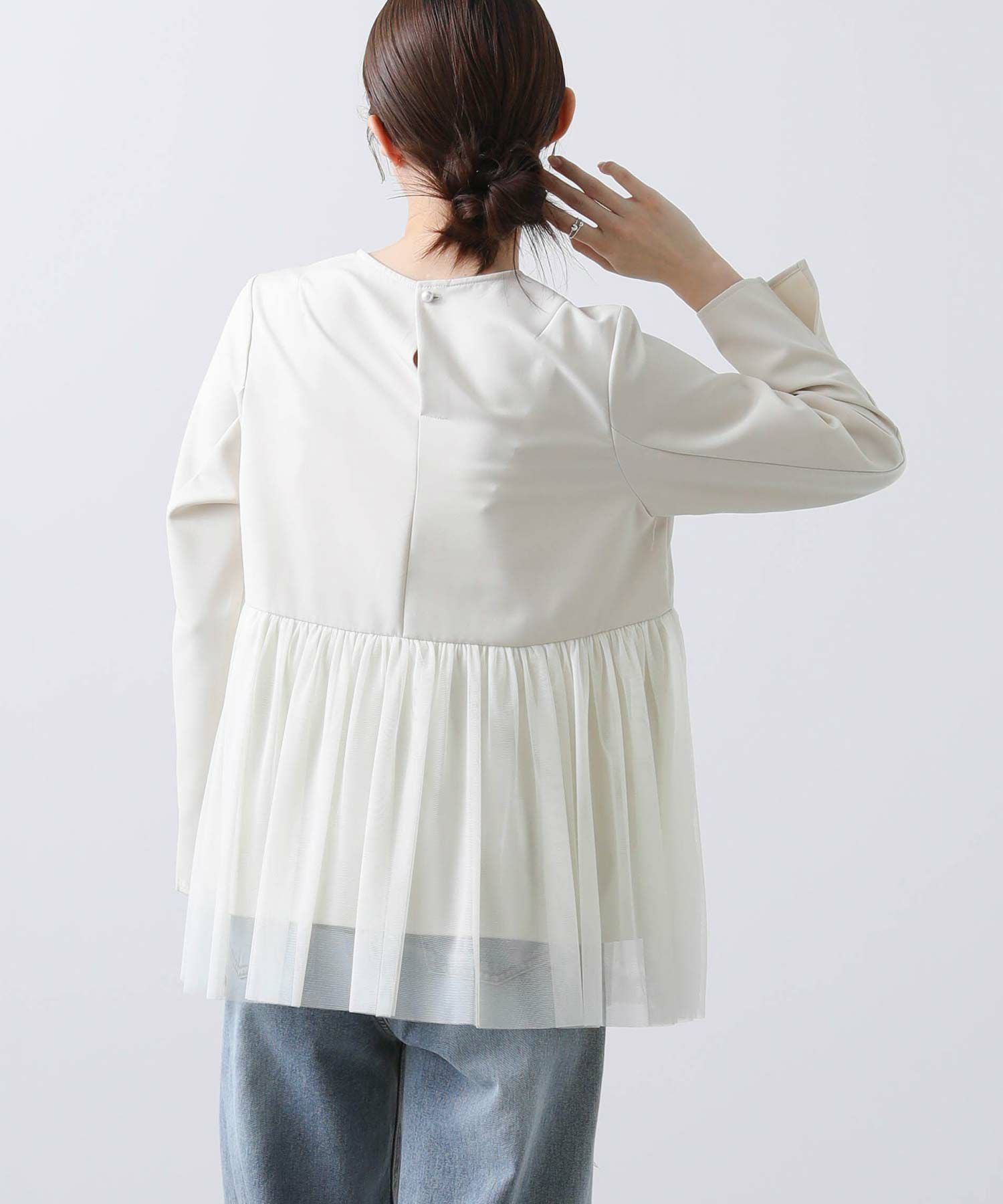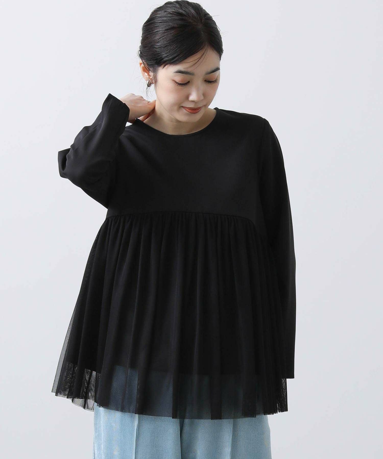 一枚で決まるチュール素材をドッキングしたペプラムプルオーバー。