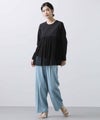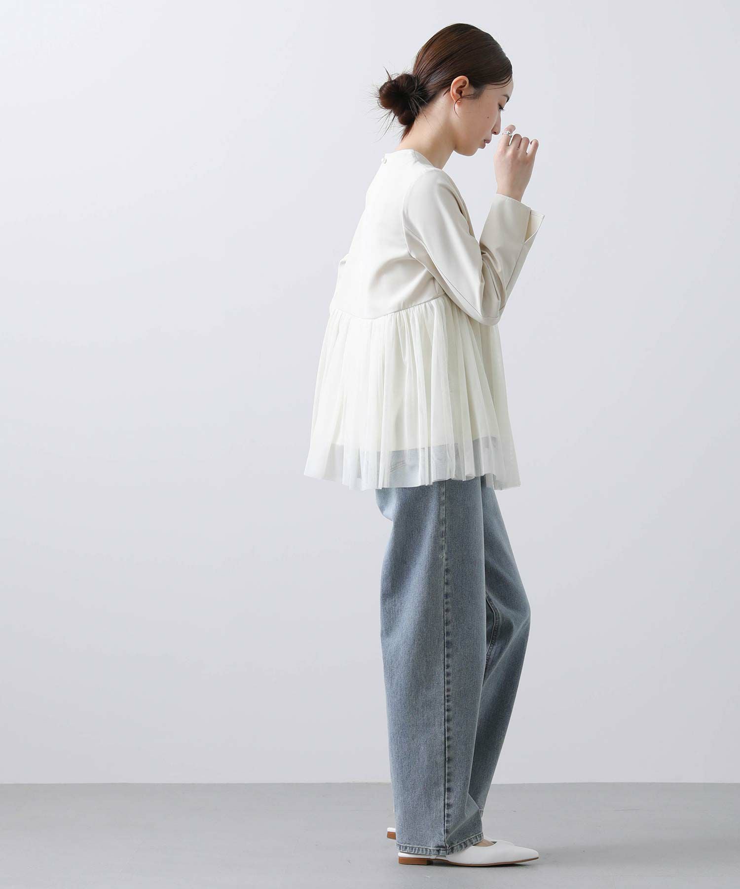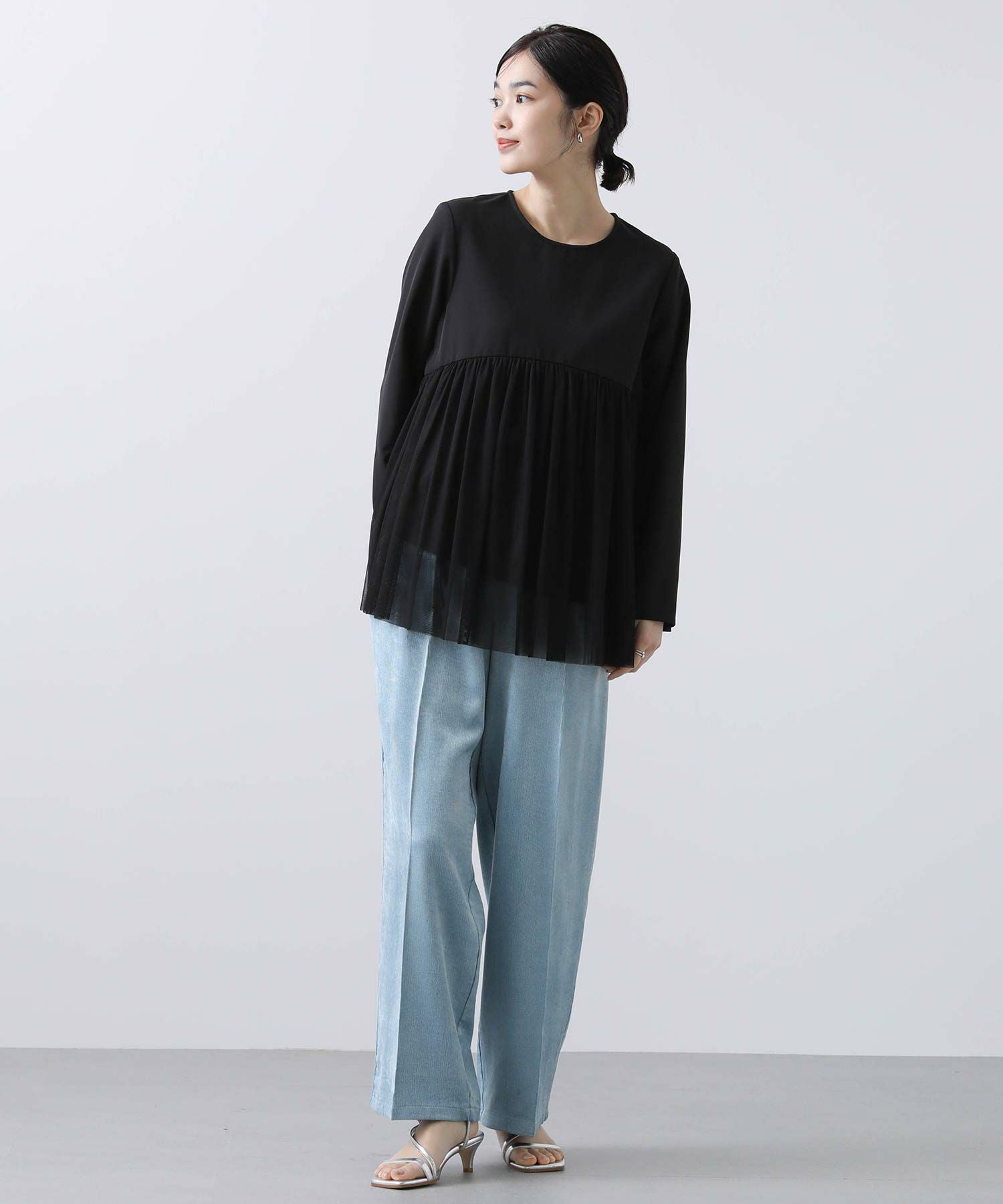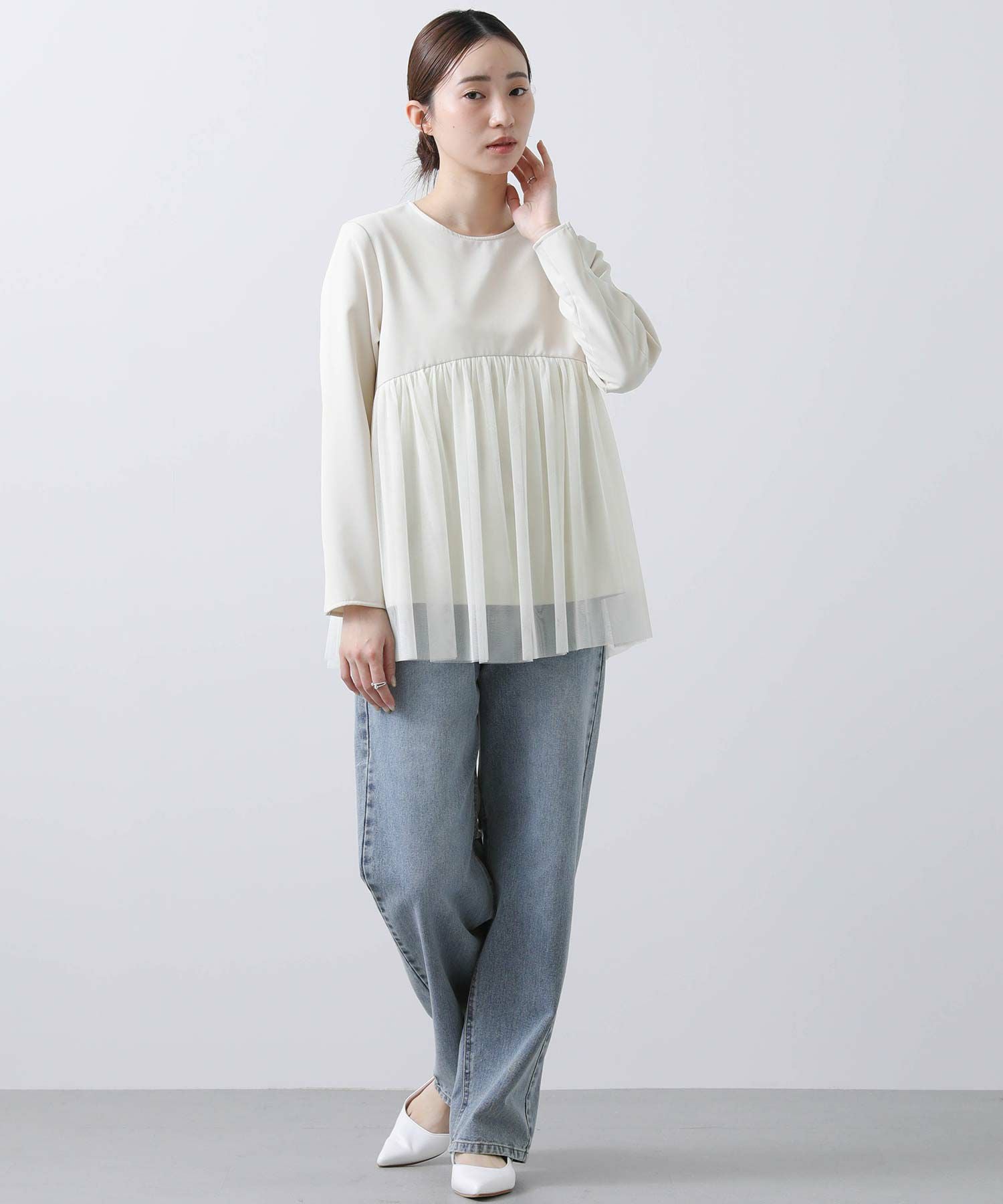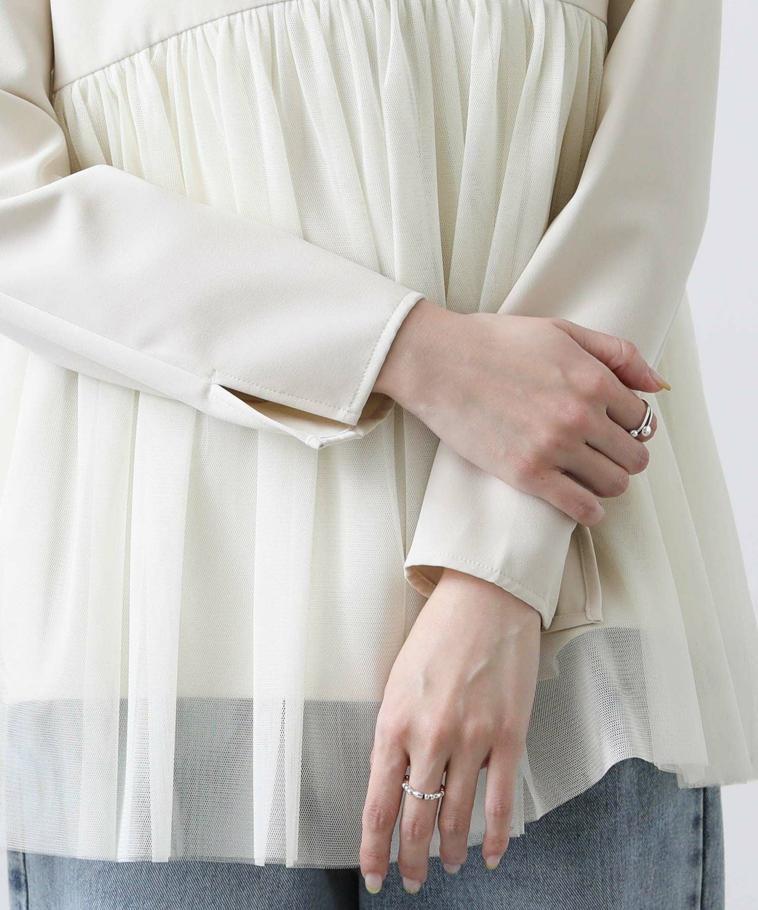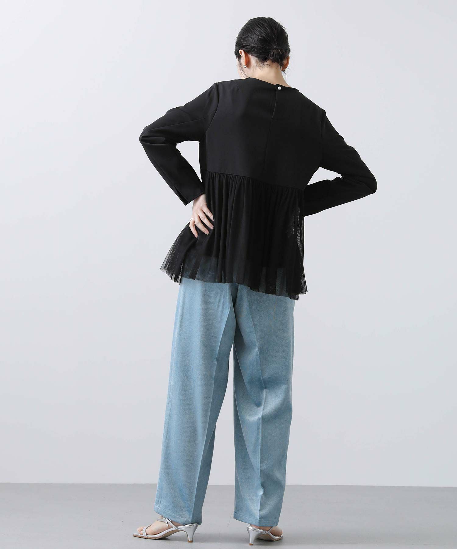 一枚で決まるチュール素材をドッキングしたペプラムプルオーバー。
