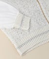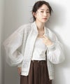 さりげなく光る肩のラメ糸のラインも遊び心のあるアクセントに。甘さを持つ袖とチュールのディテールが、ジップのシャープさと相まって特別感を際立たせ、羽織るだけで気品漂う存在に。