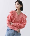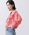【MARGAUX/マルゴー】から、シャンブレーのフリルコンビブラウスをセレクト。