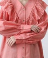 袖はパフスリーブで女性らしく、ゴールドボタンも程よいアクセントに。