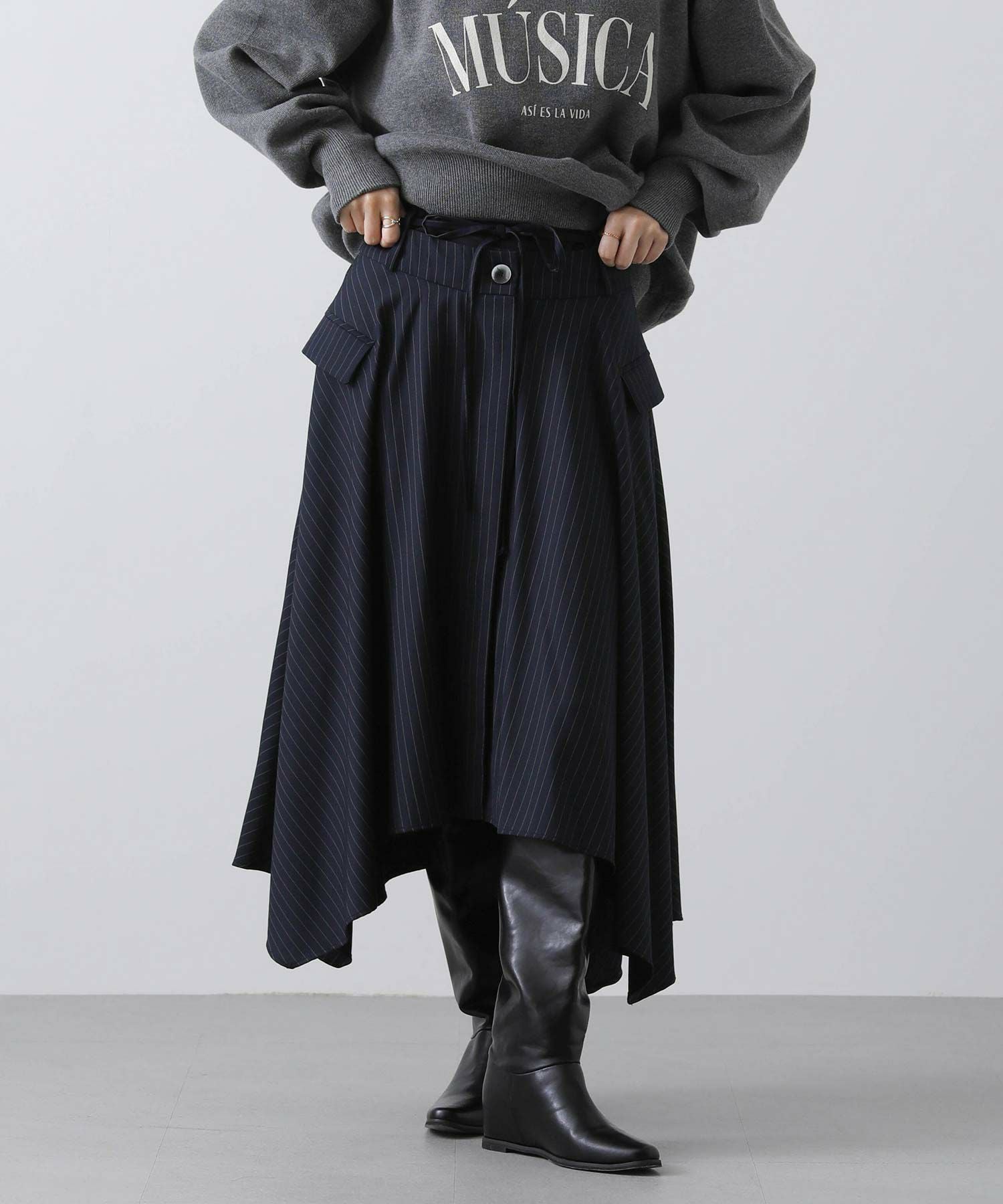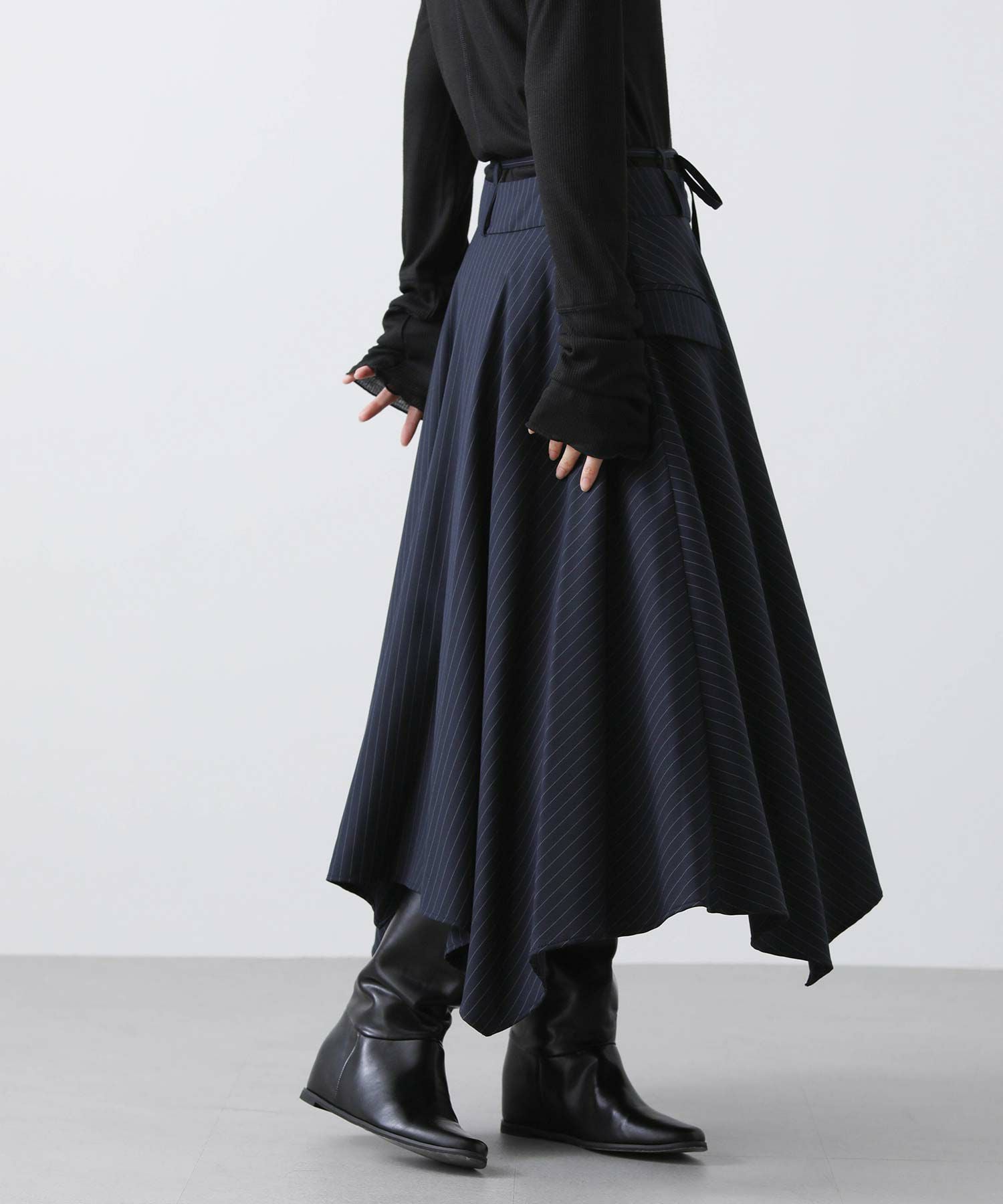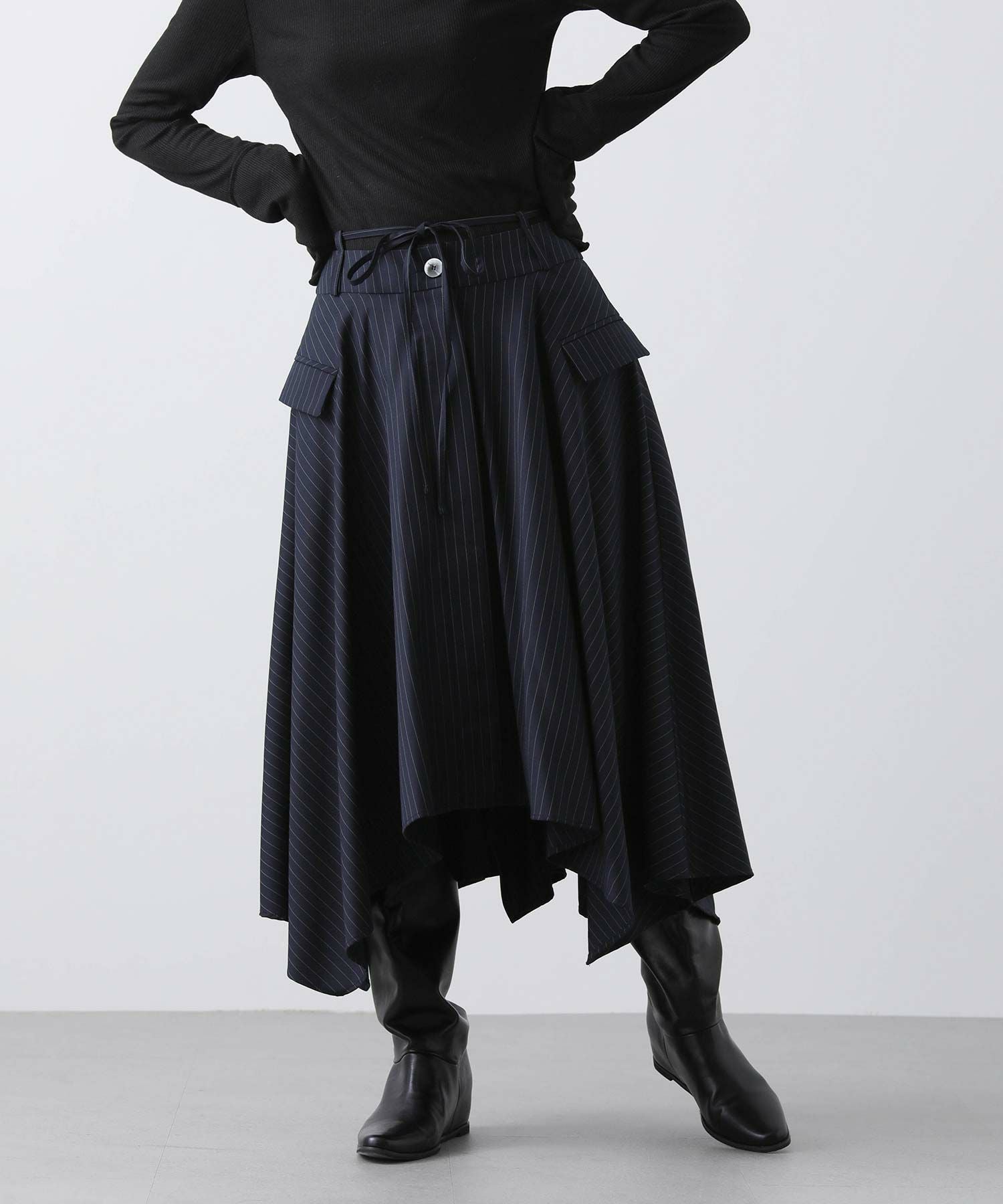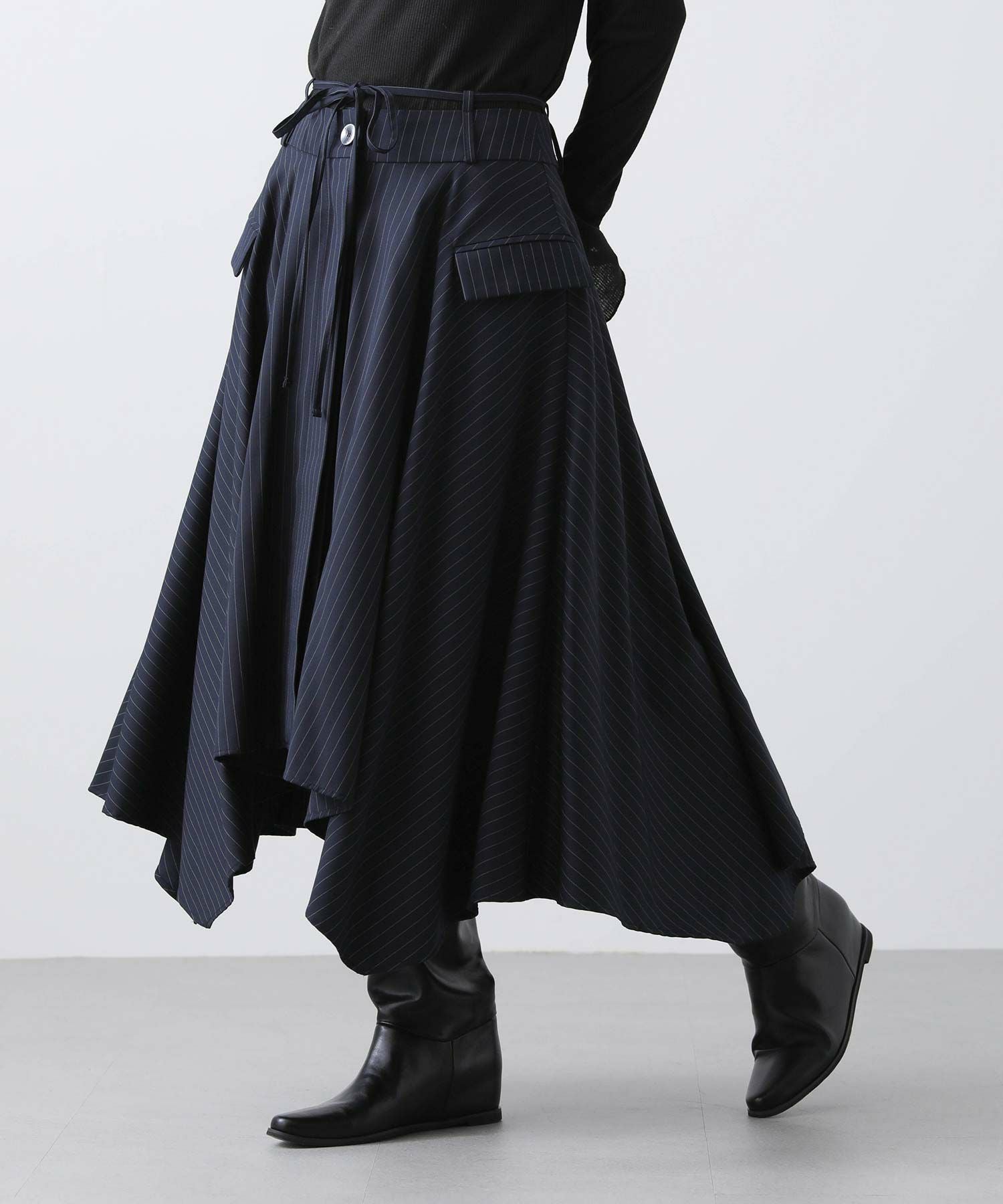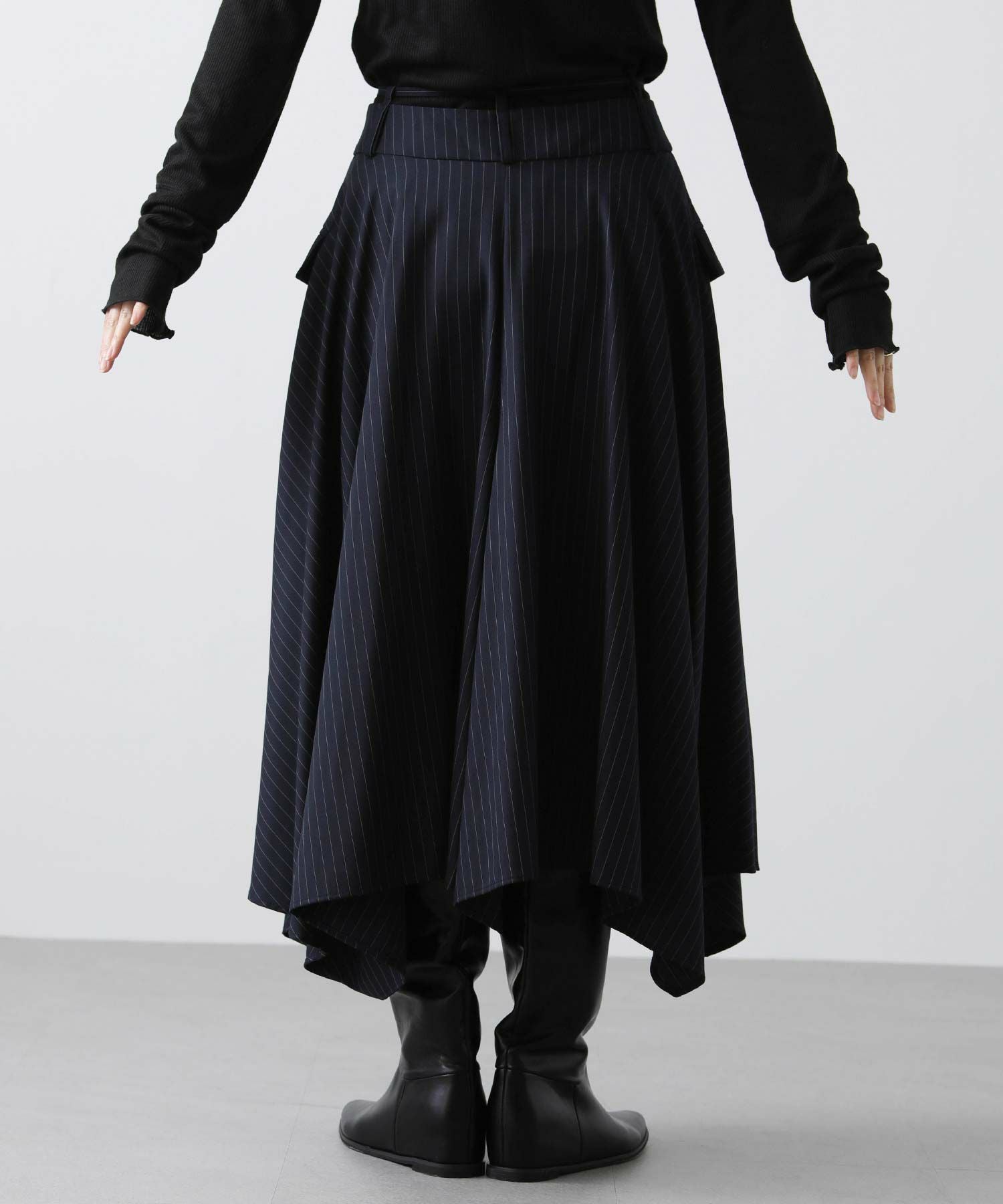 ピンストライプアシメフレアスカート
