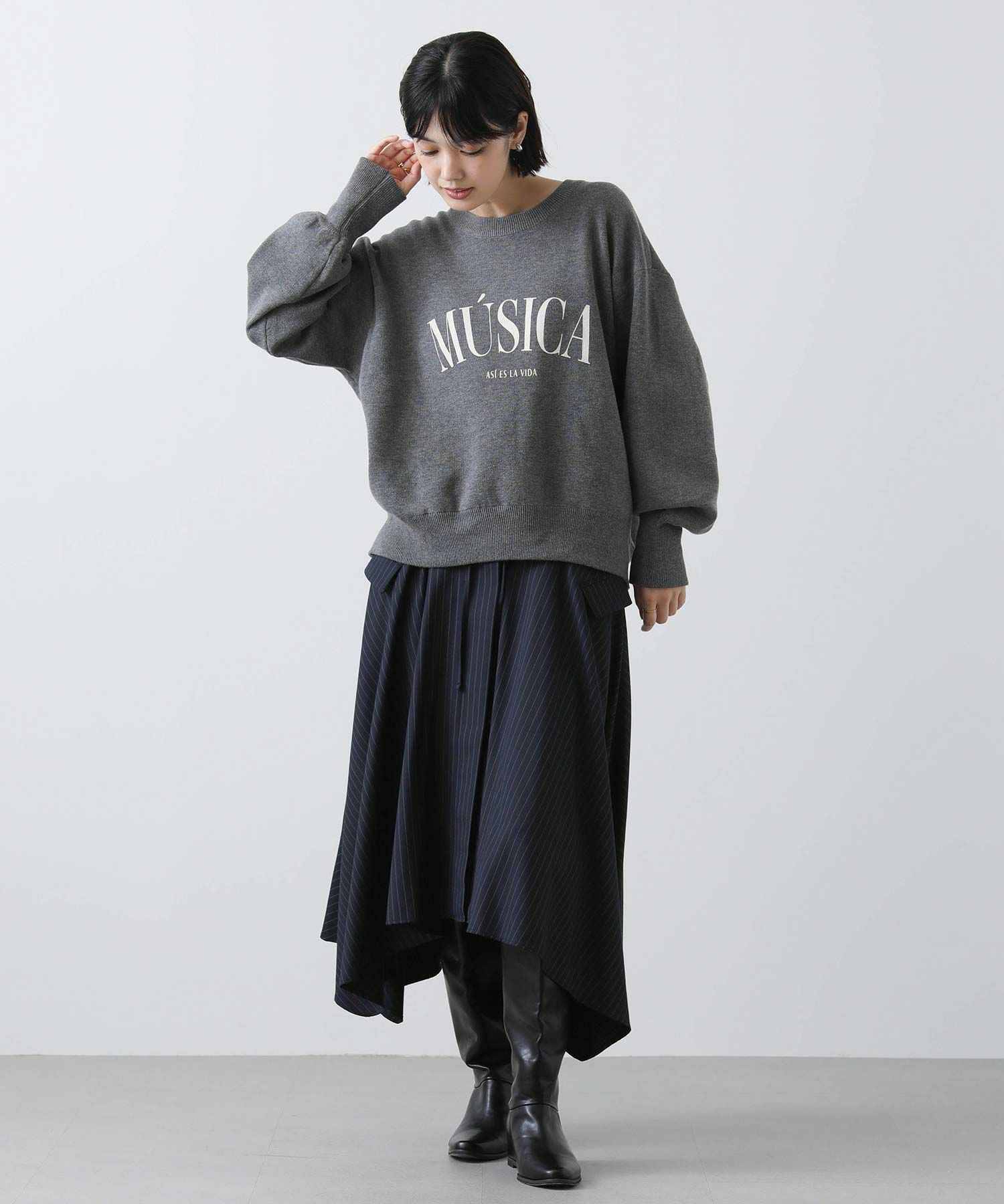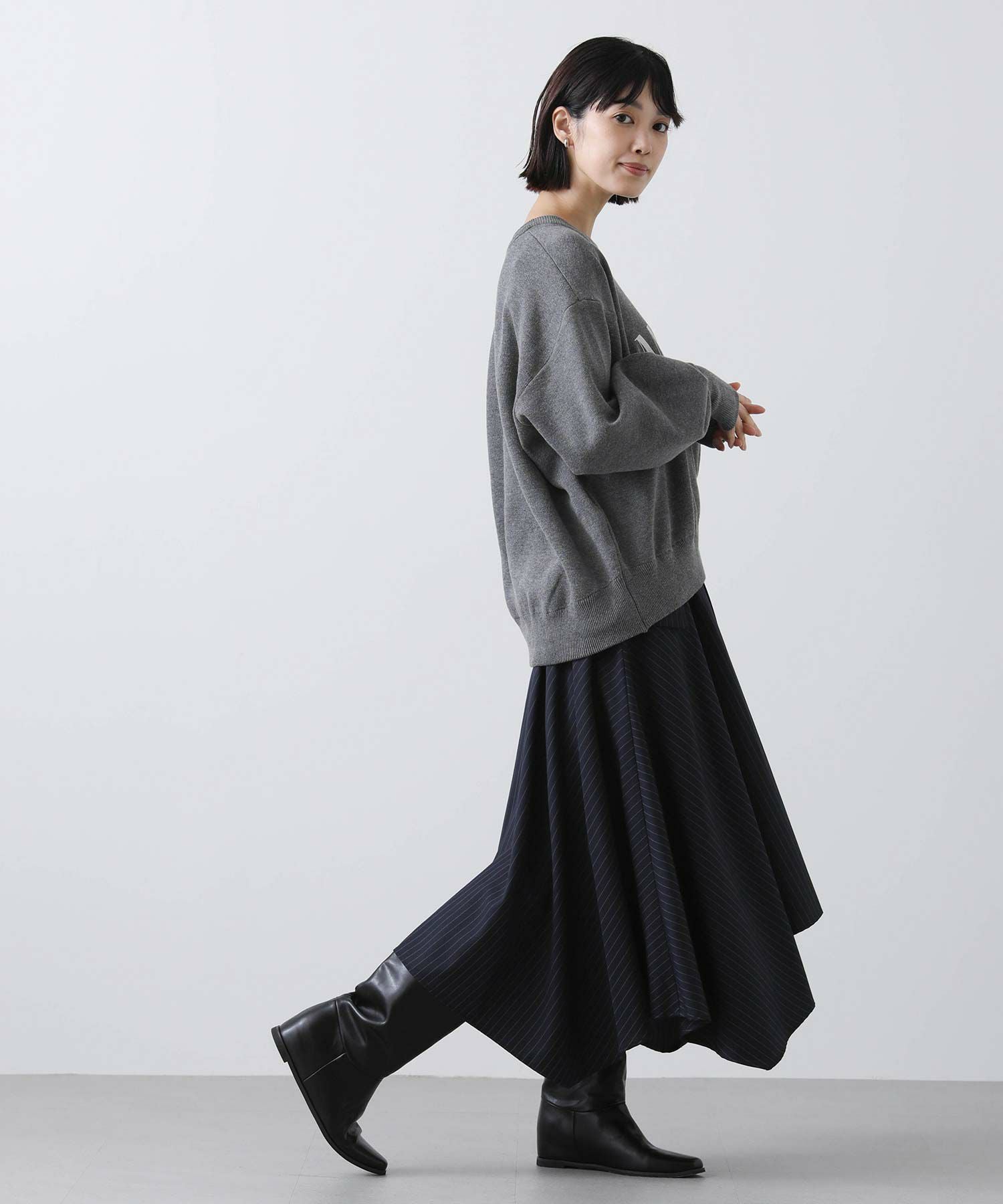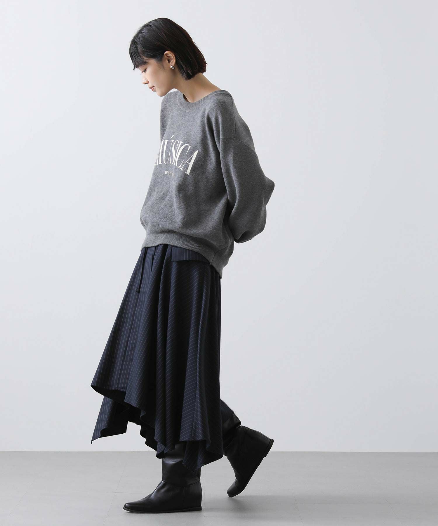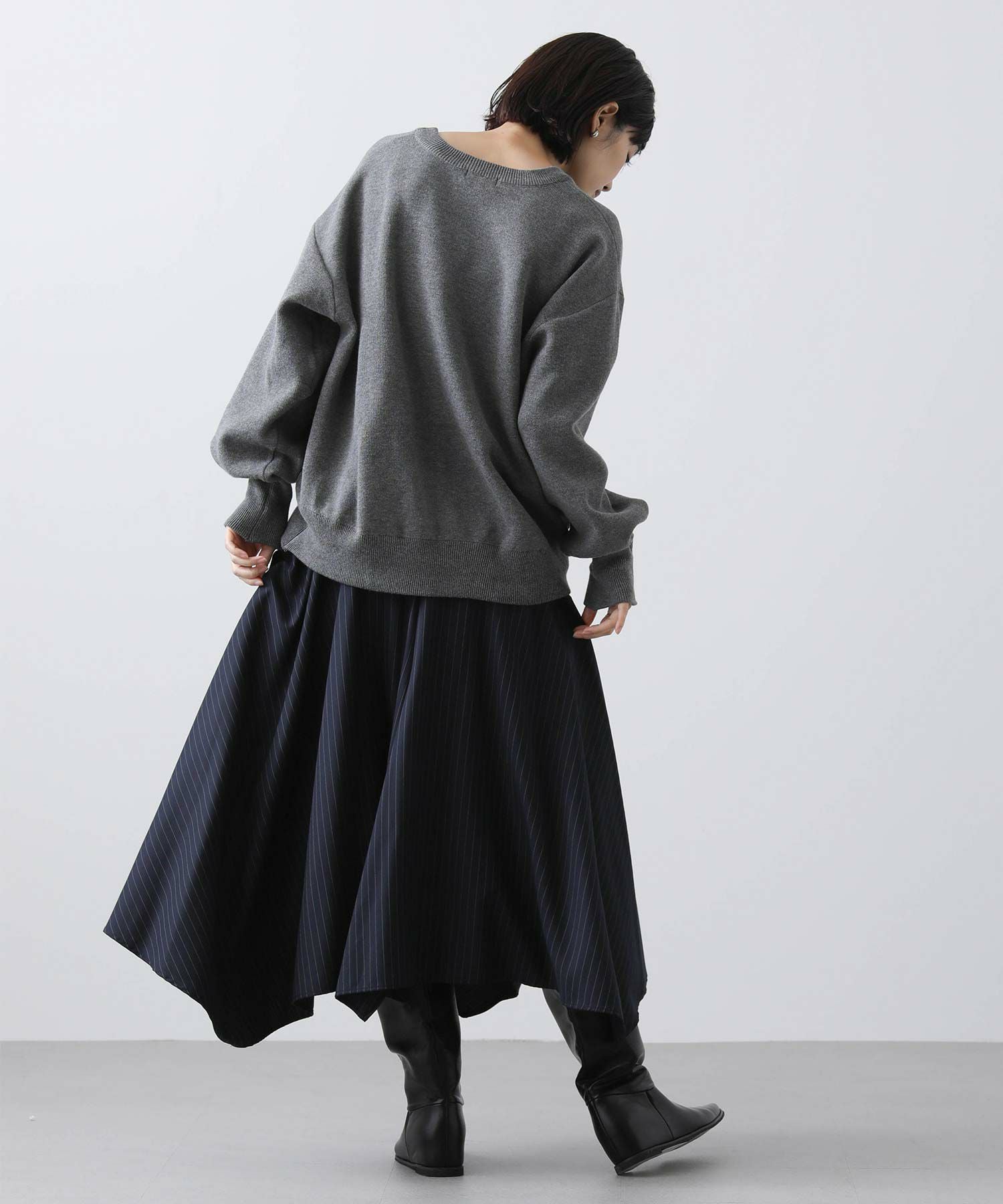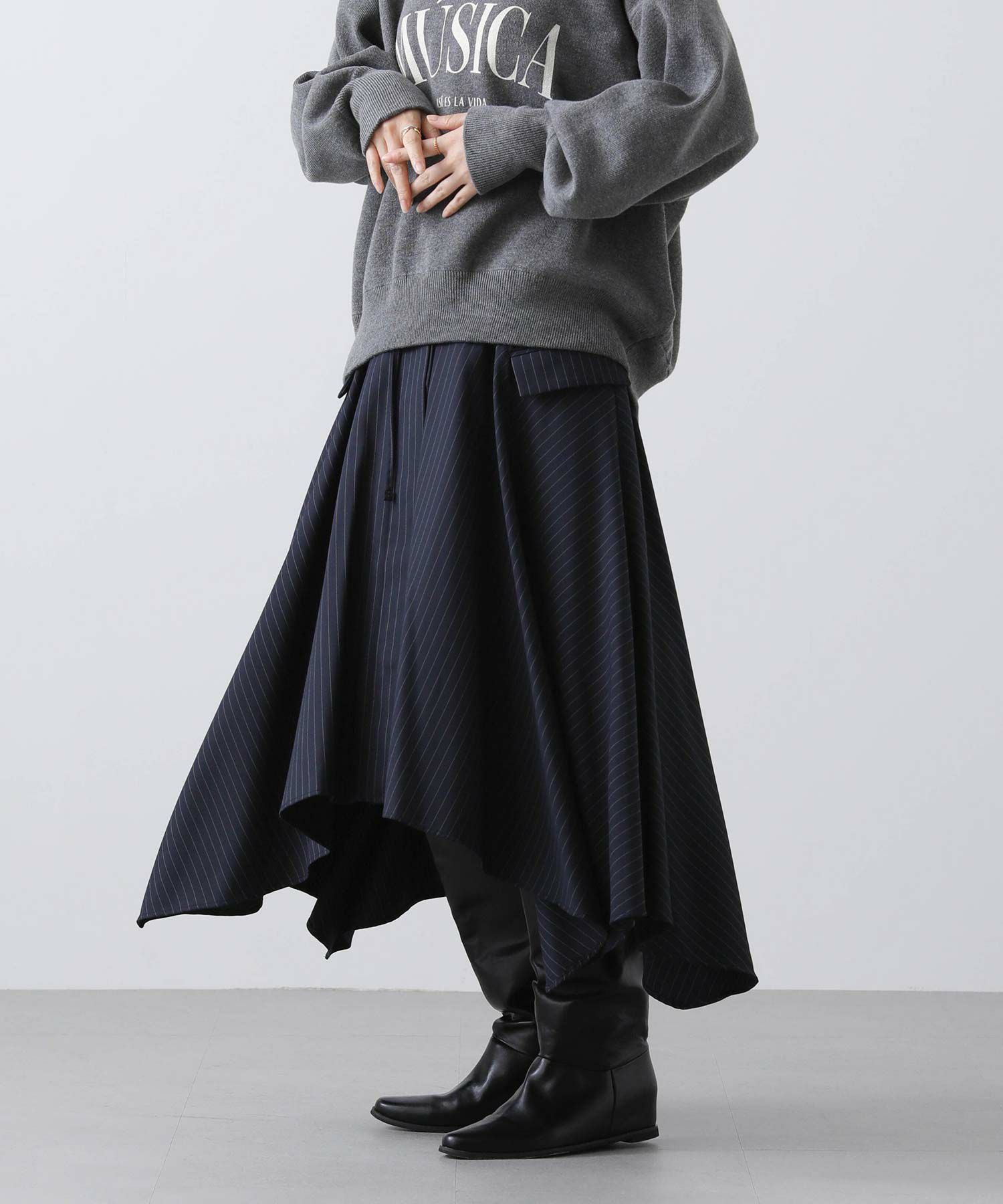 ピンストライプアシメフレアスカート