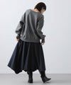 贅沢にとった分量のあるフレアラインと、脇から後ろにかけてヘムが長くなるので、脚をキレイに魅せてくれるシルエット。