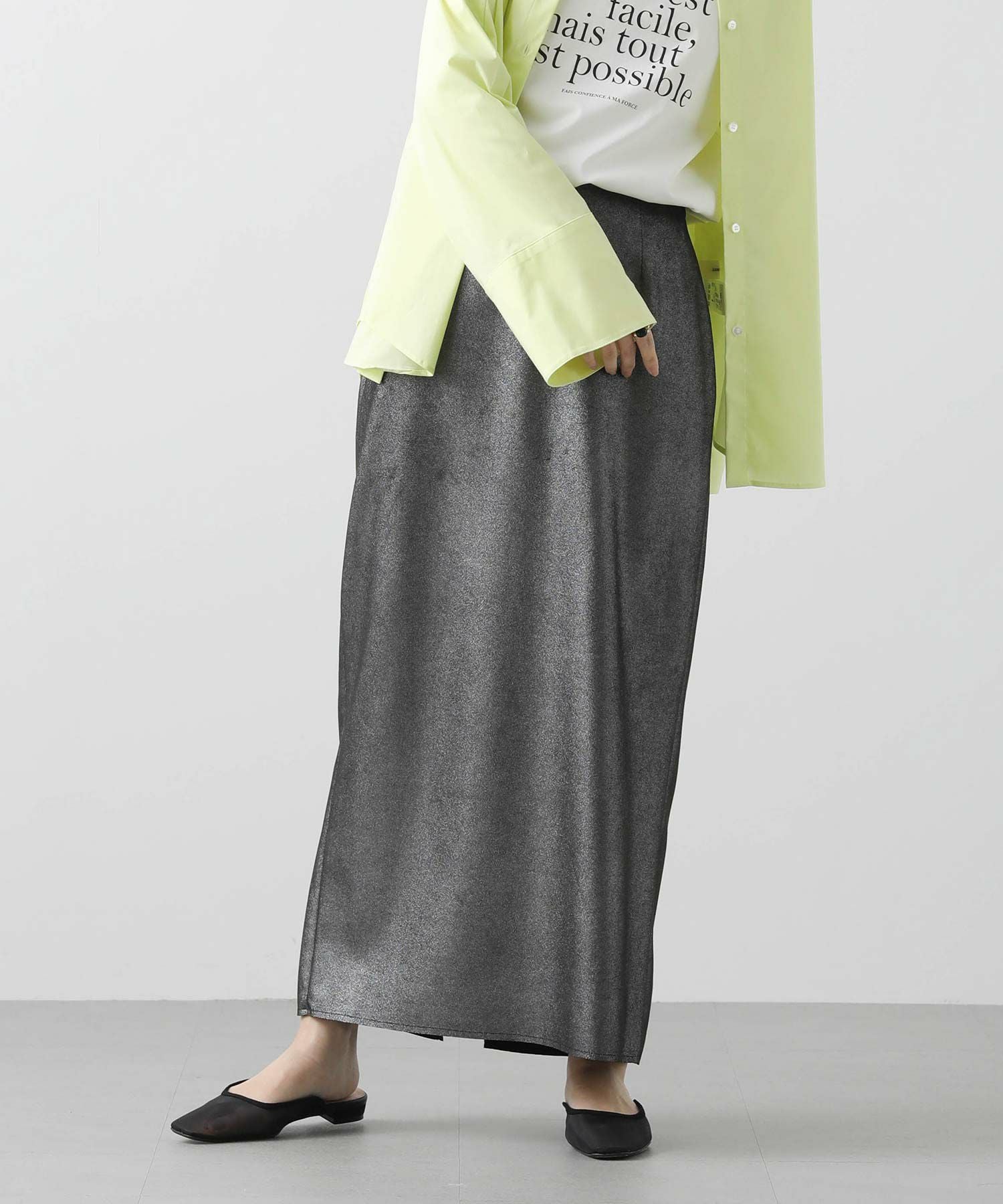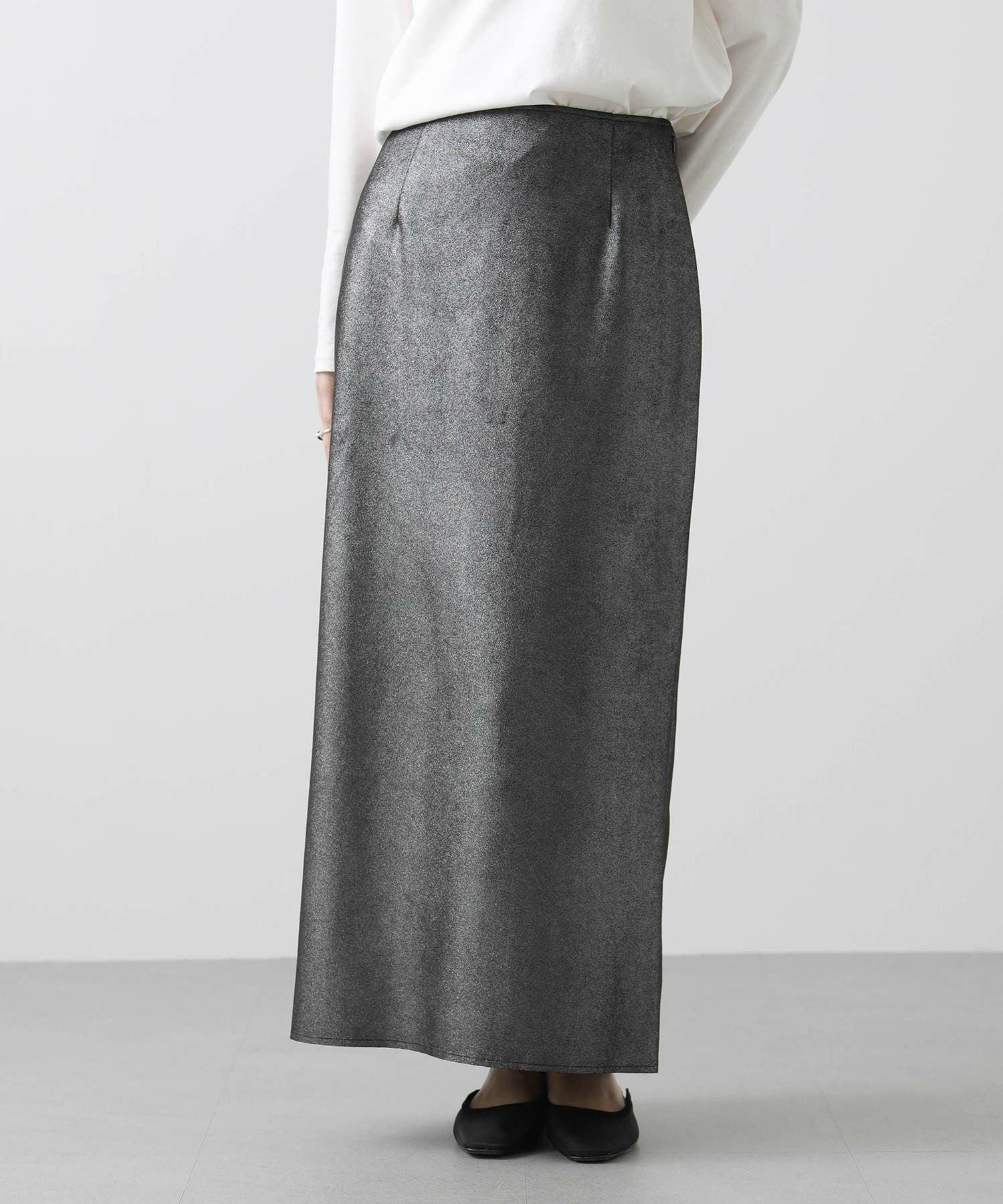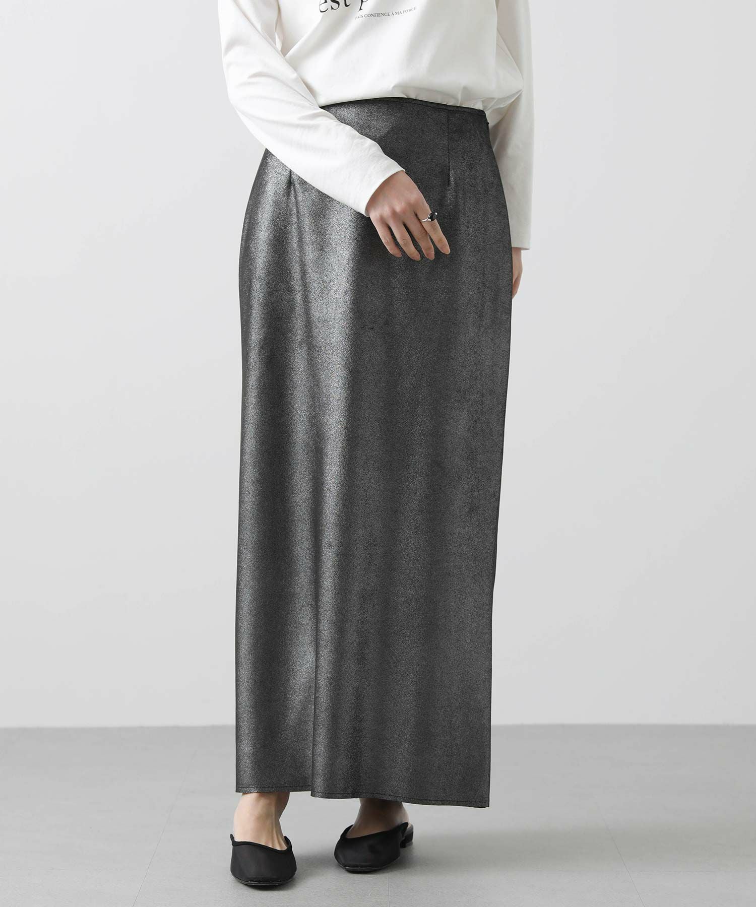 メタリック感あるきらめきがオシャレ度をアップするタイトスカート。