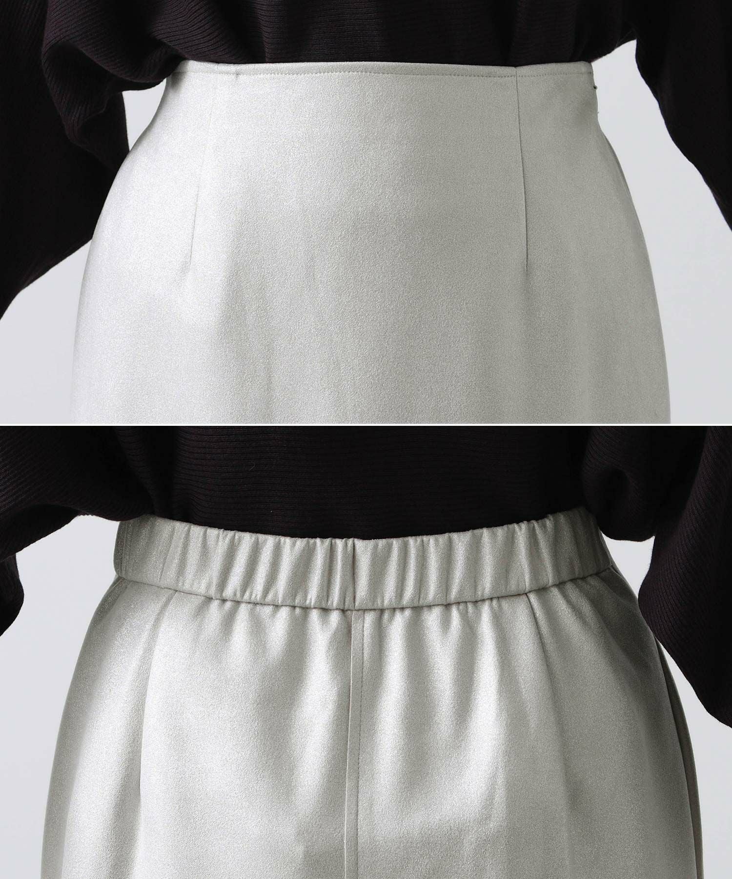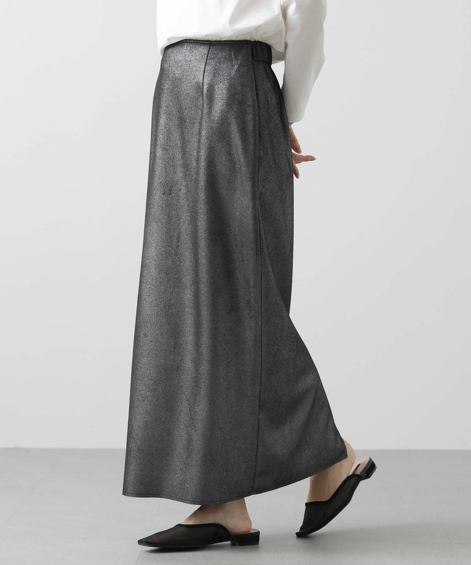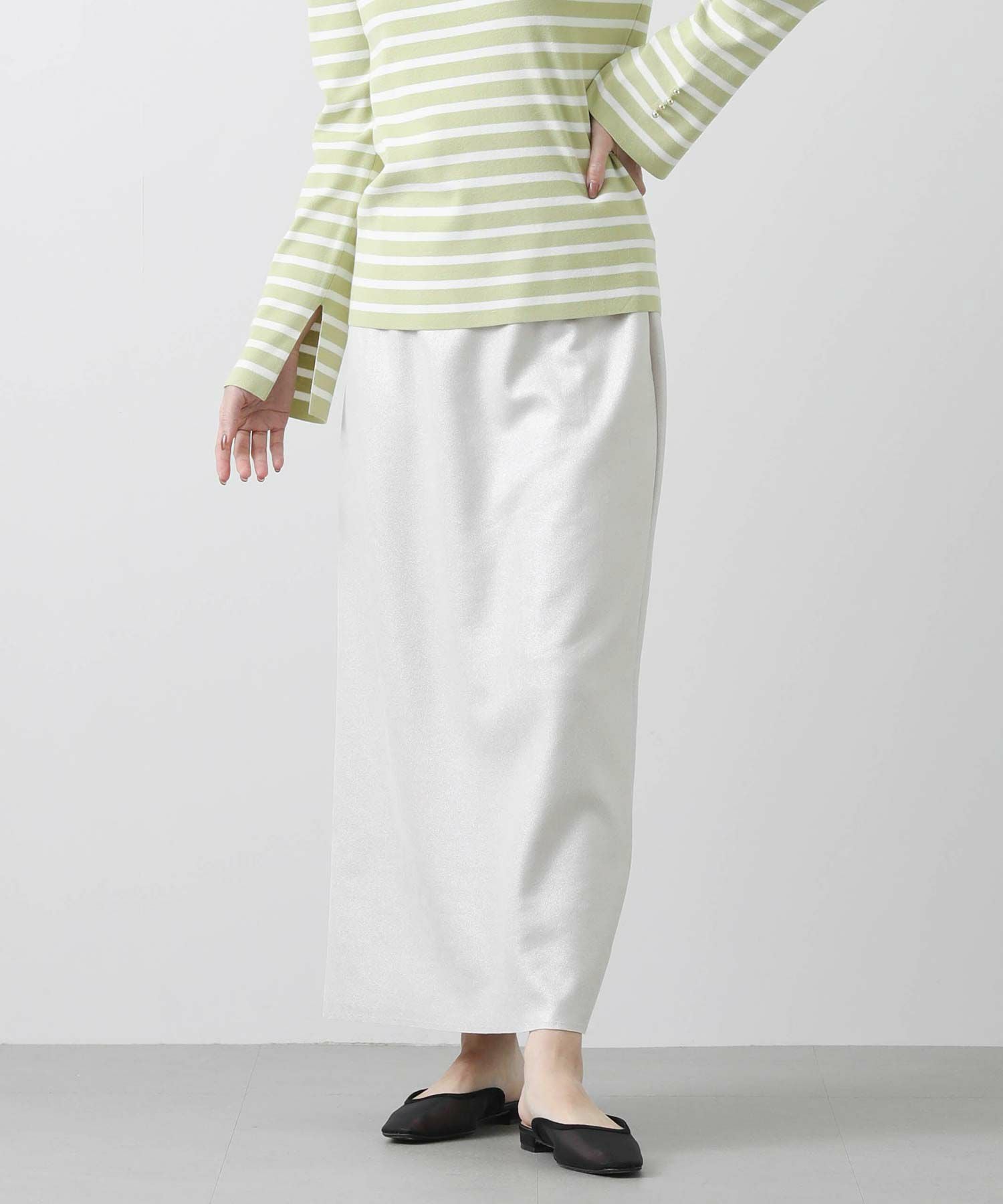 メタリック感あるきらめきがオシャレ度をアップするタイトスカート。