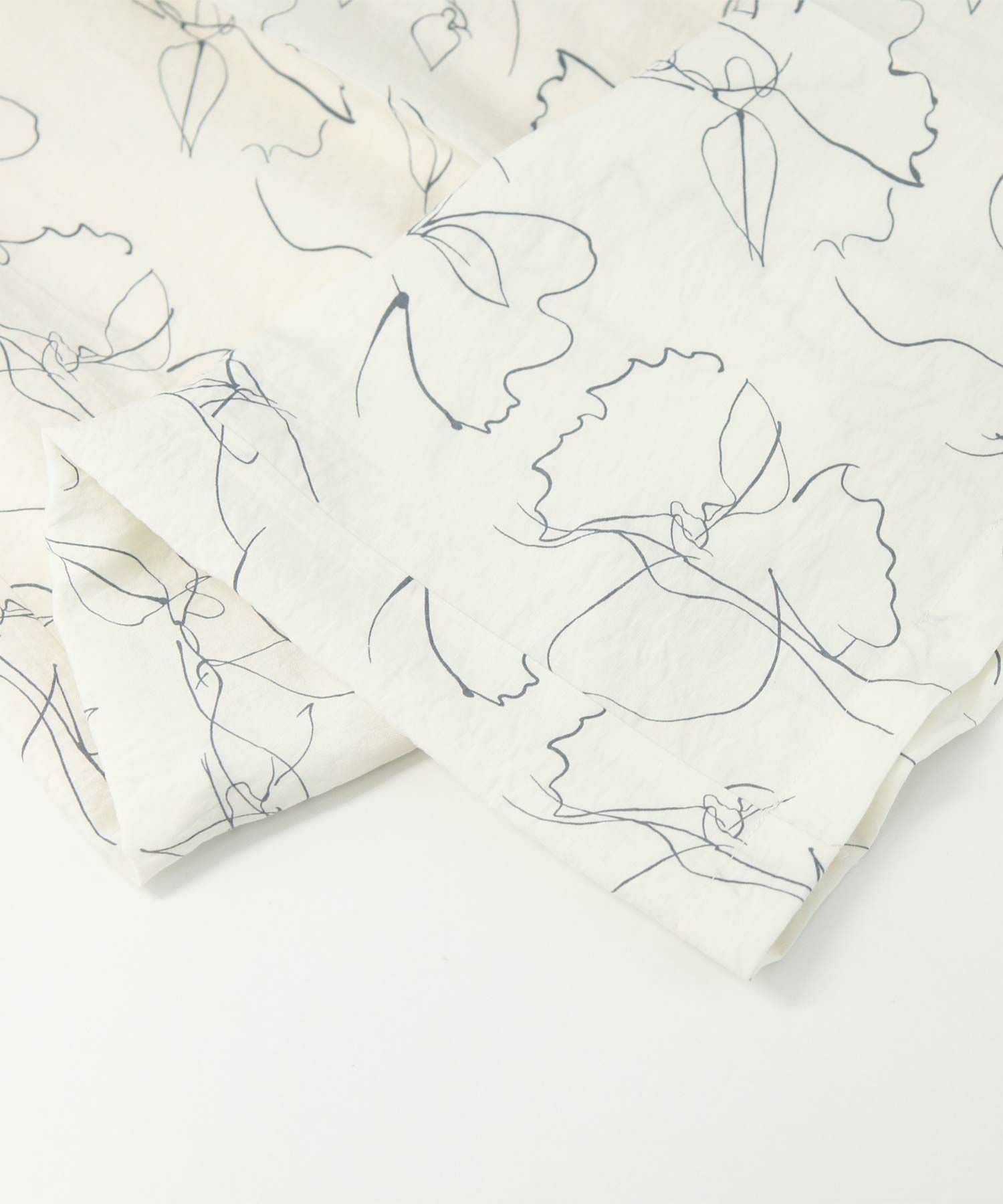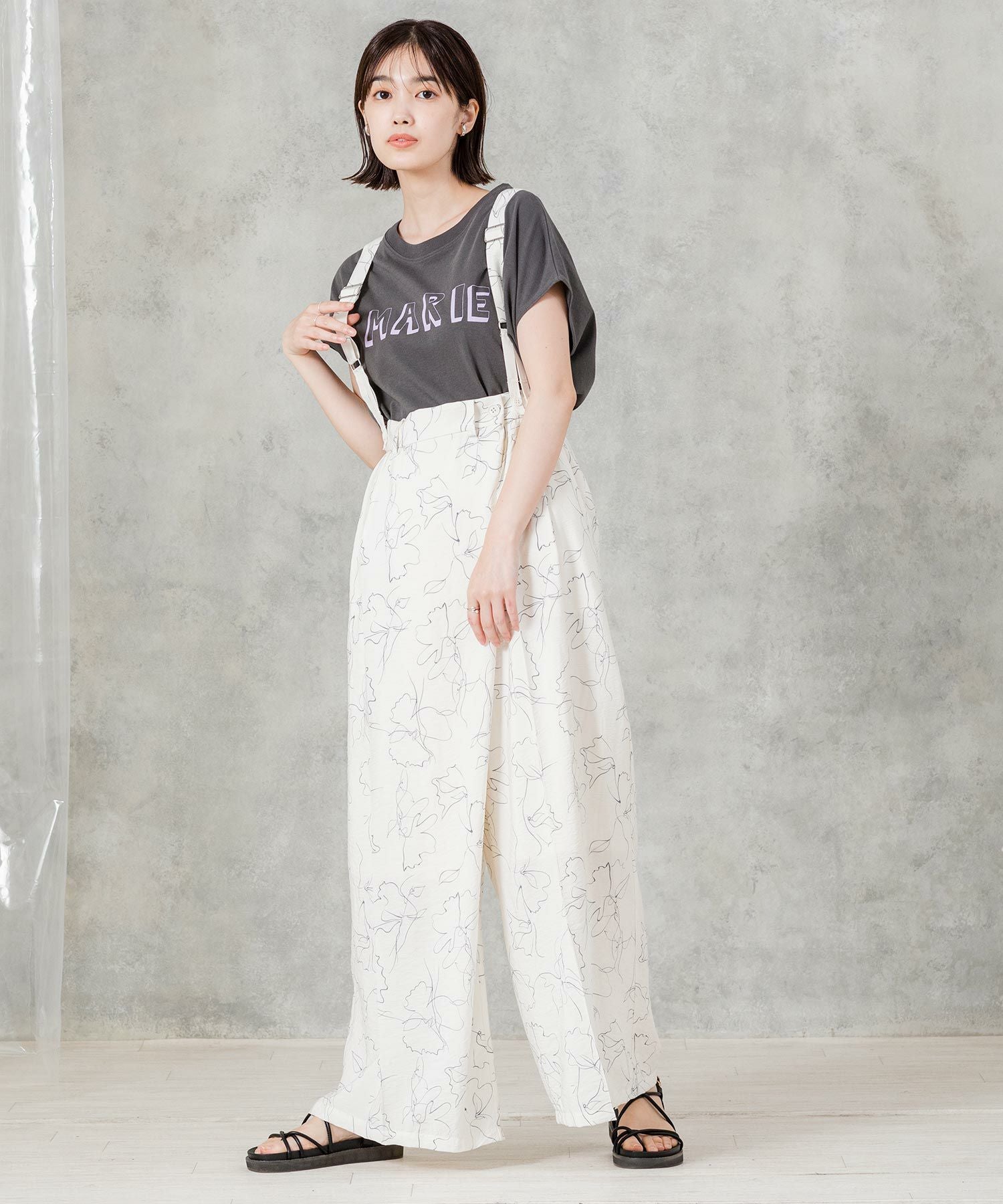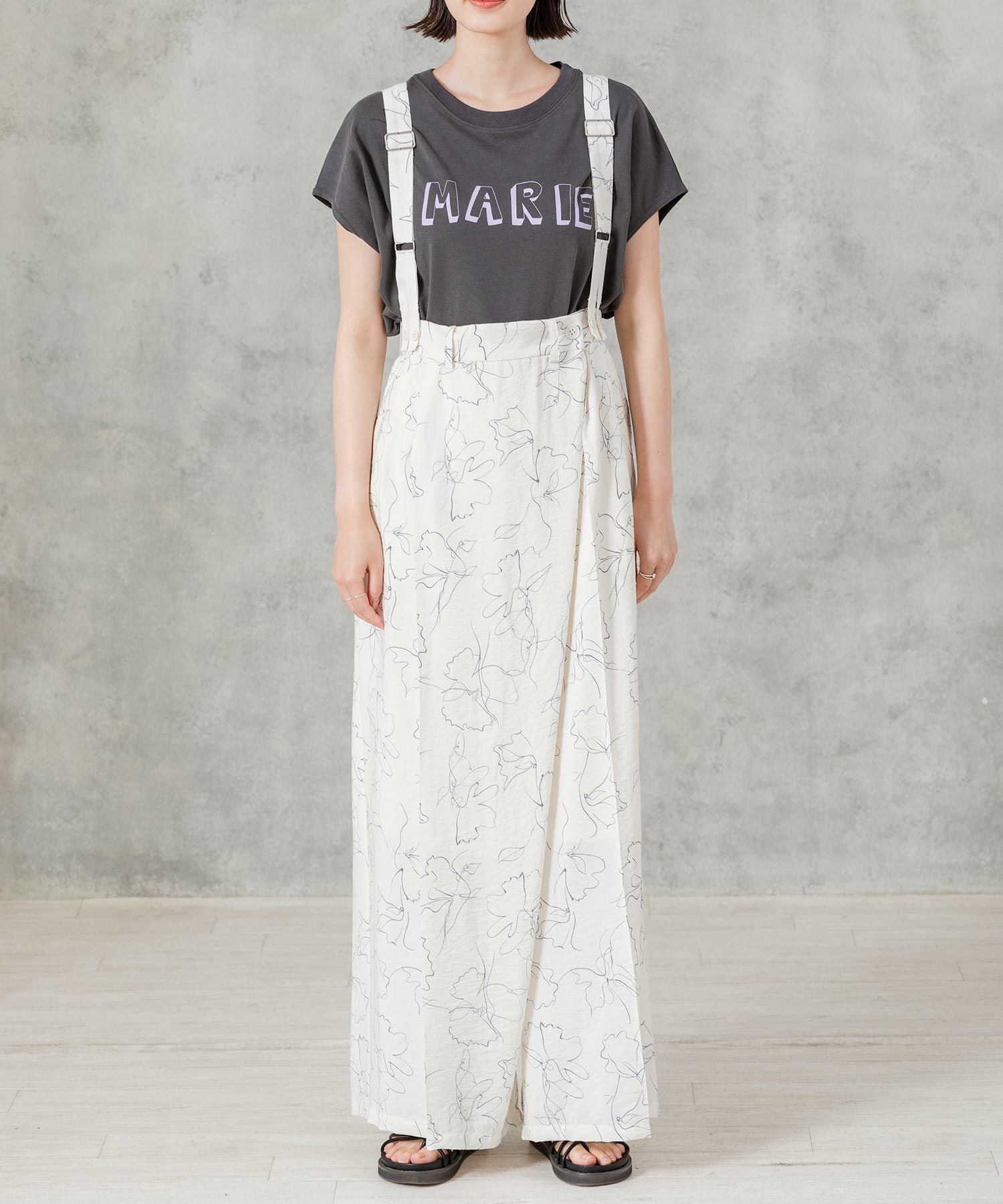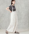 【AudreyandJohnWad(オードリーアンドジョンワッド】から、ラップデザインがトレンドライクなワイドパンツをセレクト。繊細な線画タッチの花柄プリントが大人フェミニンムードを高めます。