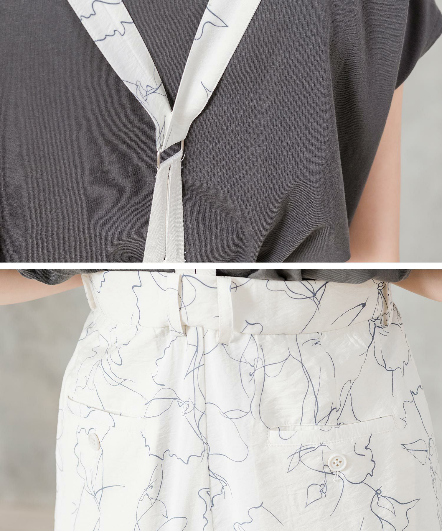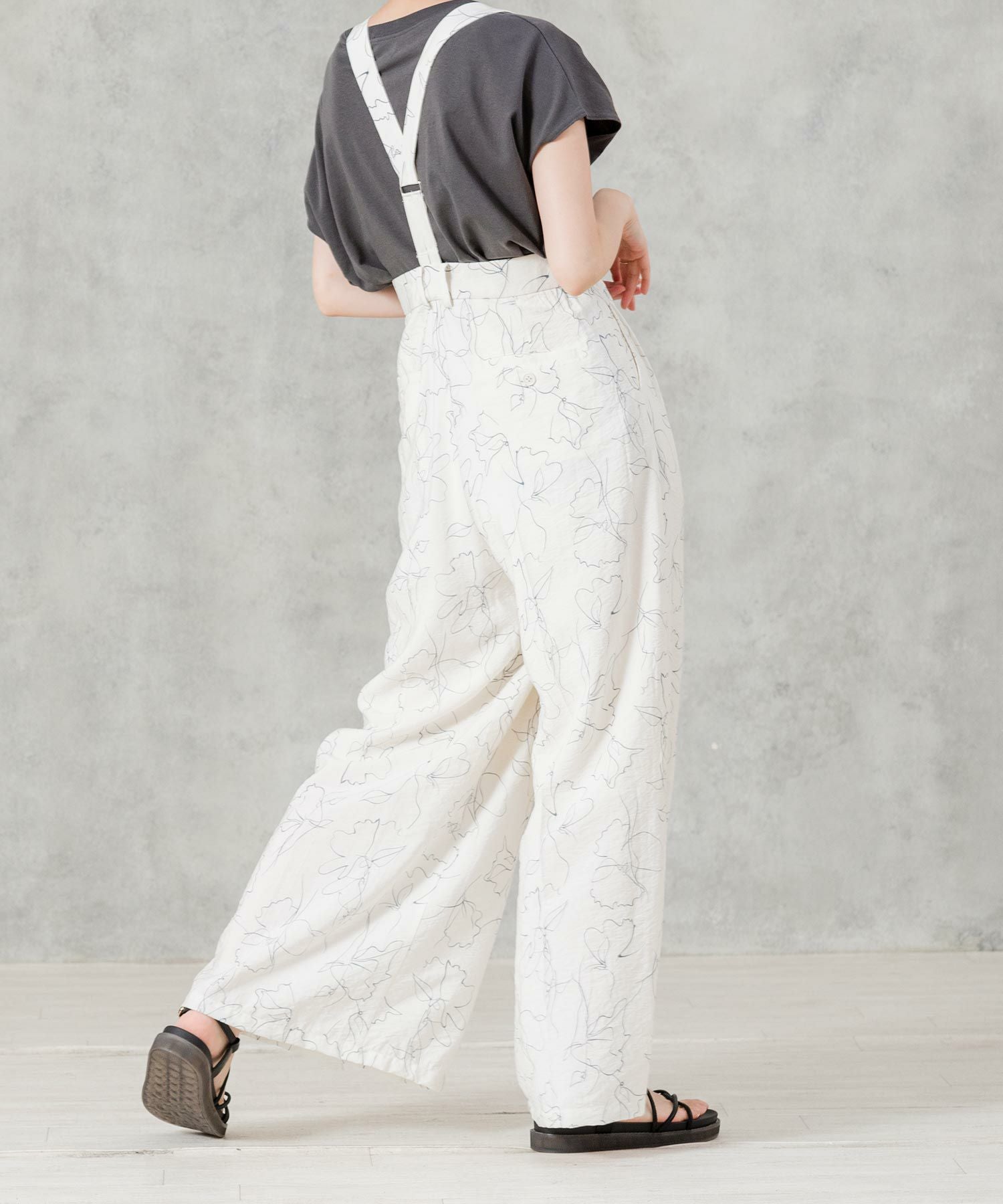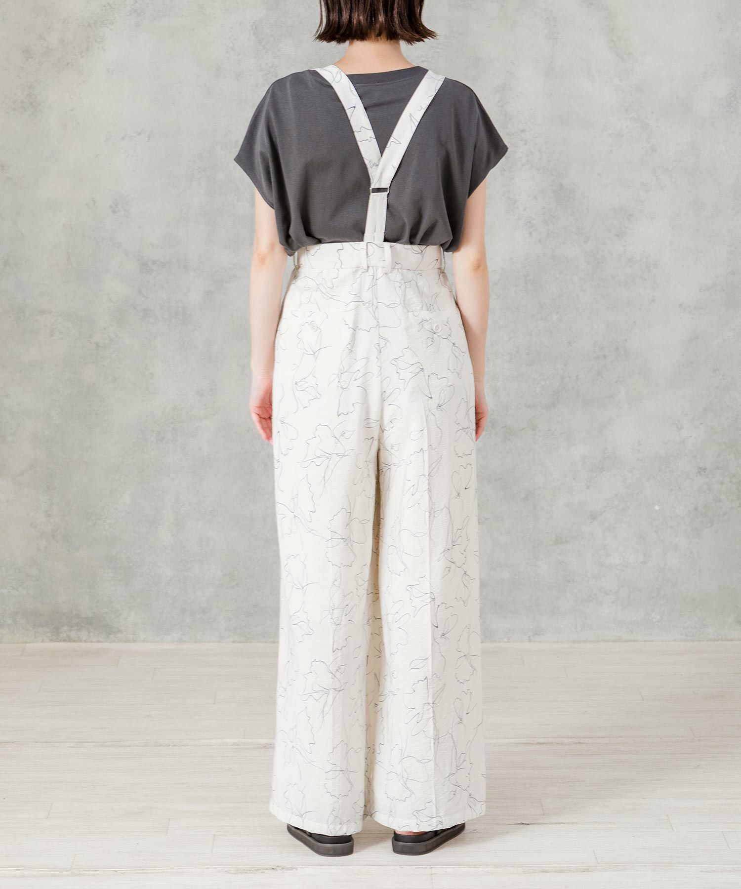 コーデの雰囲気を格上げするY字サスペンダーは、部分的にヘリンボンテープを使用し軽い印象に◎取り外すとワイドパンツとして使えます。