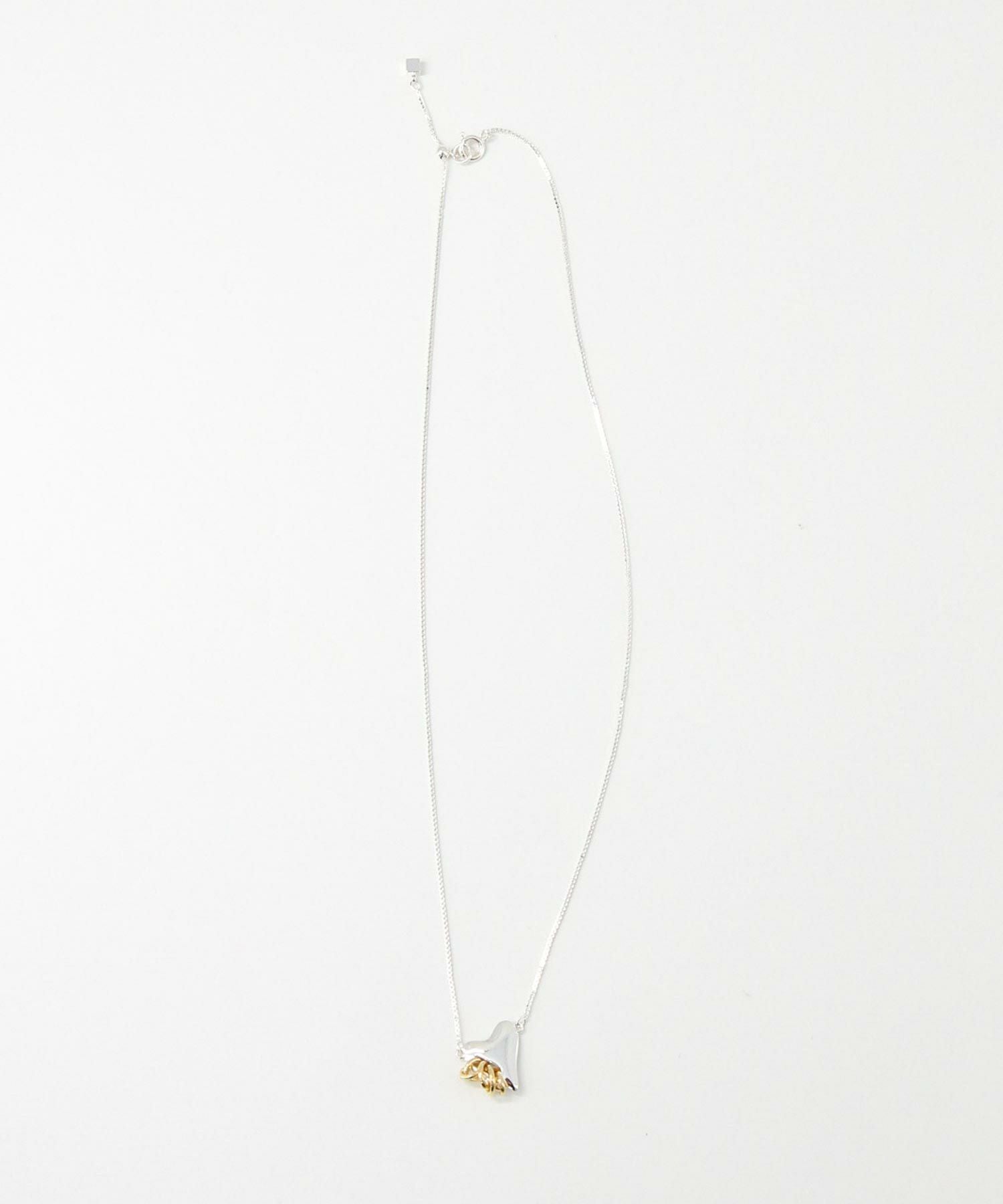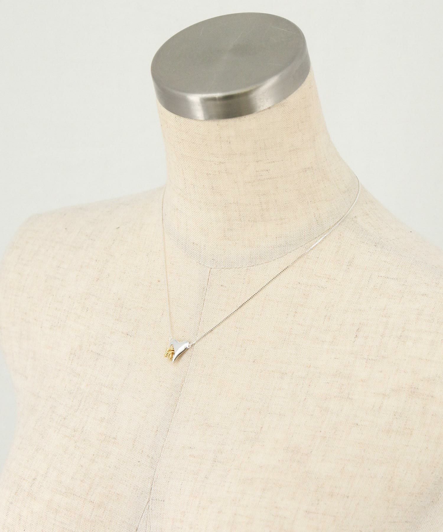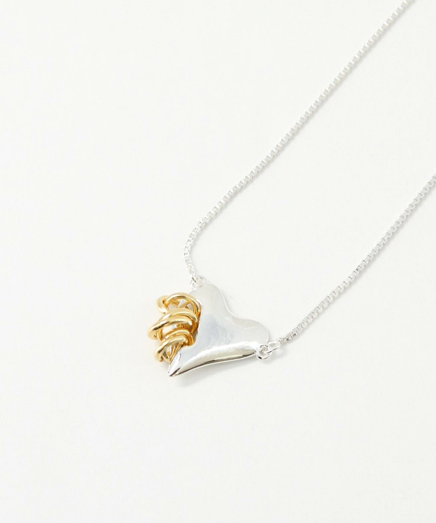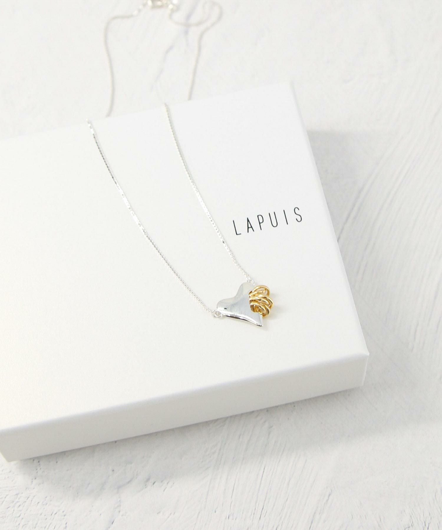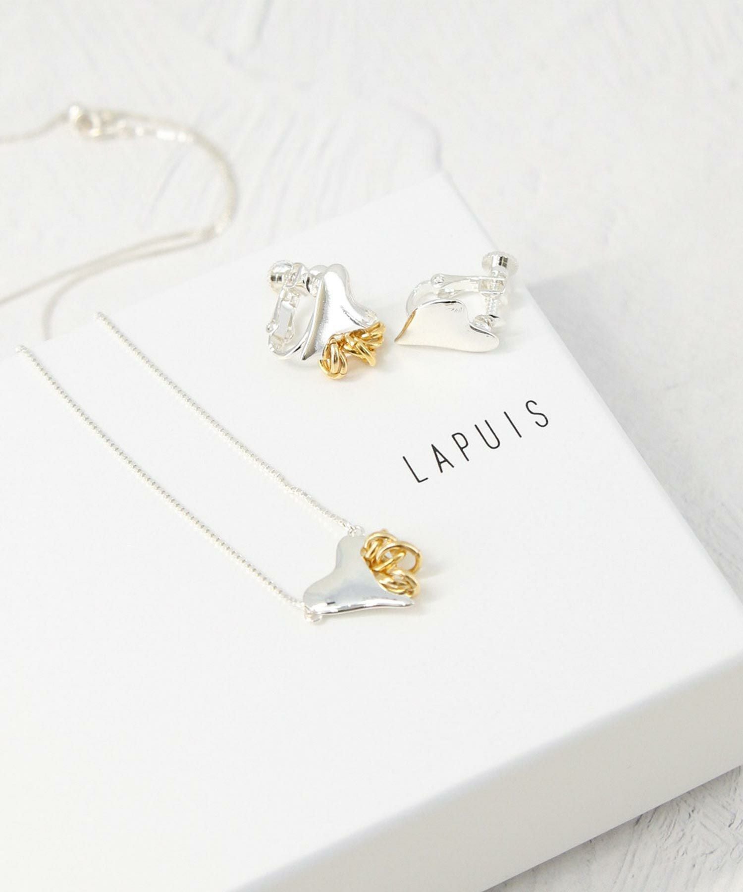 "【LAPUIS(ラピュイ】の、CoilHeartイヤリングと同じコンパクトサイズのハートパーツがついたネックレス。