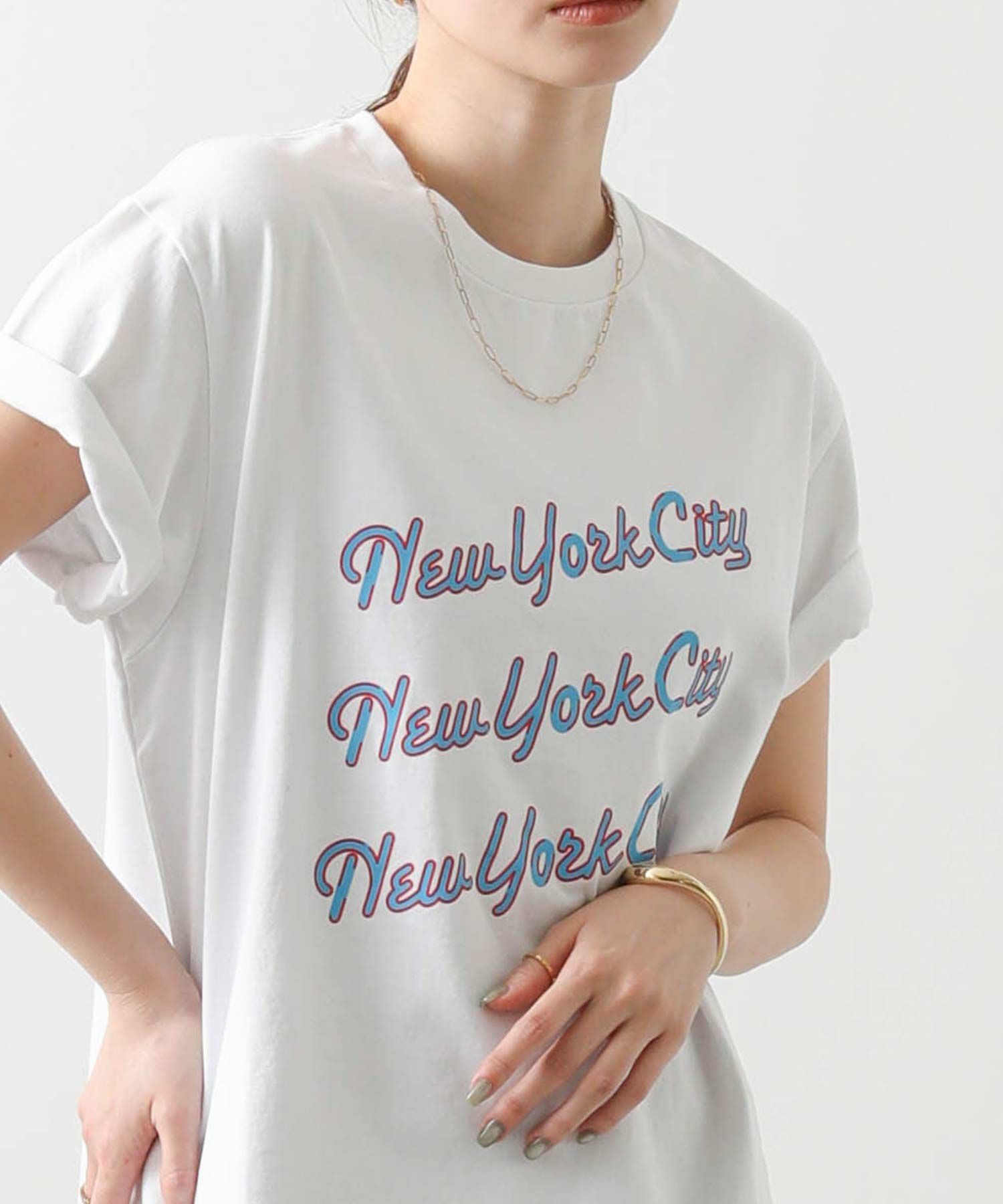 ネオンのようなロゴデザインが、キャッチーな印象のロゴTシャツ。