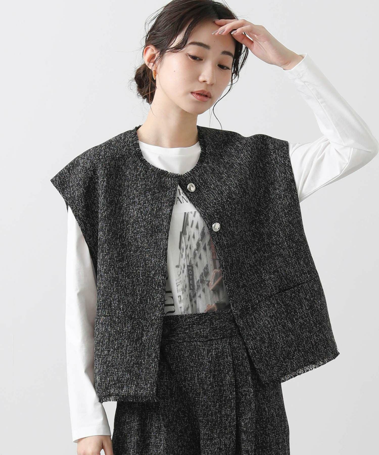 【CHIGNON(シニヨン)】から、普段使いからセレモニーまで活躍するツイードジレをセレクト。