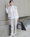 すっきりとしたショート丈で、ハイウエストのボトムスとスタイルアップ効果も。衿ぐりと裾に施したフリンジや釦がアクセントになり、普段使いにもセレモニーにもおすすめのアイテムです。こちらの商品は、同素材のパンツ(SE458406001)とセットアップとしてもお楽しみいただけます。
