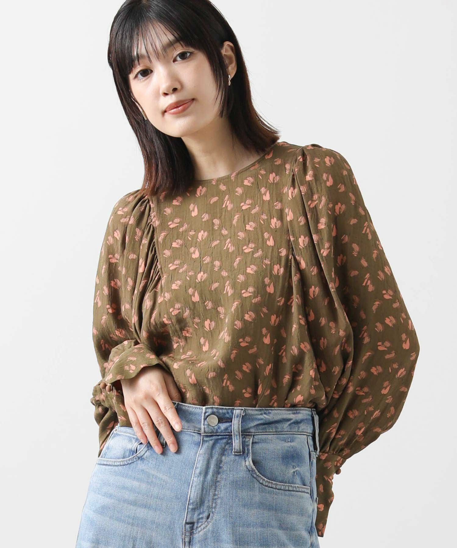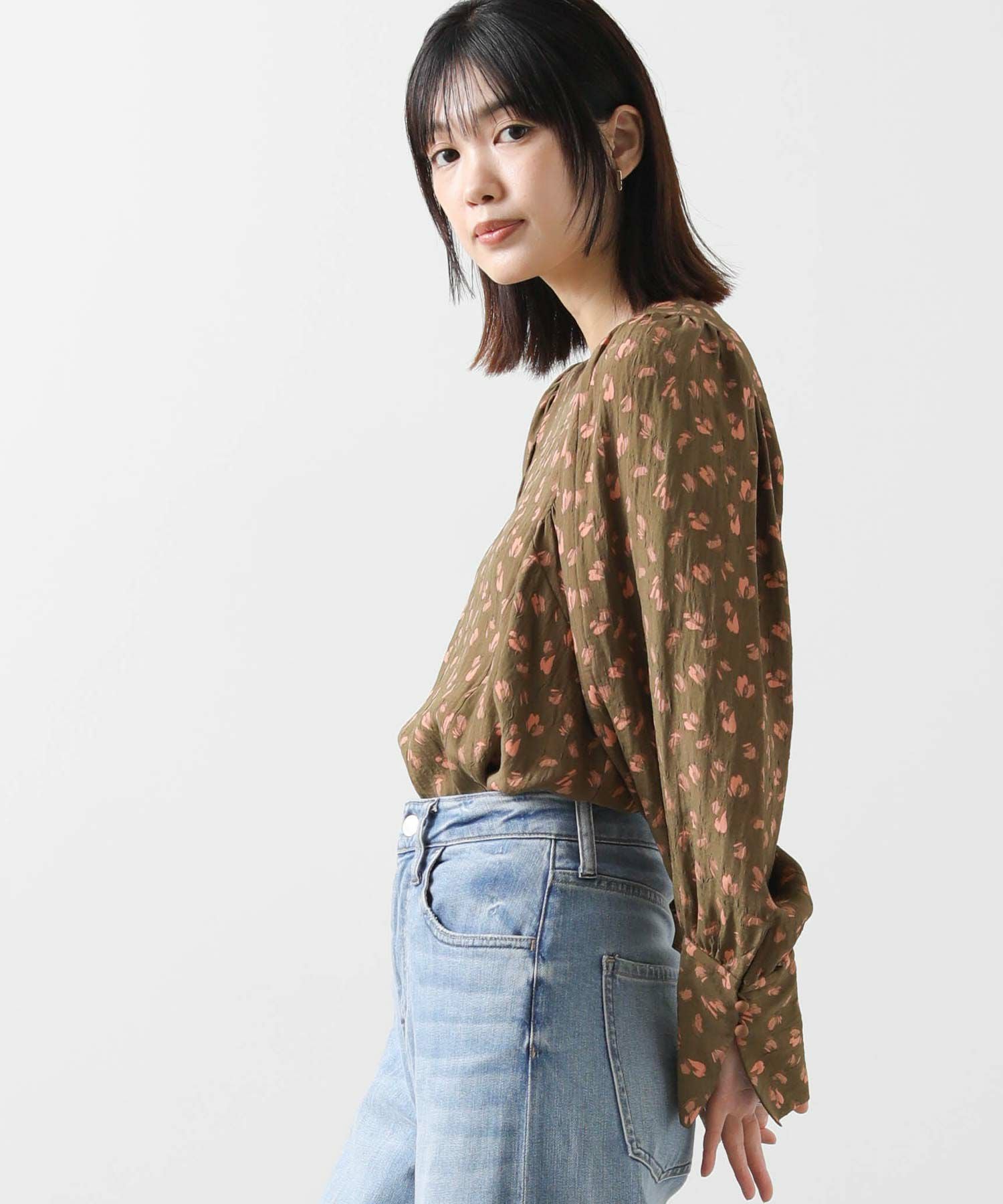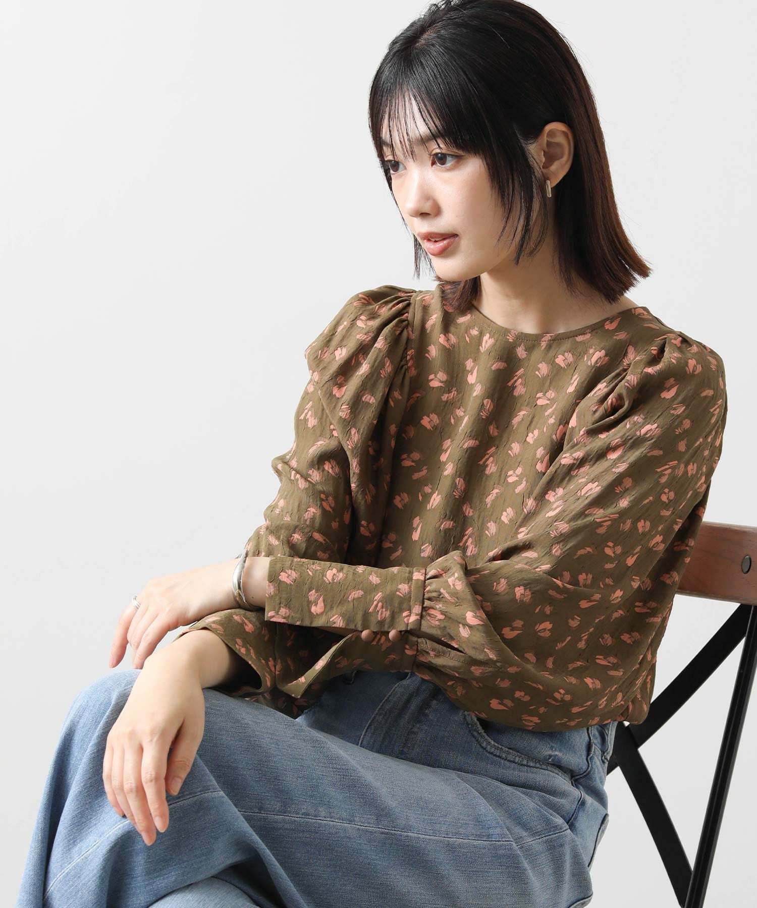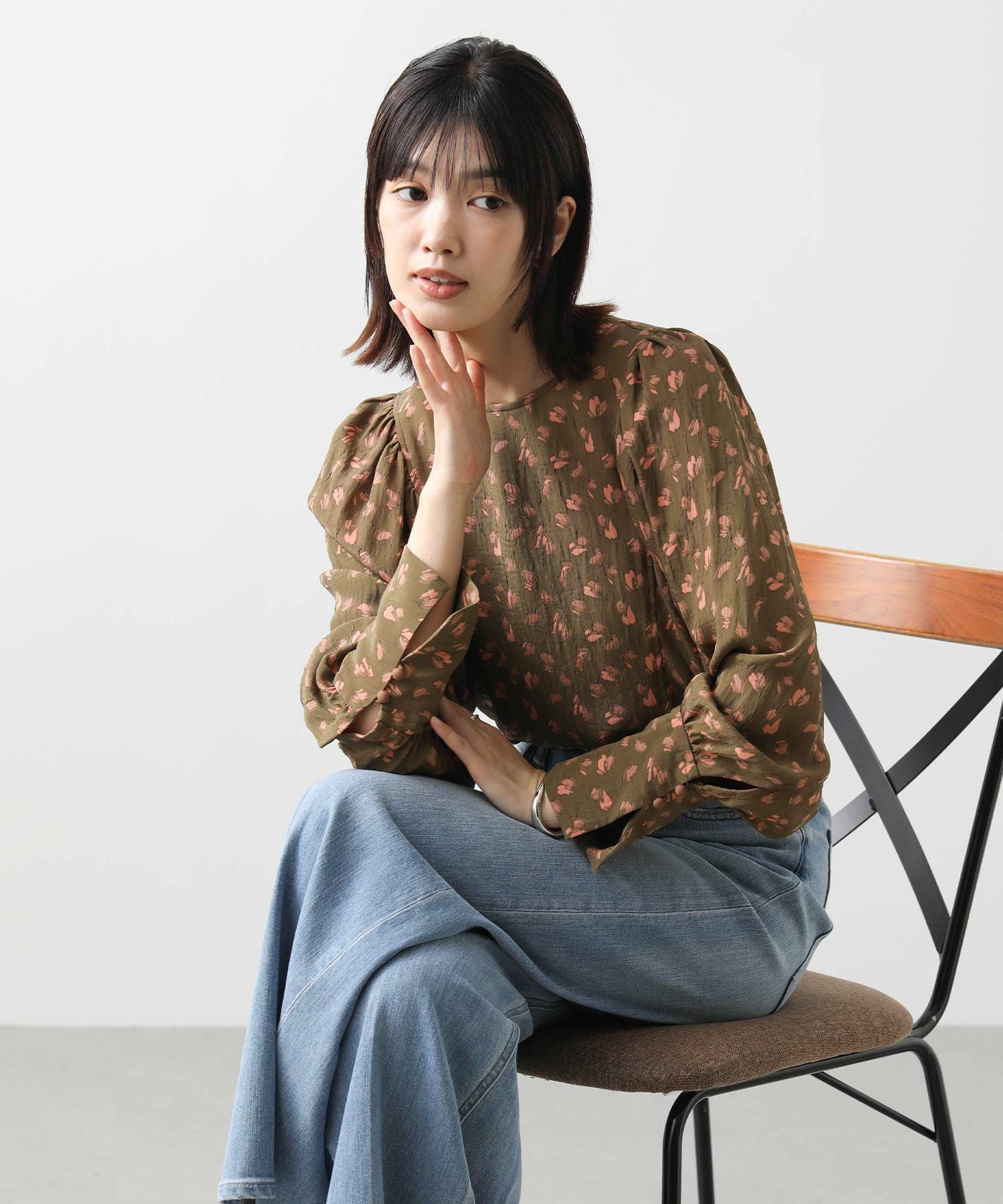 高級感のあるフラワージャガードのギャザーブラウスをセレクト。