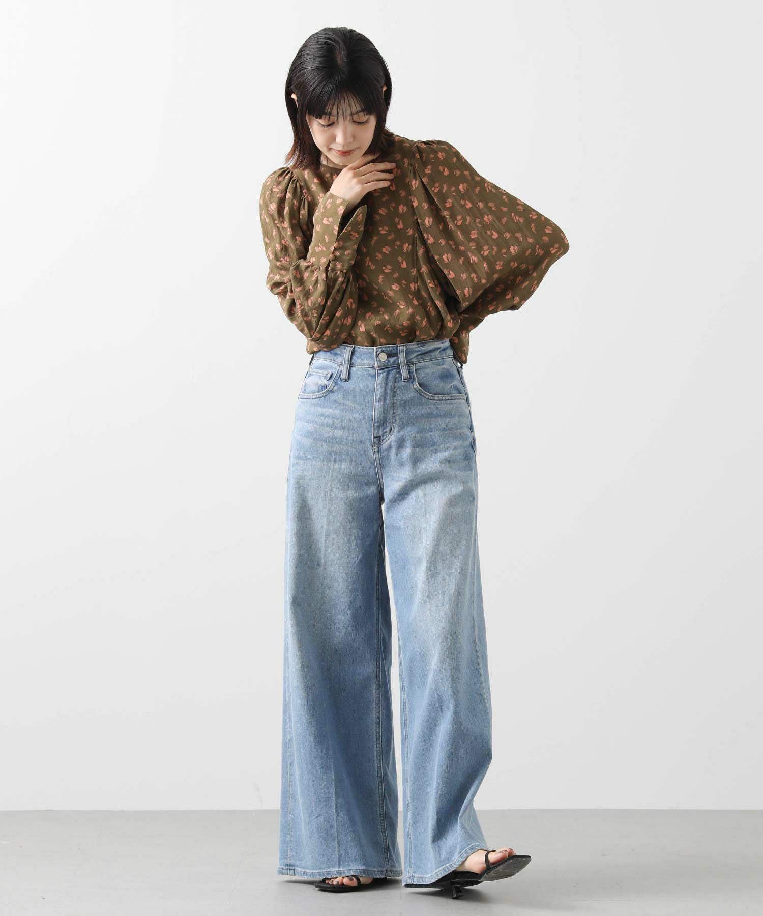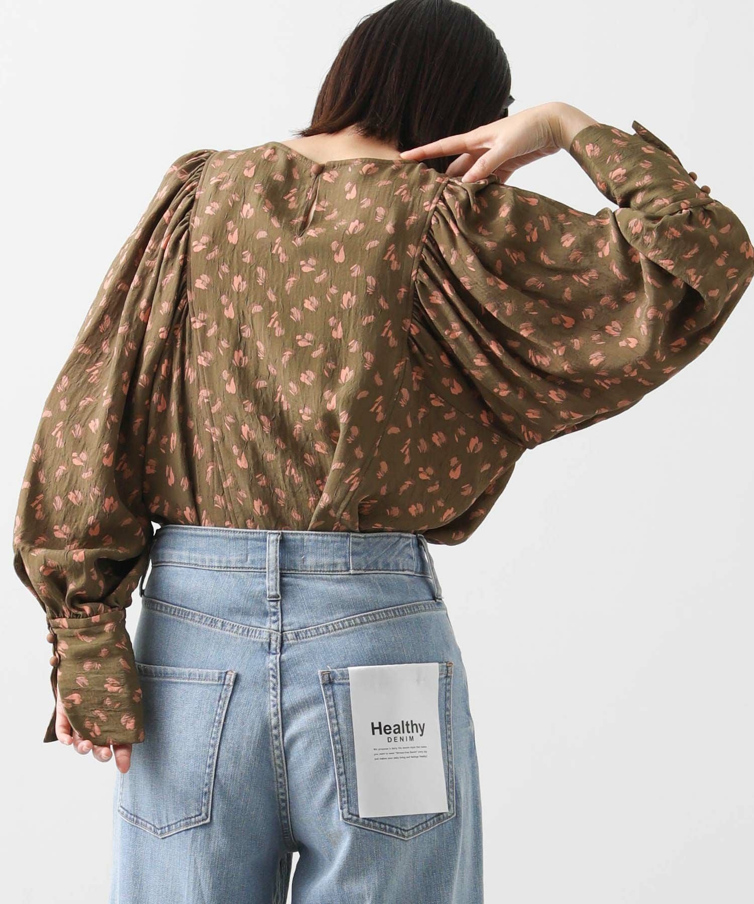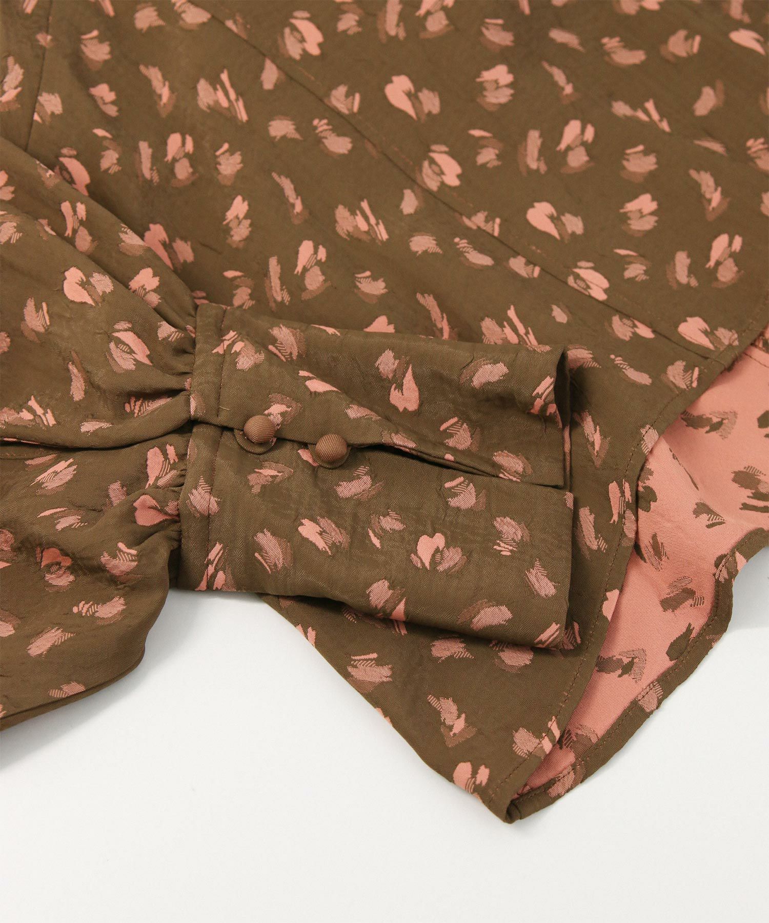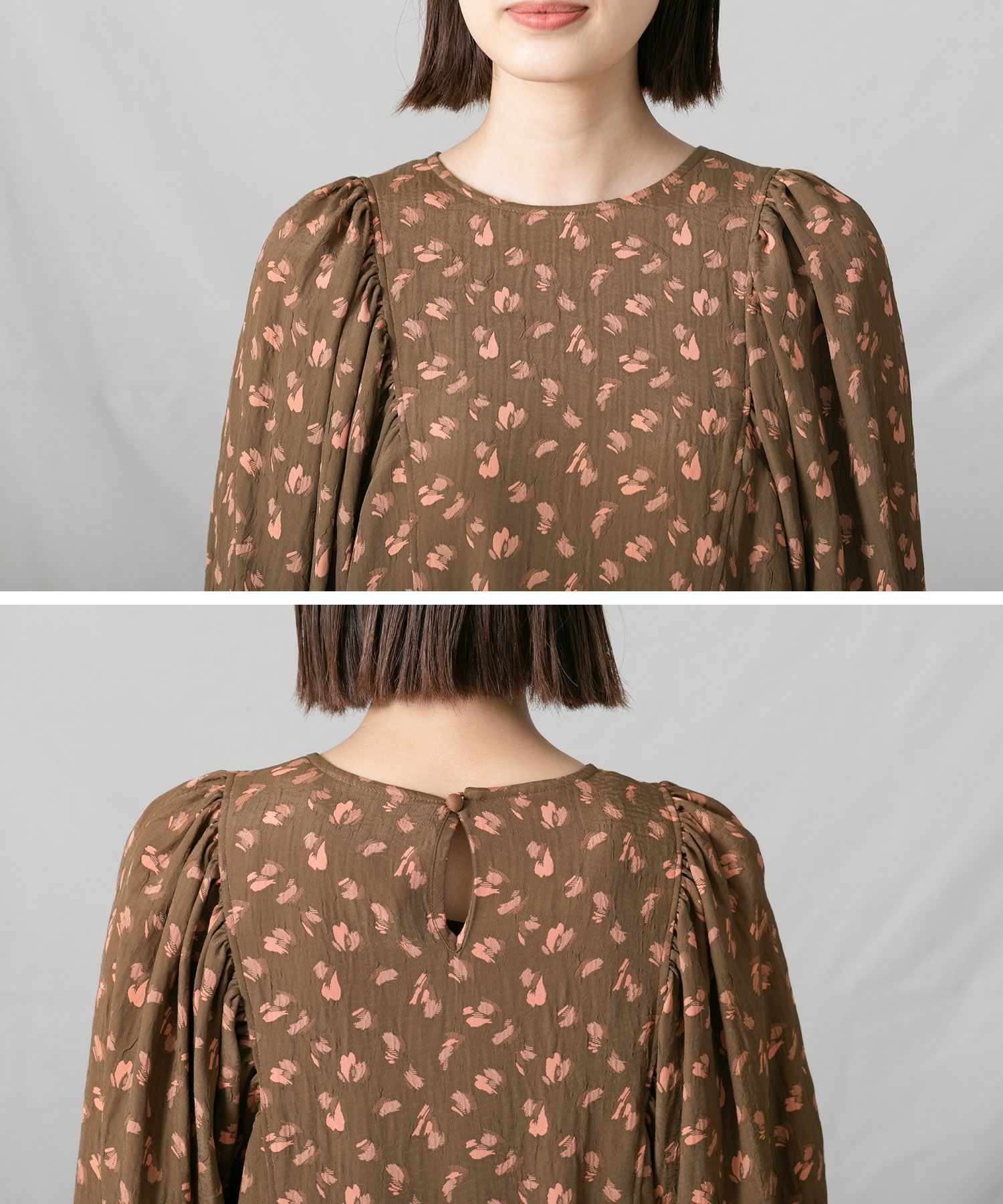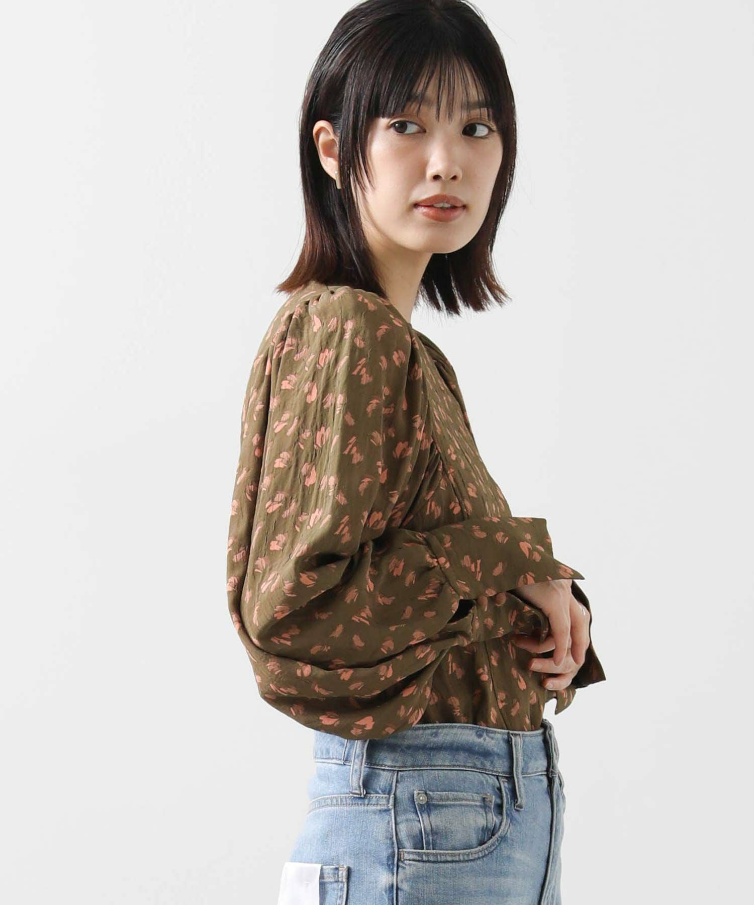 高級感のあるフラワージャガードのギャザーブラウスをセレクト。