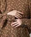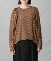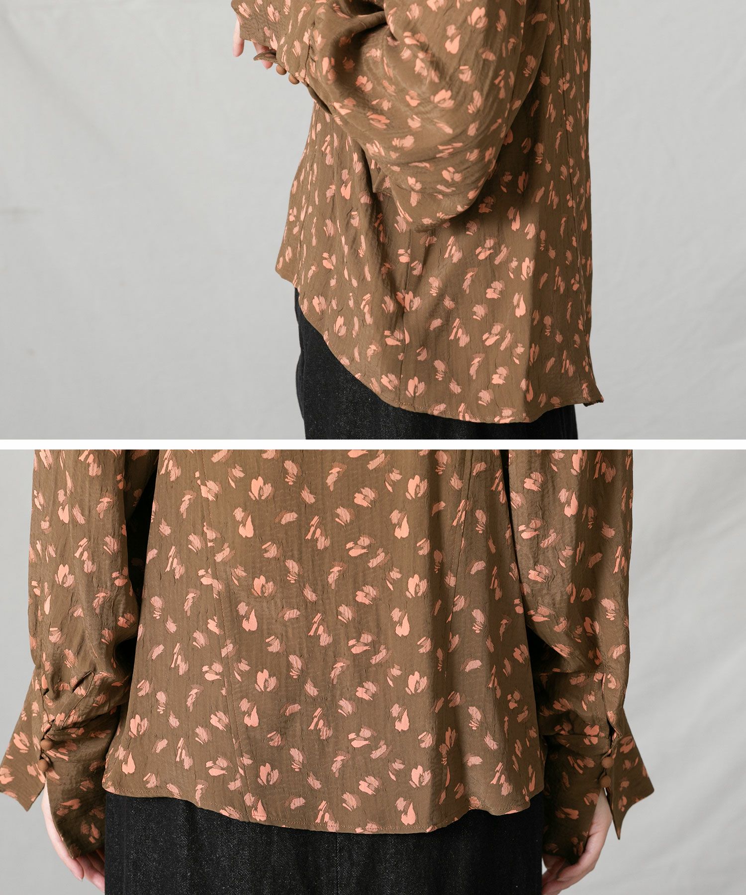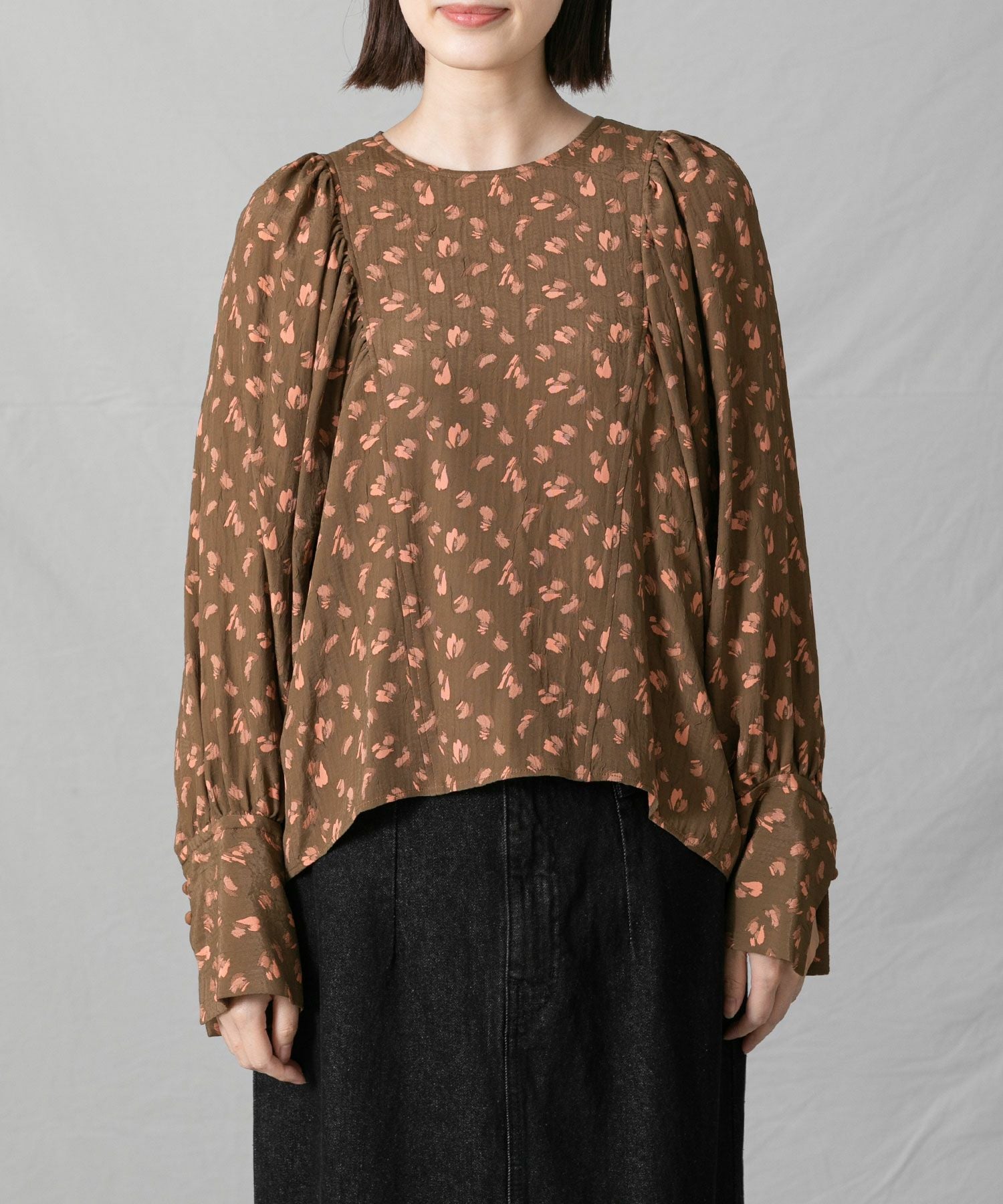 ギャザーを贅沢に入れたボリュームスリーブに長めのすっきりカフスでメリハリをプラス。ころんとしたくるみ釦が上品な印象に。