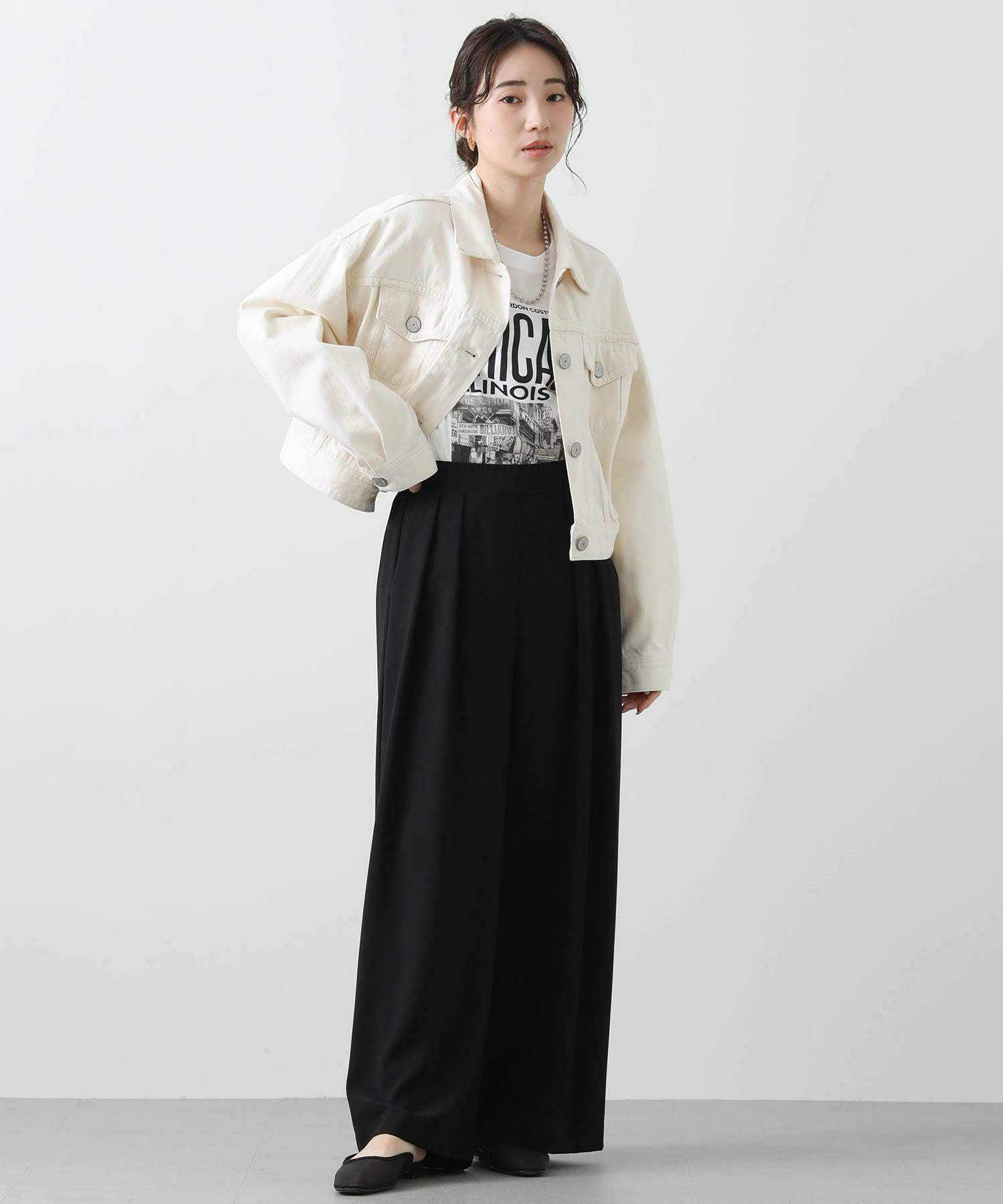 ドロップショルダーが抜け感を演出し、短めの丈が脚長効果をもたらす1枚です。