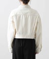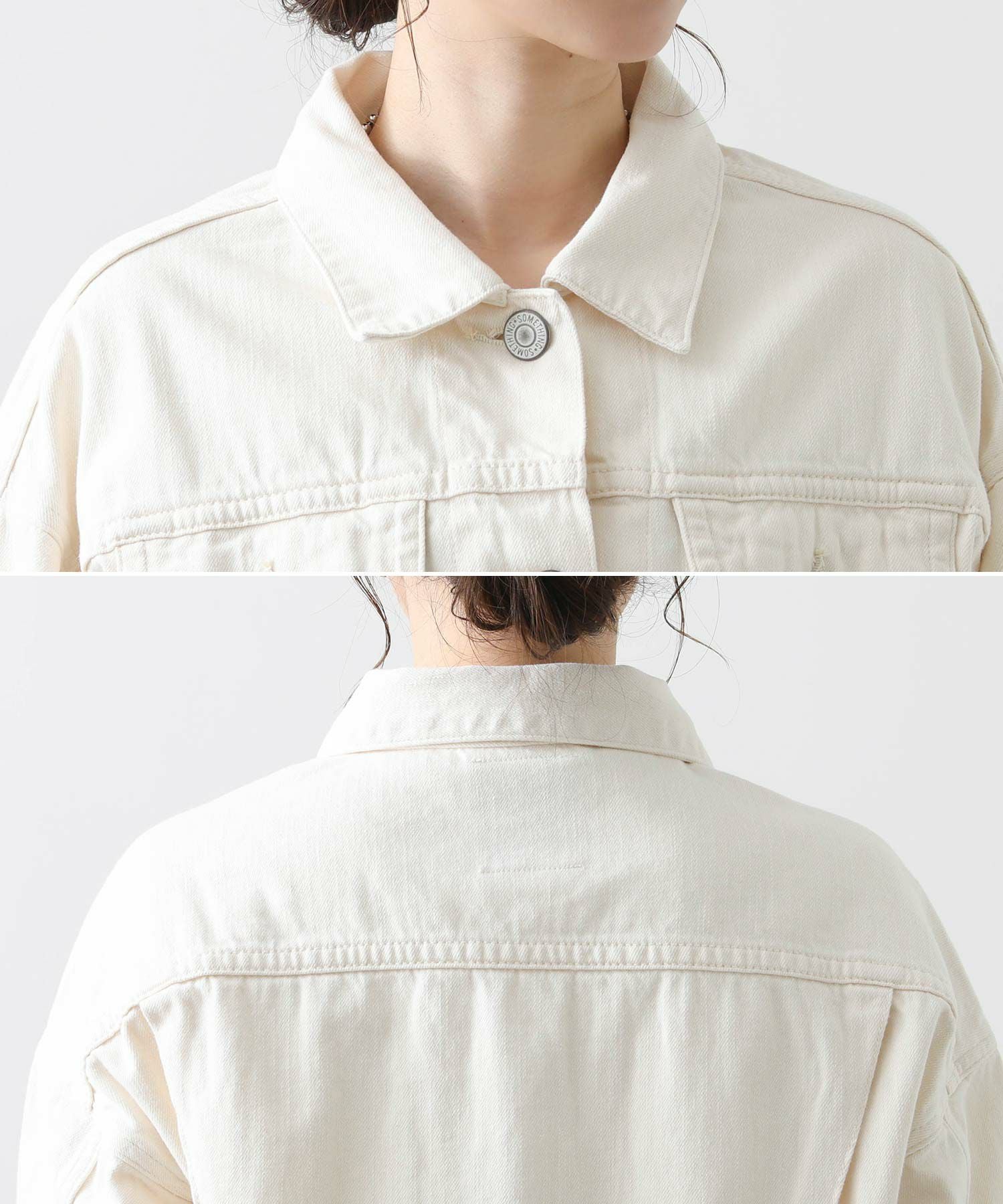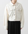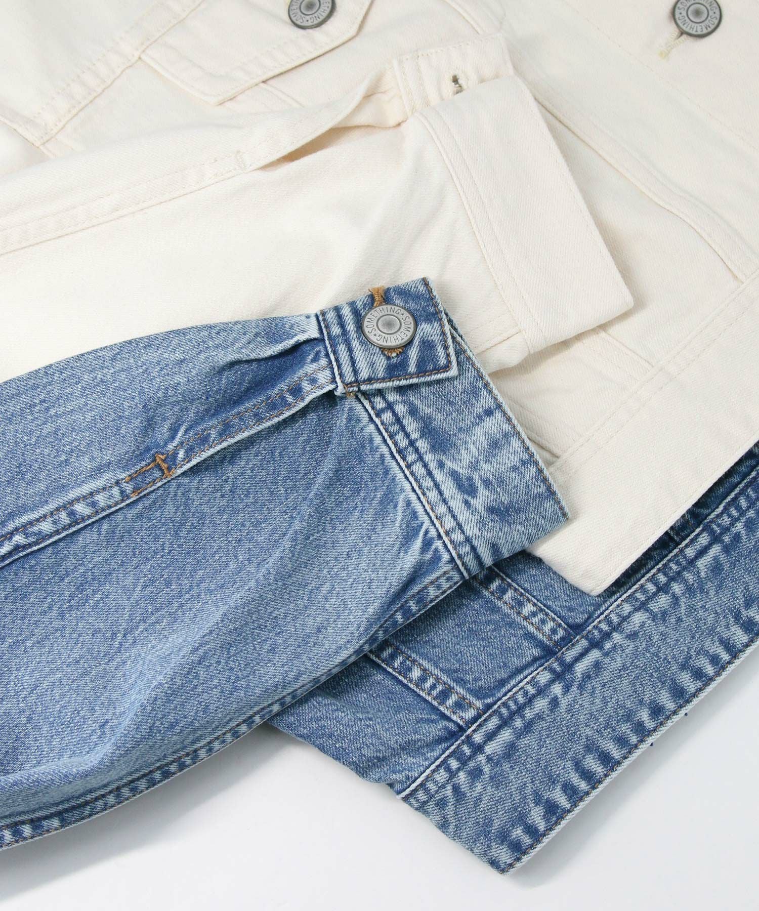 加工映えする綿100%デニムを使用。長時間着用してもストレスのない着心地にこだわった素材です。大きめボタンと、太めのゲージ幅が特徴のショート丈のデニムジャケット。