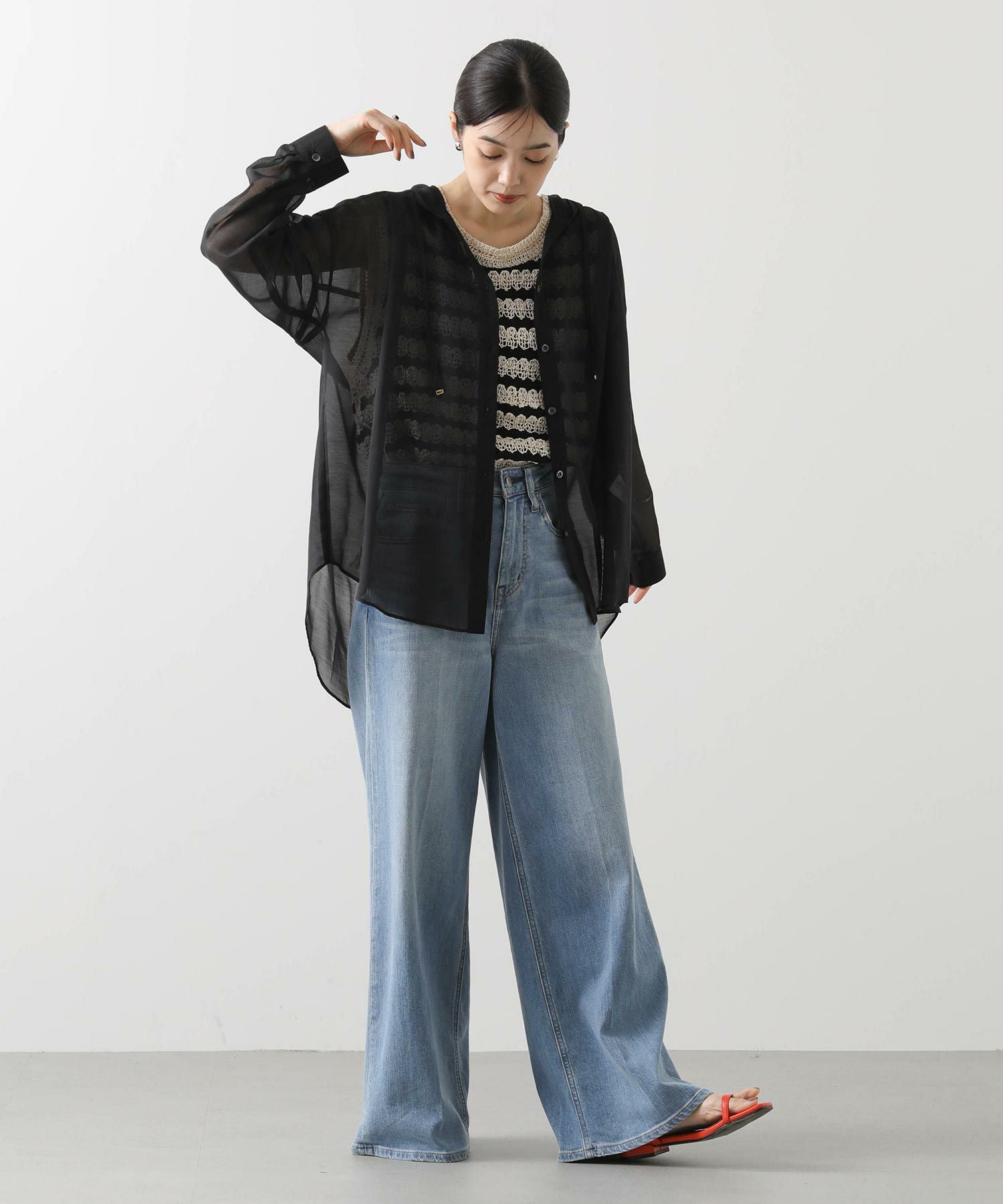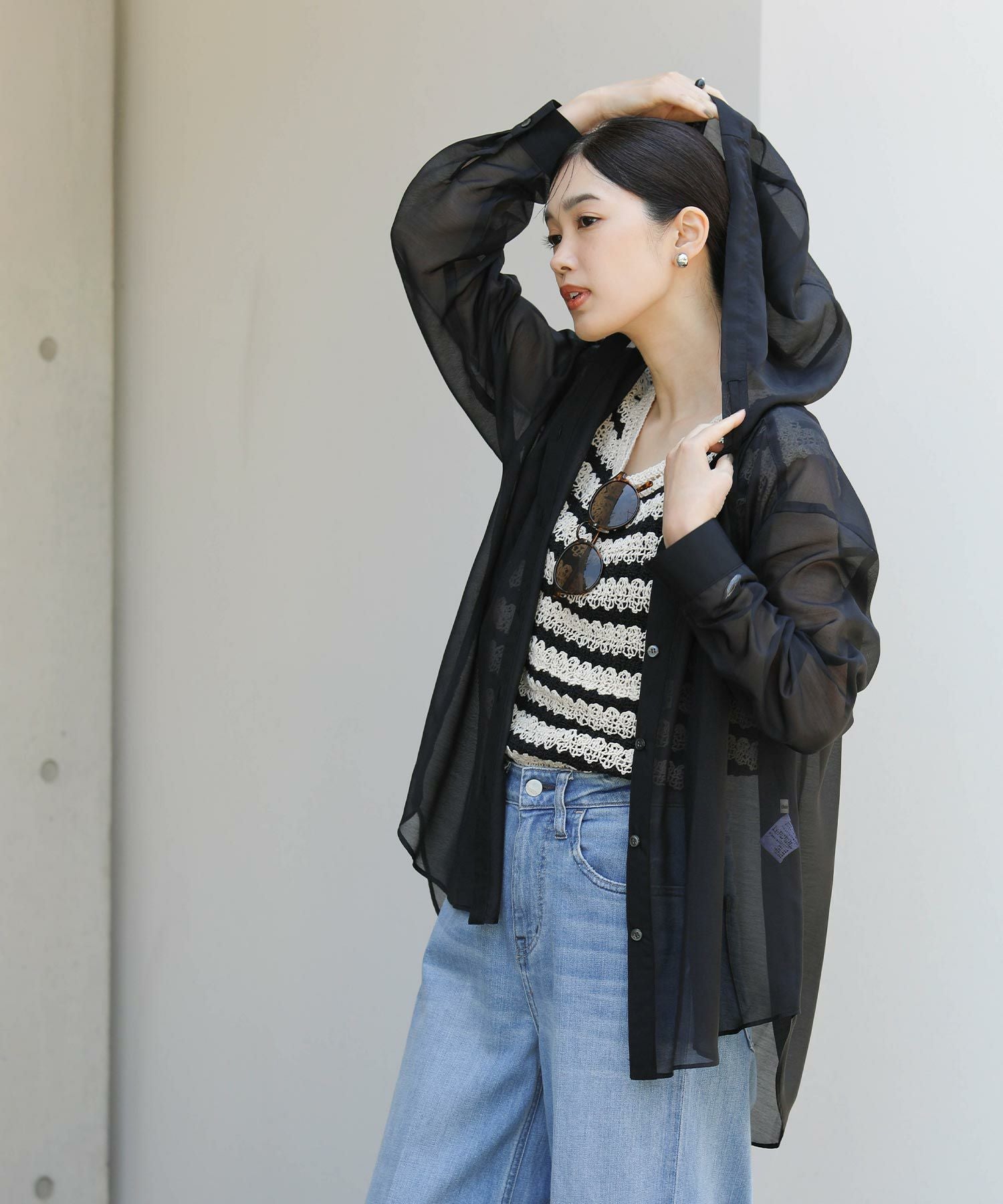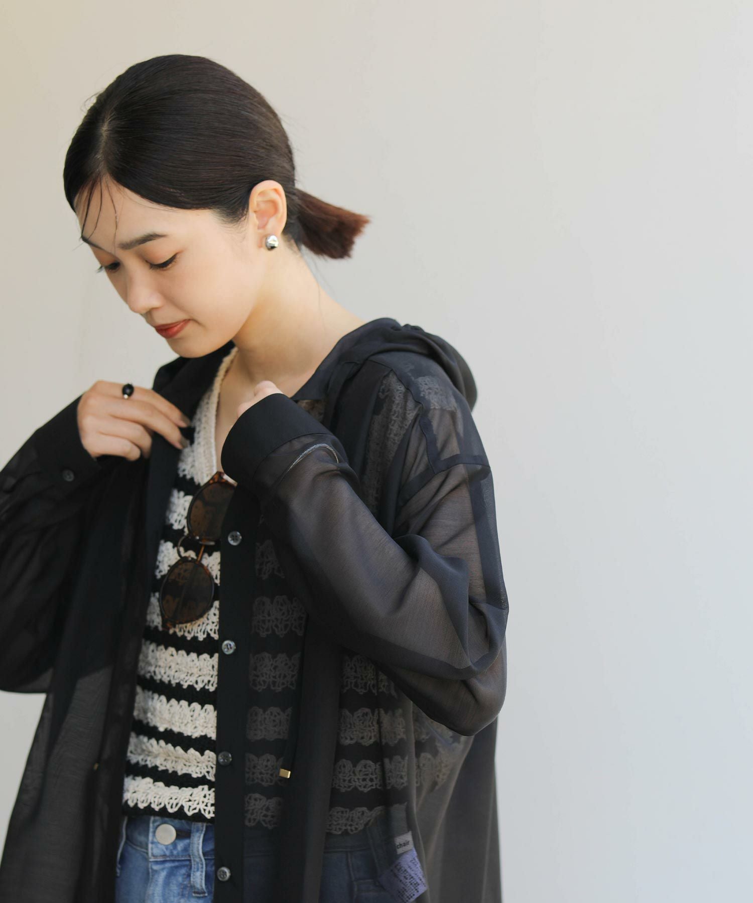 ※着用画像は撮影状況、光の当たり具合で色みが違って見える場合がございます。実際の色みについては、画像一覧の最後に掲載している詳細画像をご参照ください。